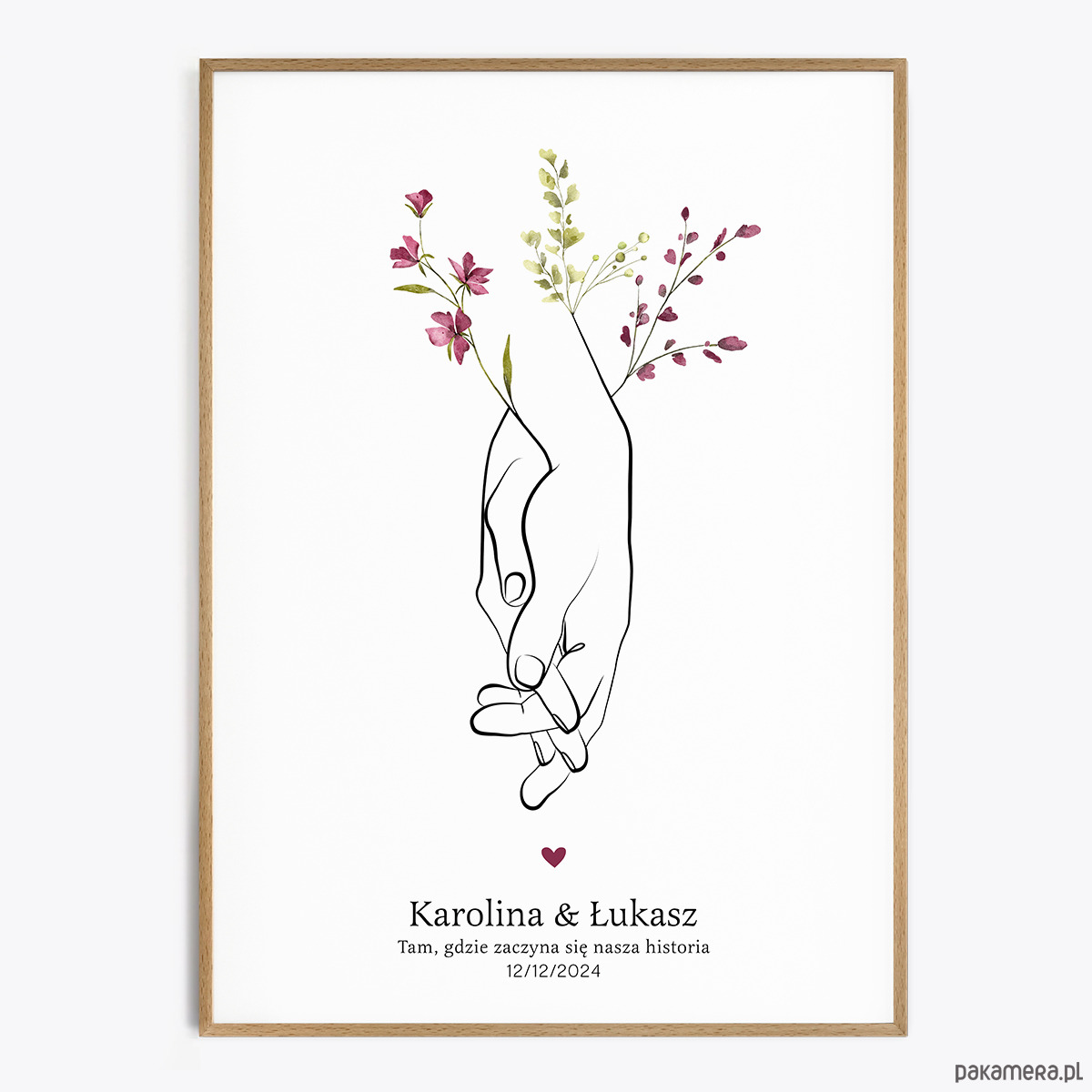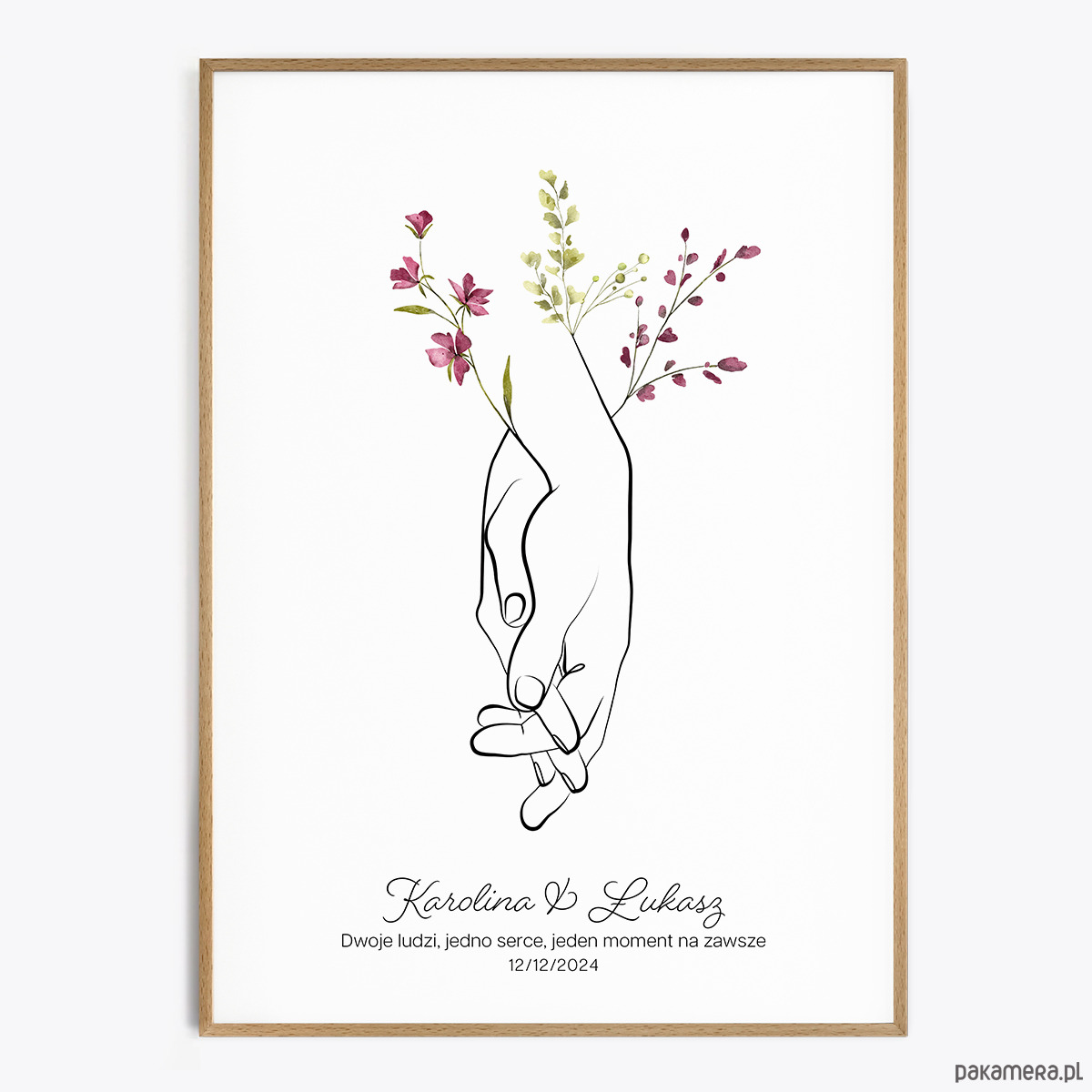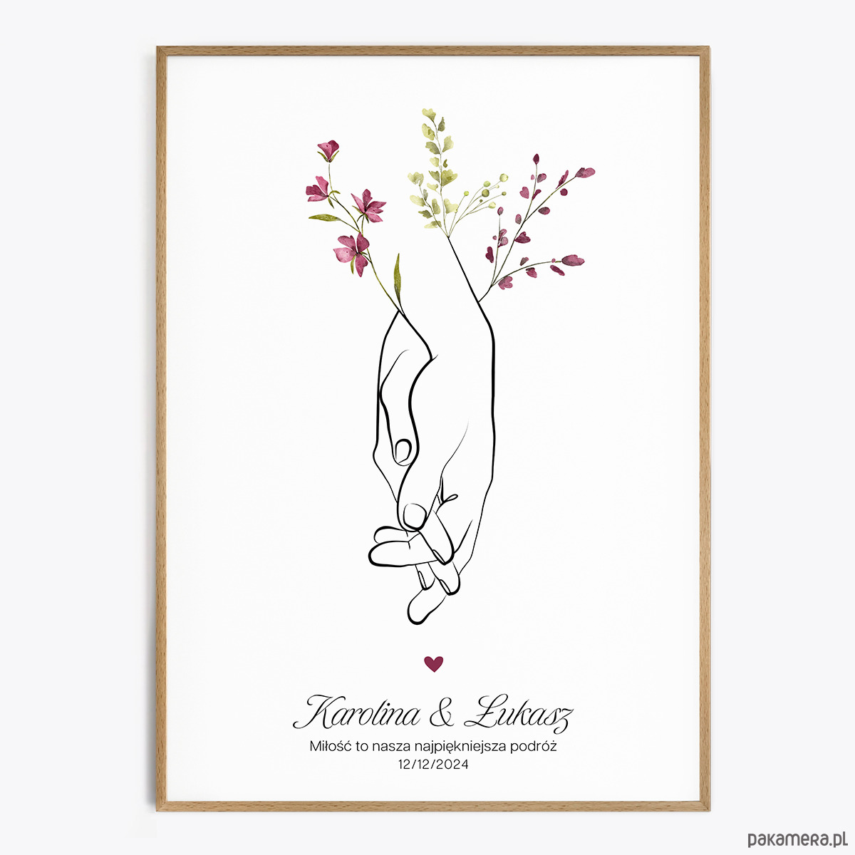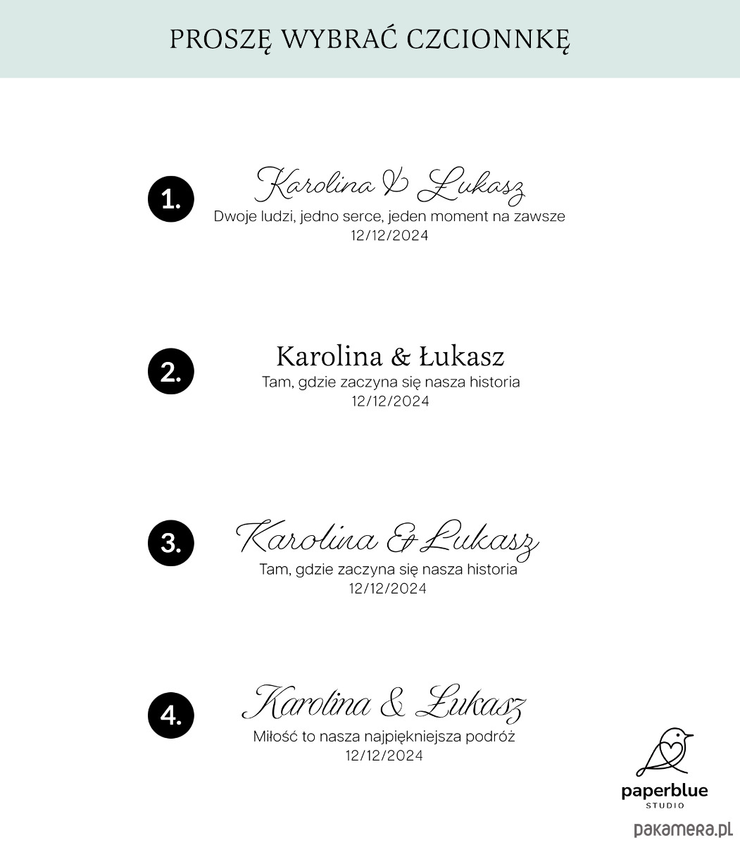 - Personalizacja imion, daty, nazwy miejsca lub cytatu (czcionki przedstawione są w galerii produktu). Proszę napisać, czy nad imionami dodać serduszko.