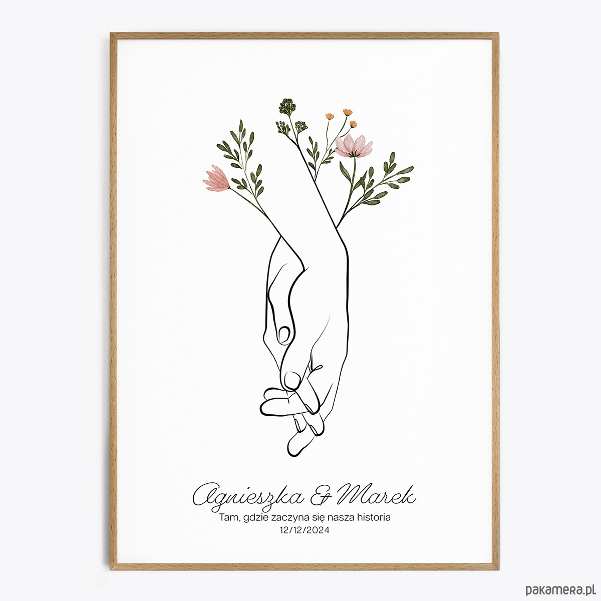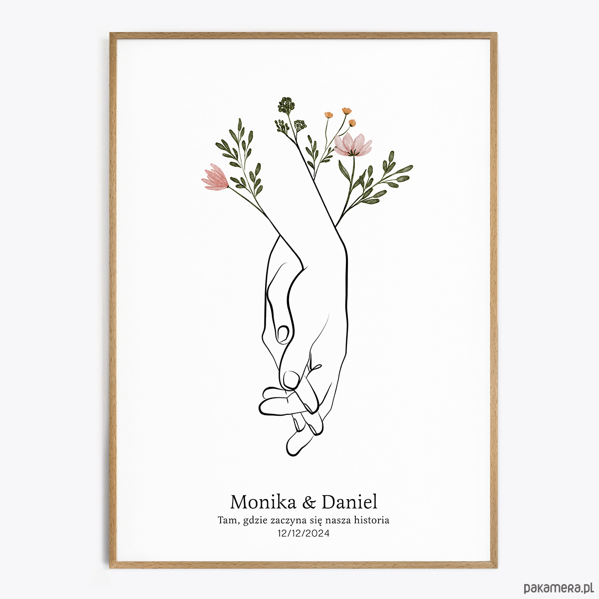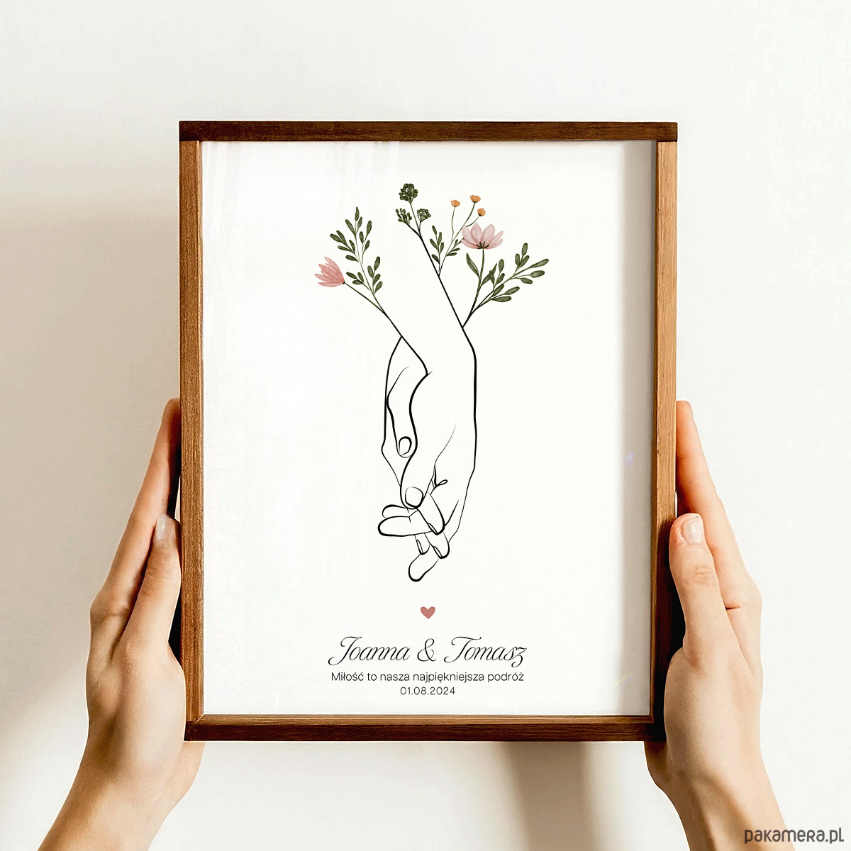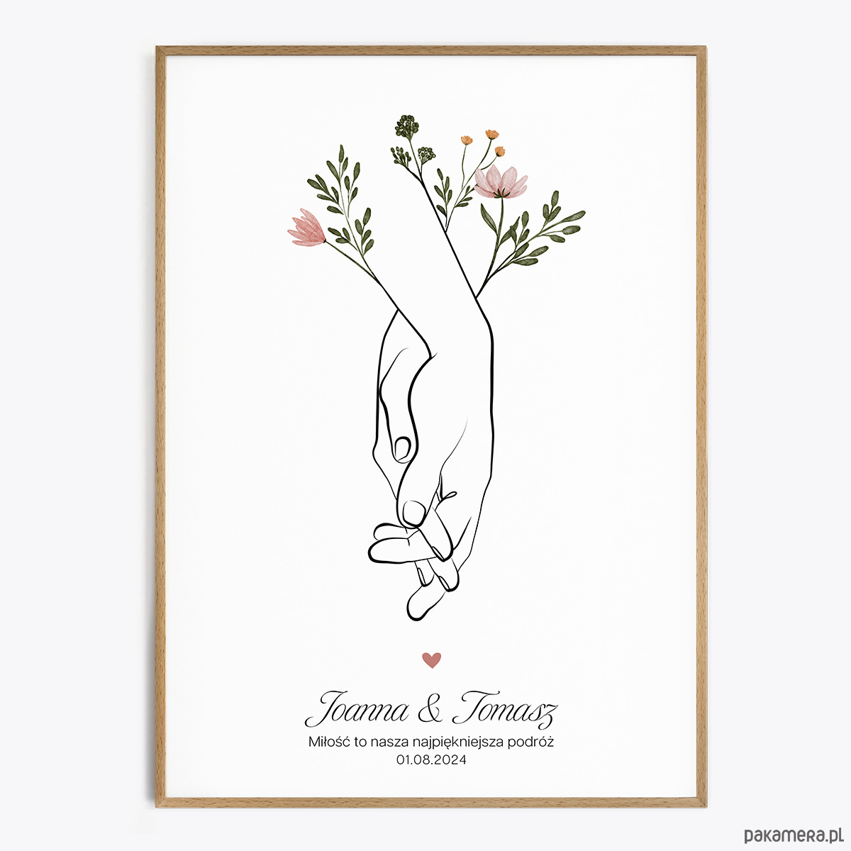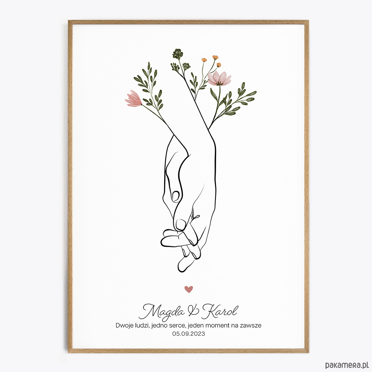 - Personalizacja imion, daty, nazwy miejsca lub cytatu (czcionki przedstawione są w galerii produktu). Proszę napisać, czy nad imionami dodać serduszko.