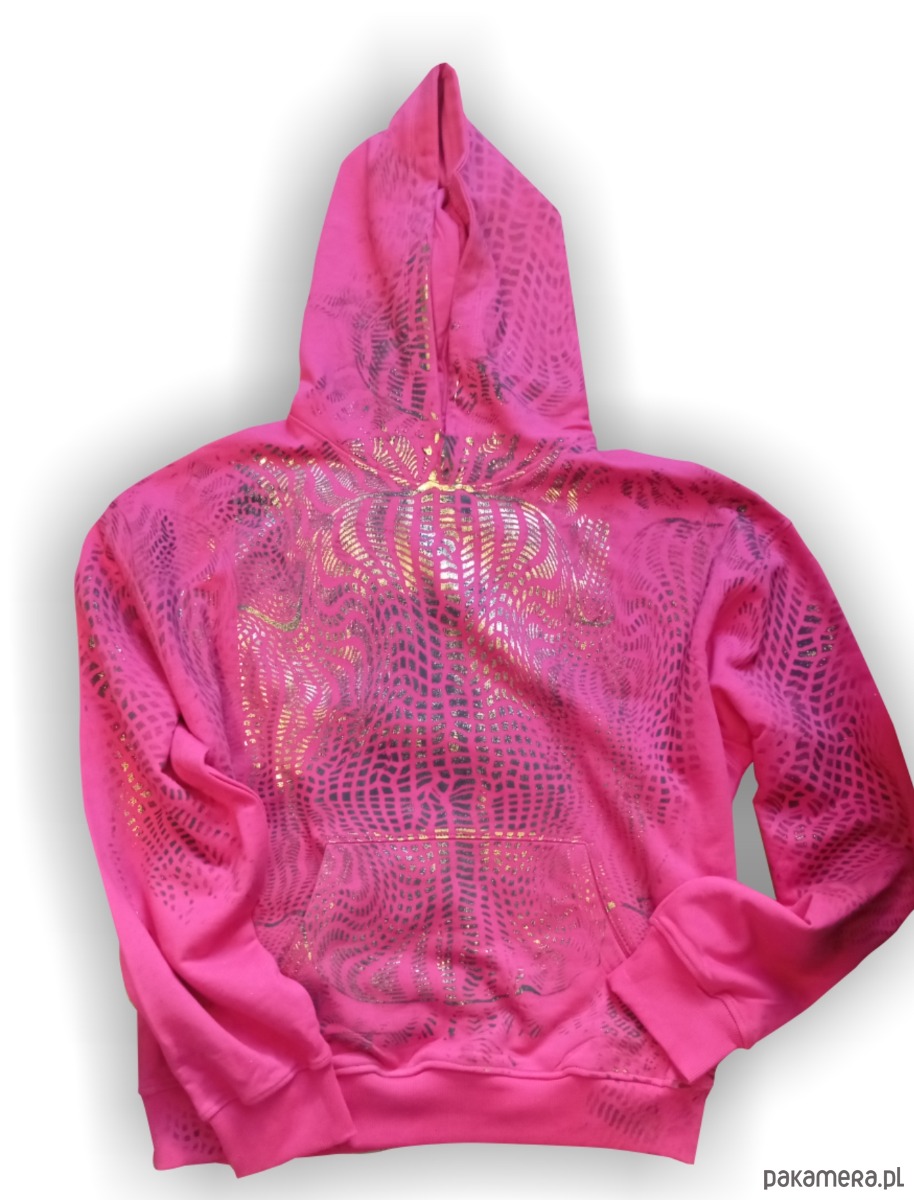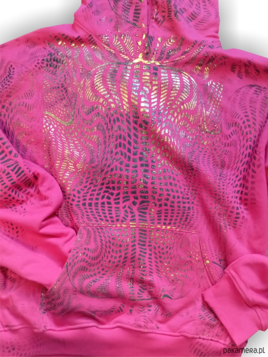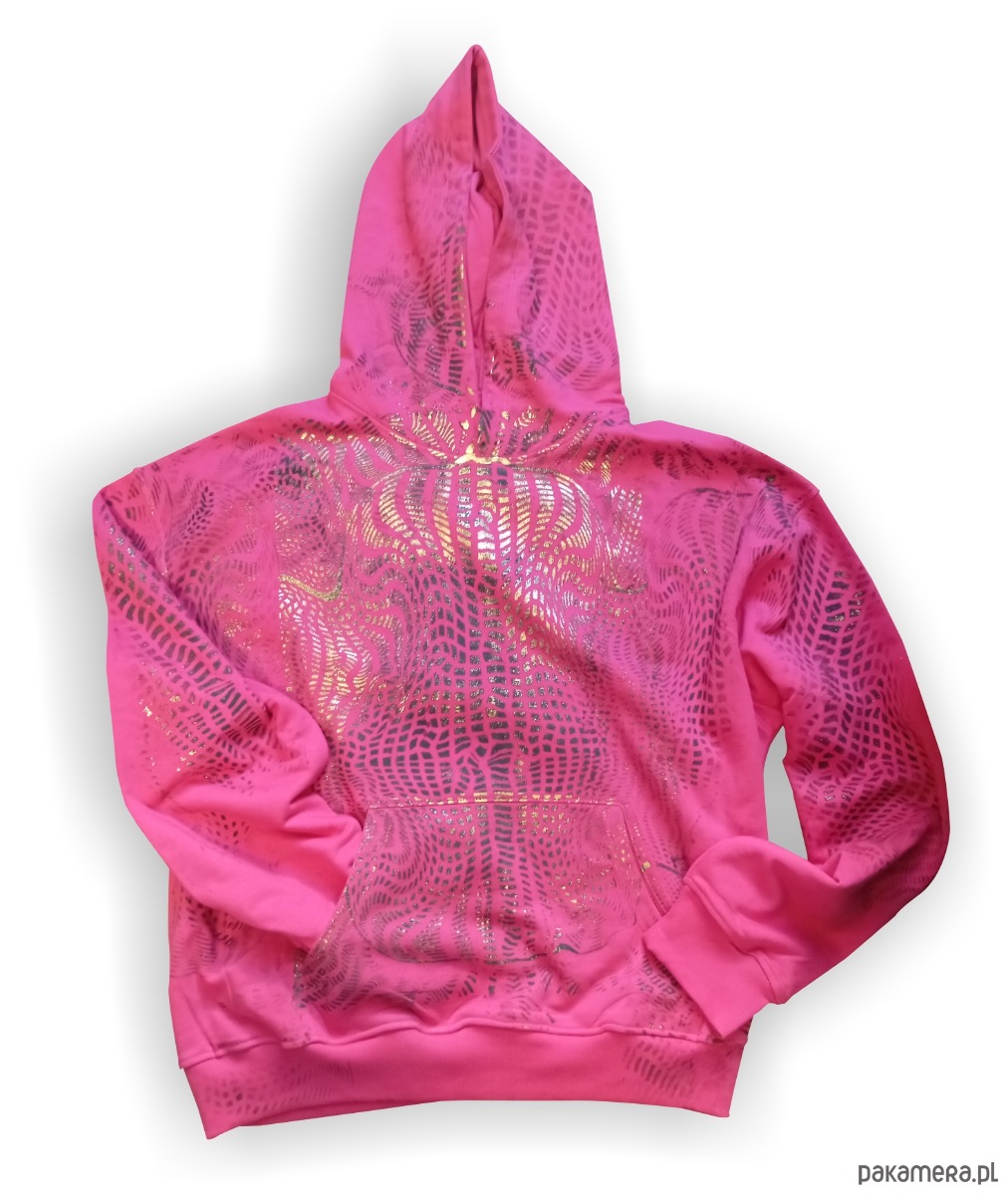 Wyjątkowa różowa bluza z kapturem, wykonana z grubej polskiej dresówki (gramatura ok. 420 g/m², pętelka).