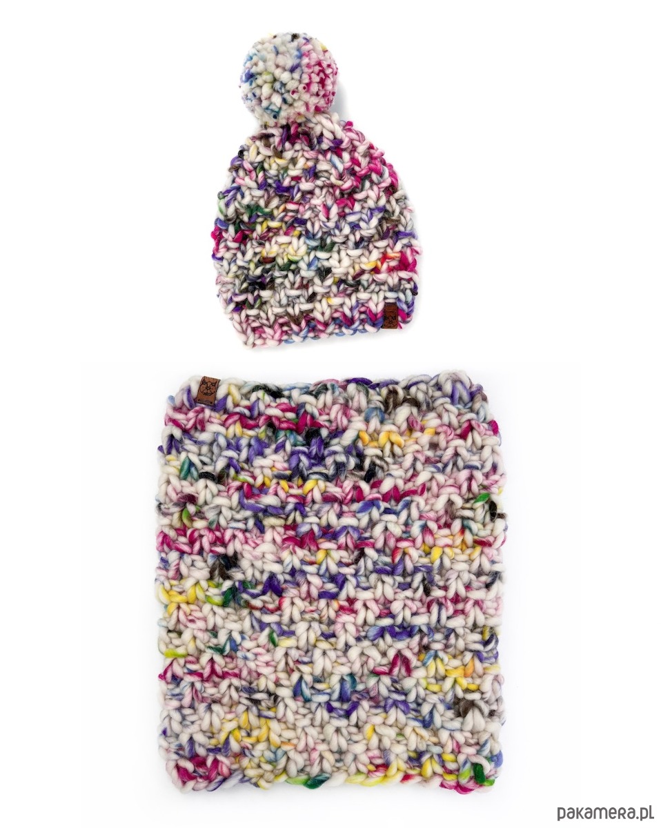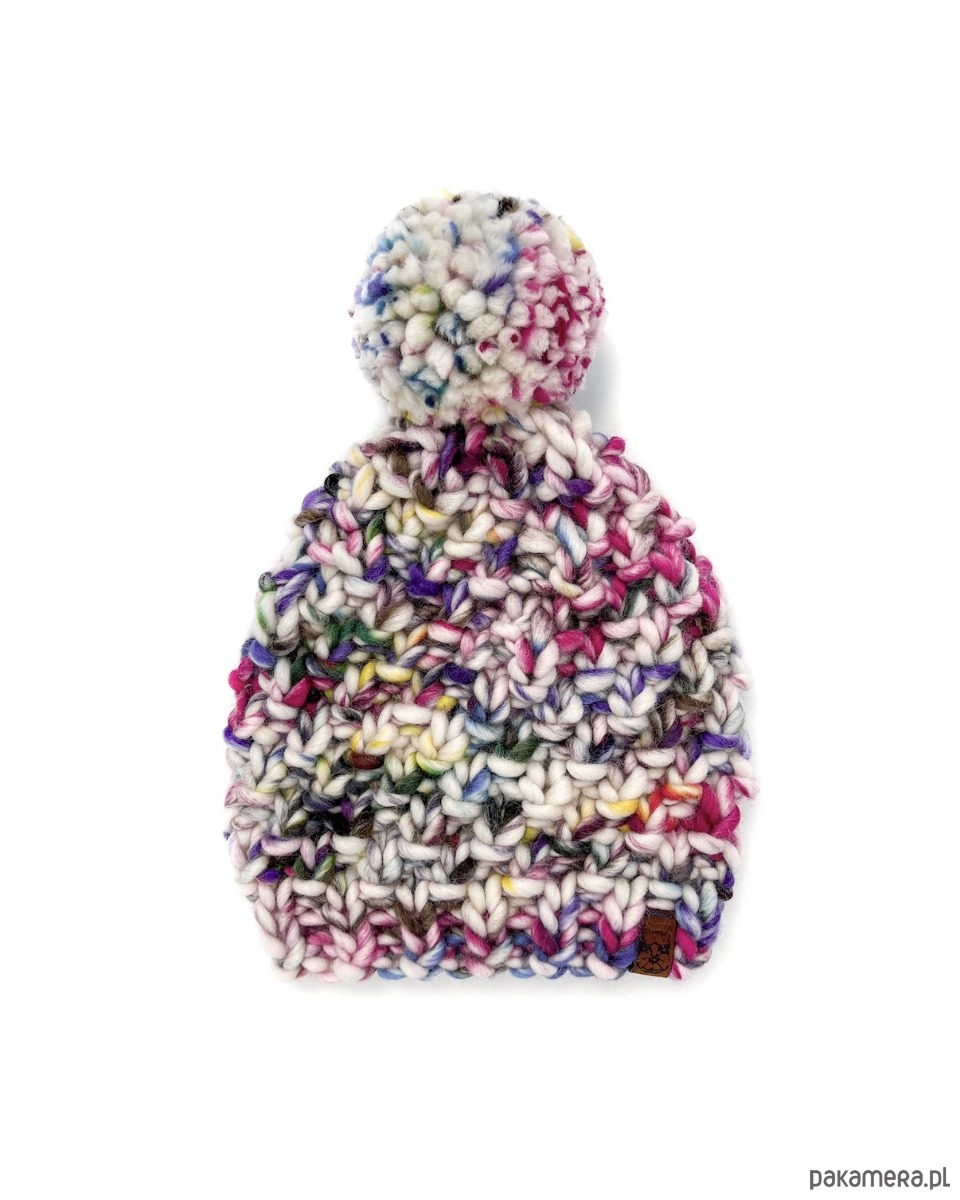 Czapka jest bardzo wygodna, dopasowuje się do obwodu głowy. Choć gruba, jest dość lekka. Model Unicorn jest w wydziergałam z przepięknej, ręcznie farbowanej wełny. Każda czapka Unicorn jest więc inna, choć utrzymana w tej samej tonacji kolorystycznej.