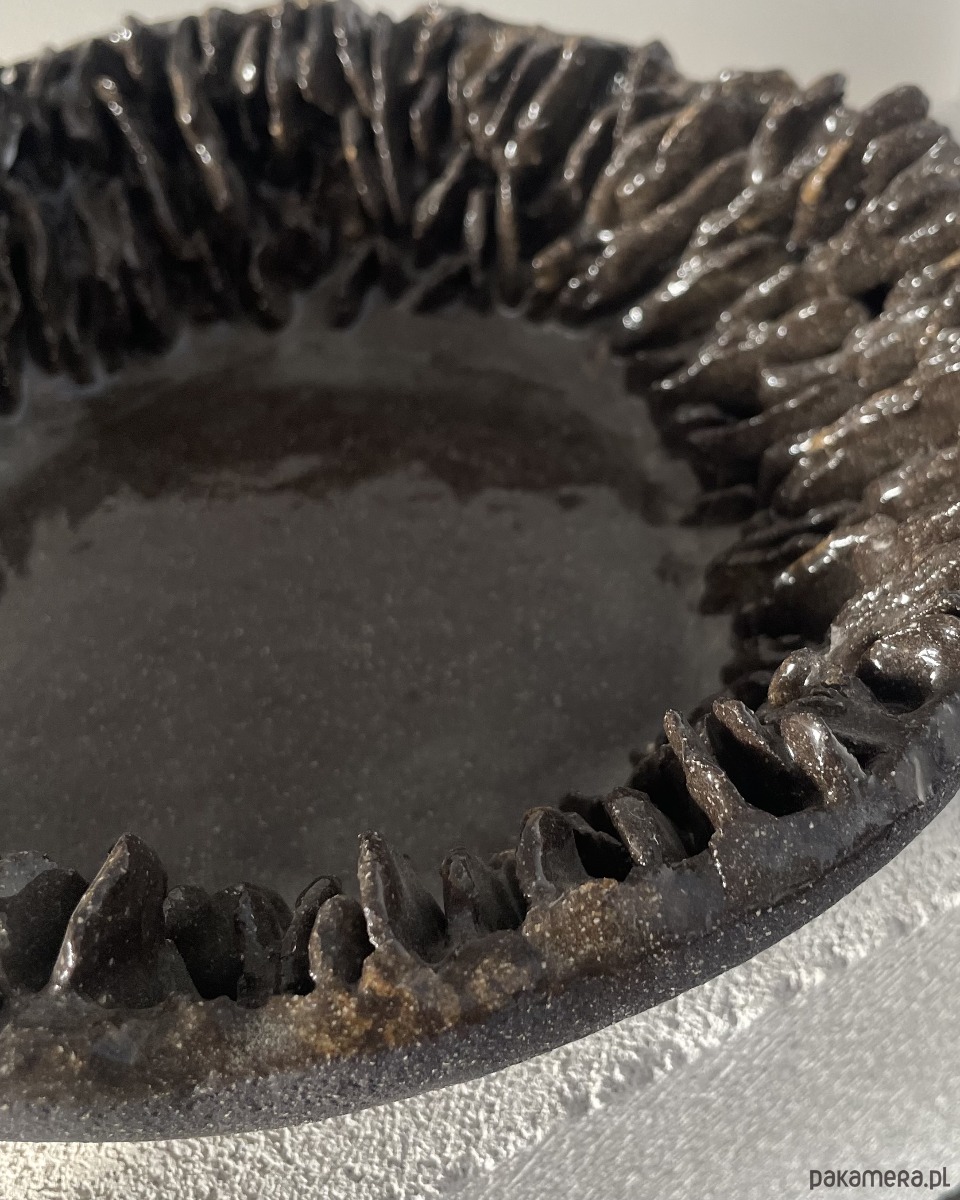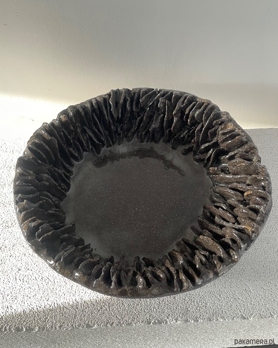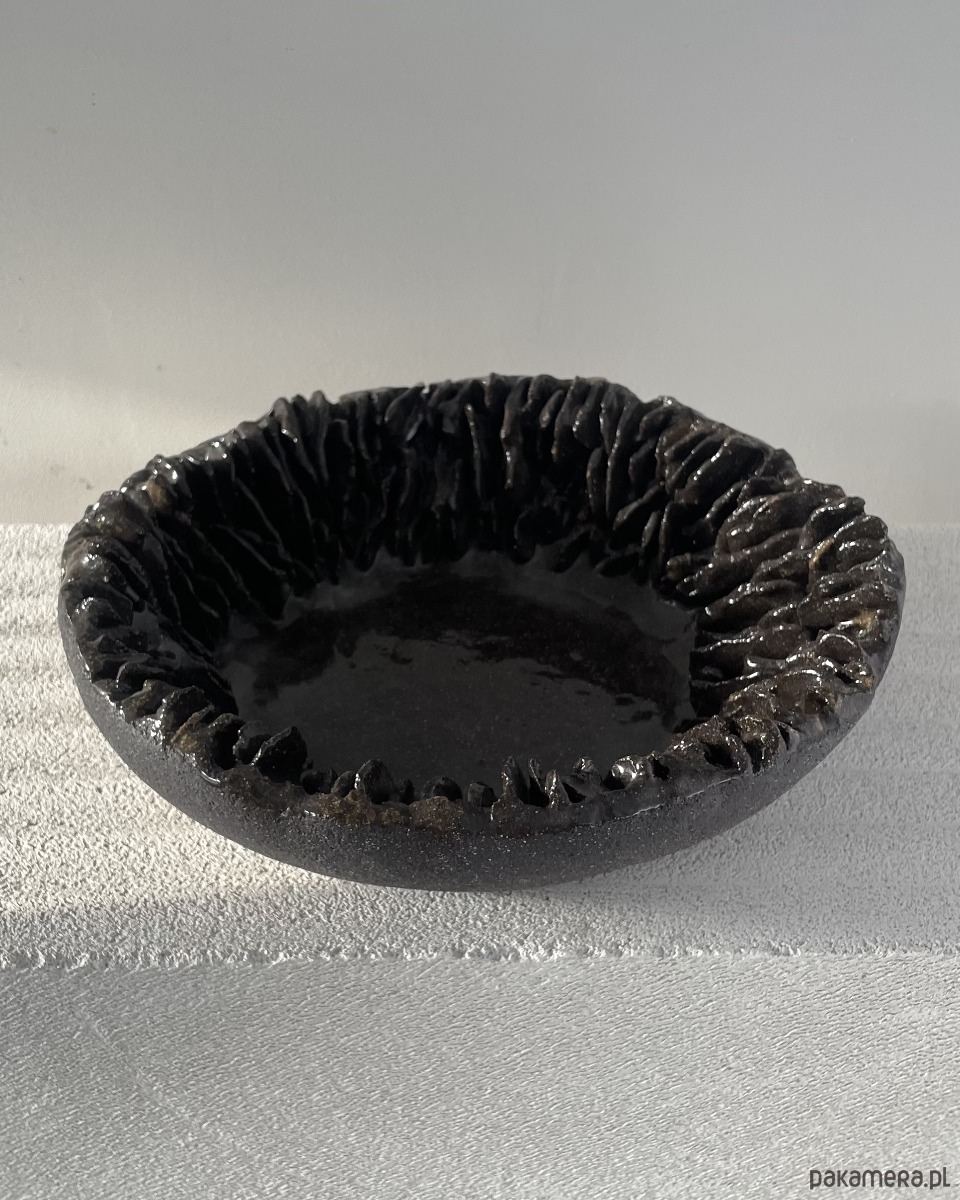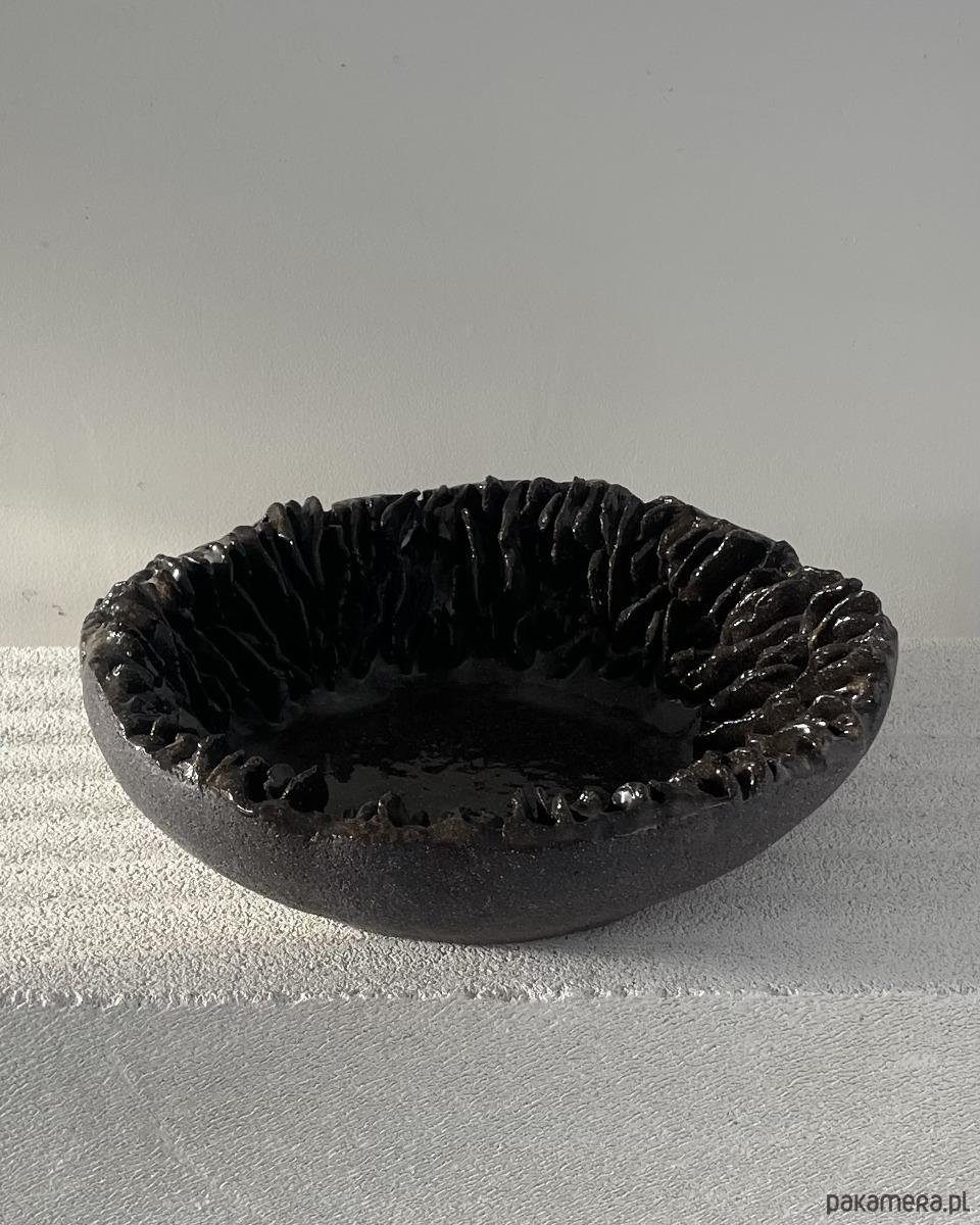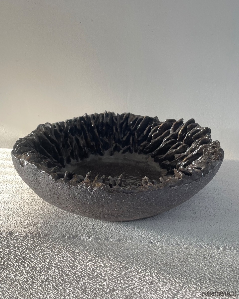 • Unikalną rzeźbiarską misę z ciemnej gliny – stworzoną ręcznie
