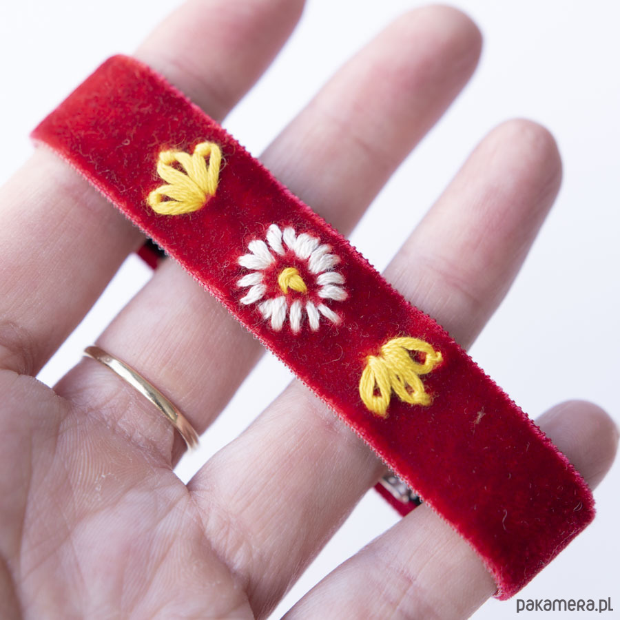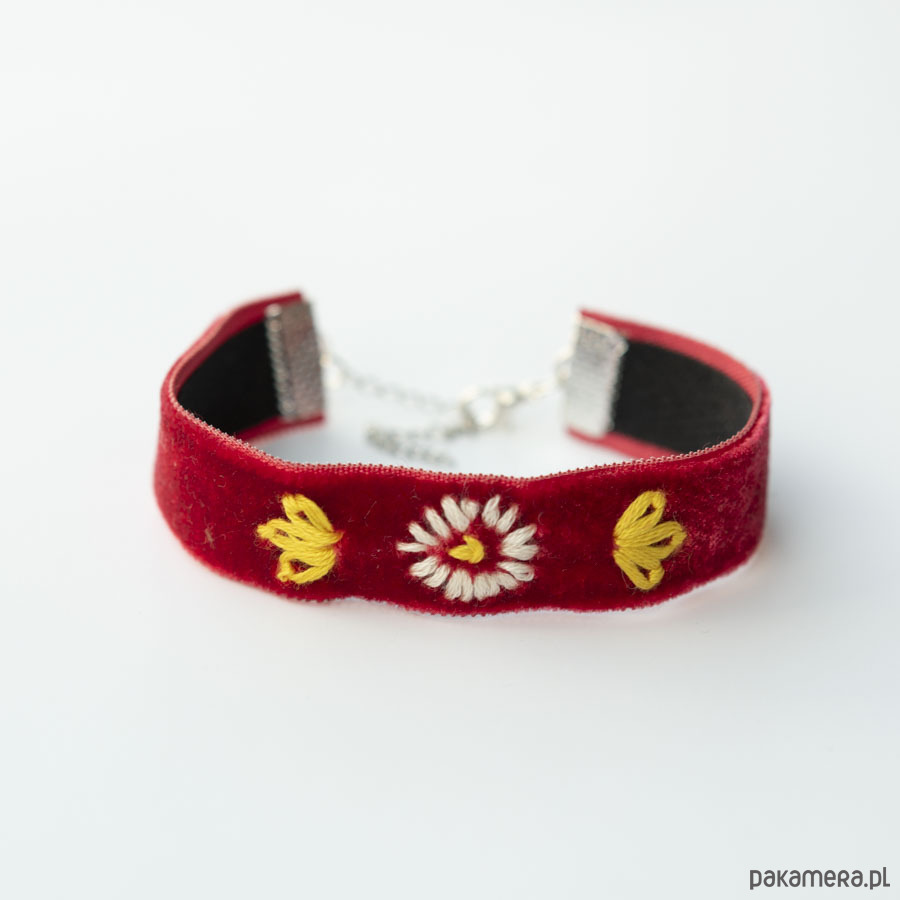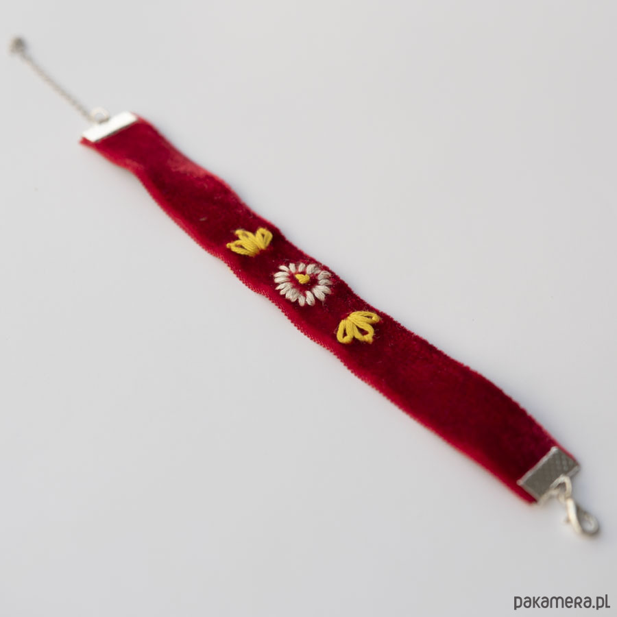 Miękka bransoletka, ręcznie wyhaftowana na aksamitnej taśmie.