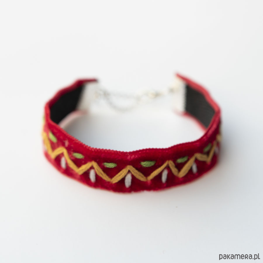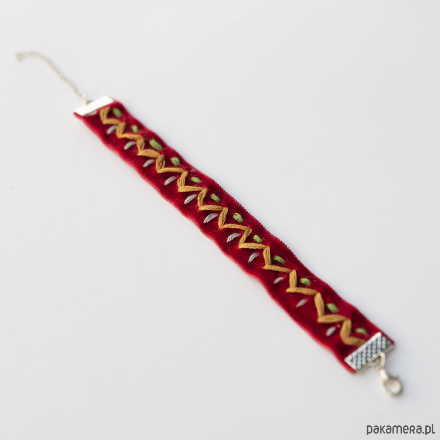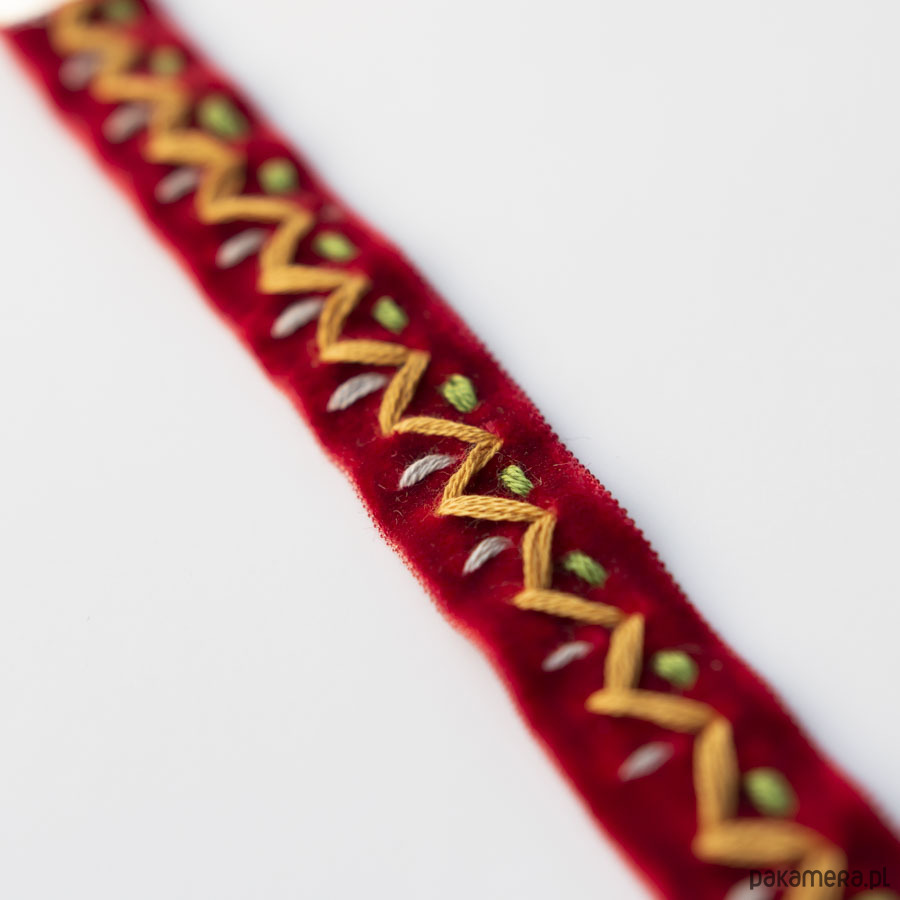 Miękka bransoletka, ręcznie wyhaftowana na aksamitnej taśmie.