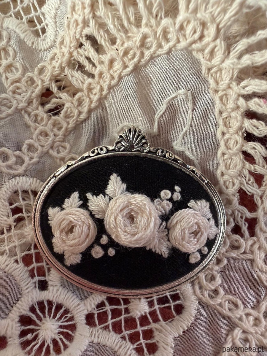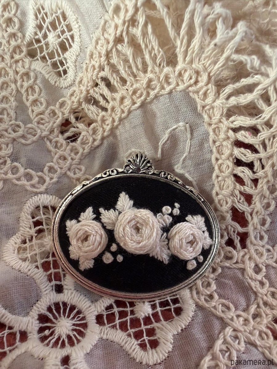 Ręcznie haftowana broszka "Bukiet białych róż "