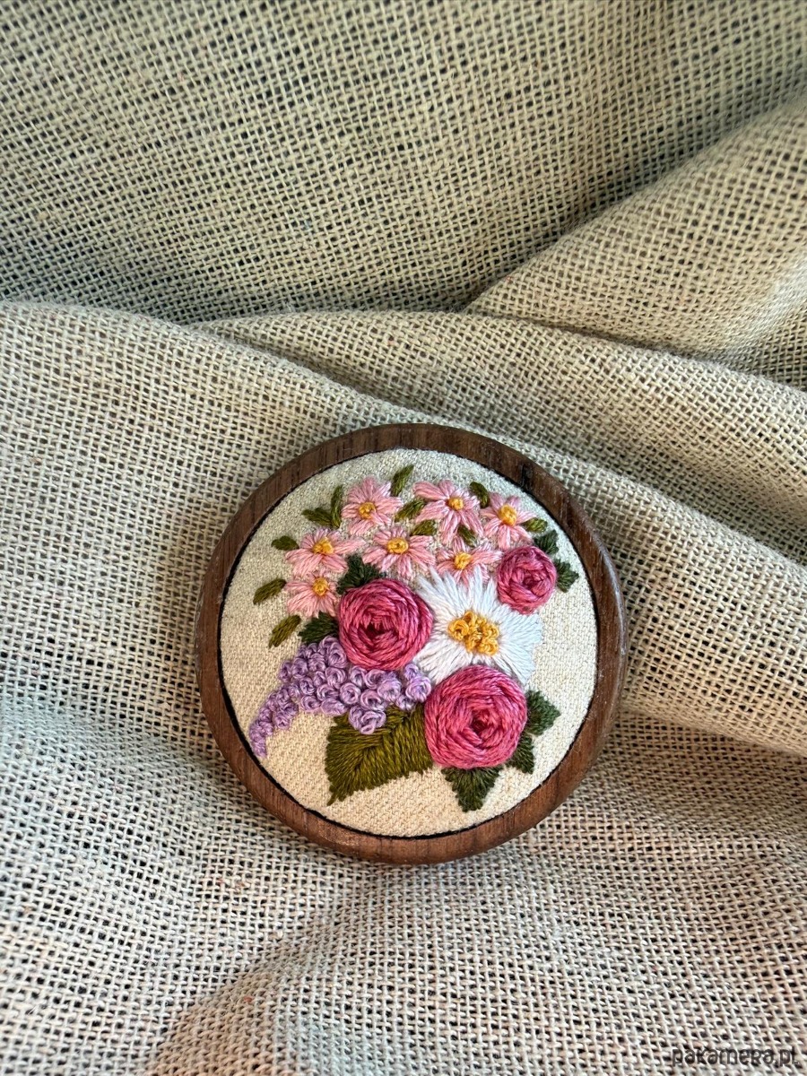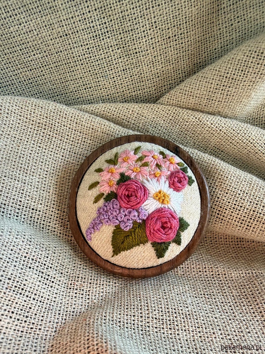 Ręcznie haftowana broszka "Bukiet kwiatów"
