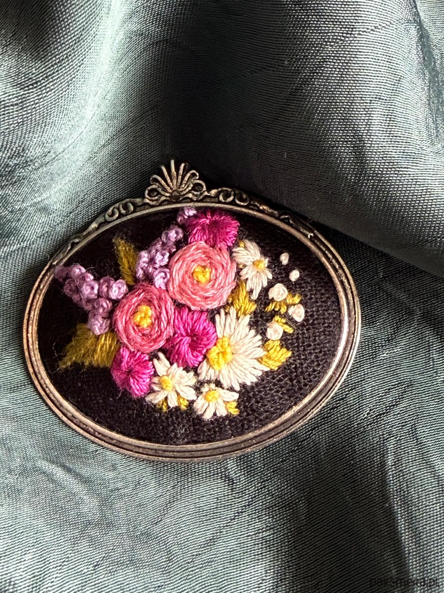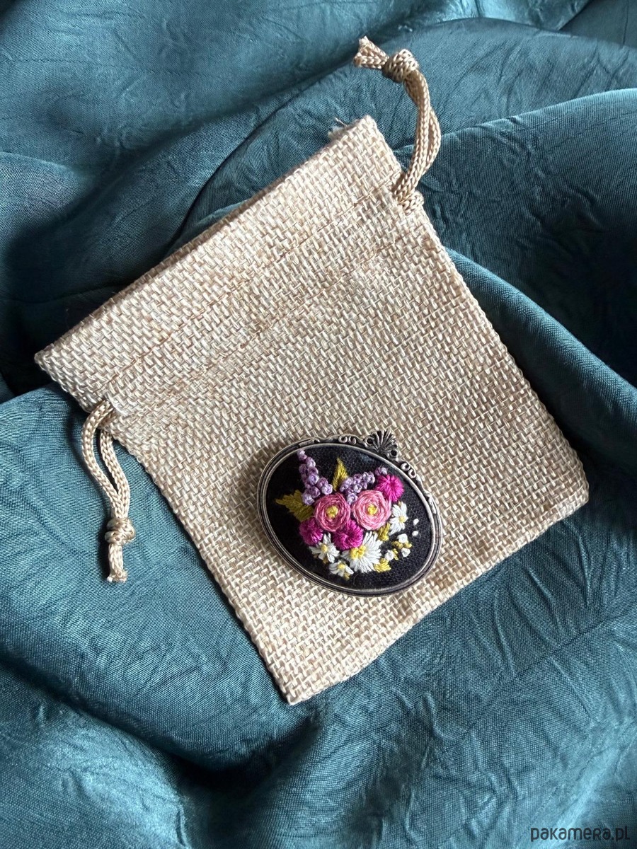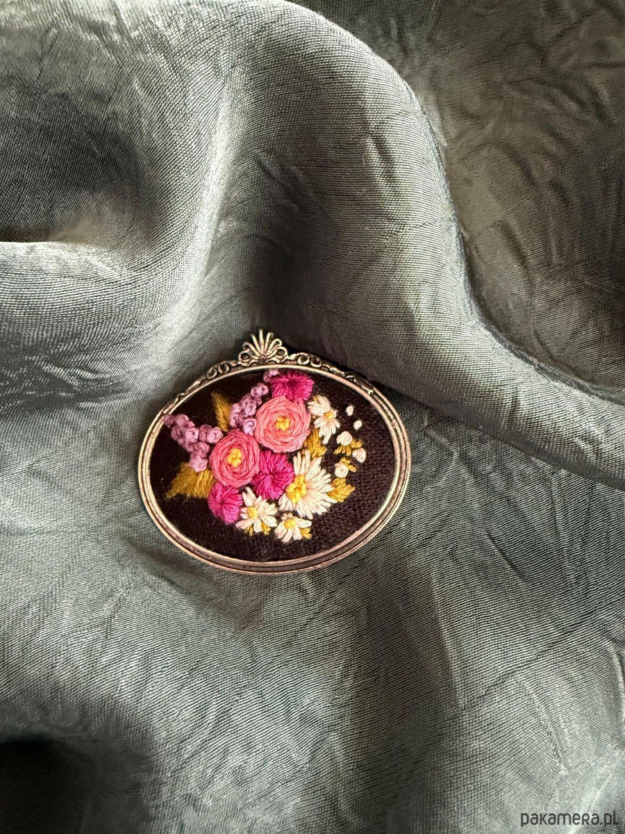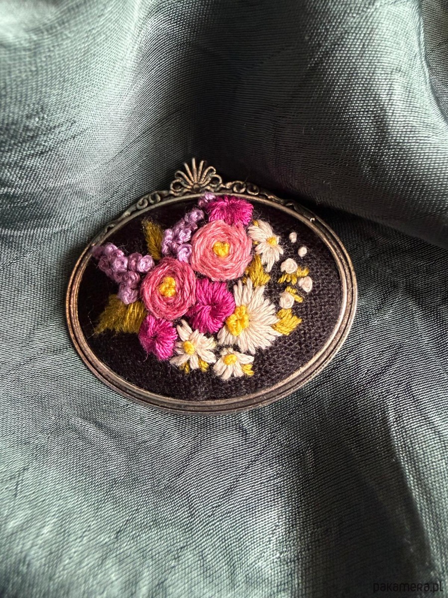 Ręcznie haftowana broszka "Bukiet kwiatów "