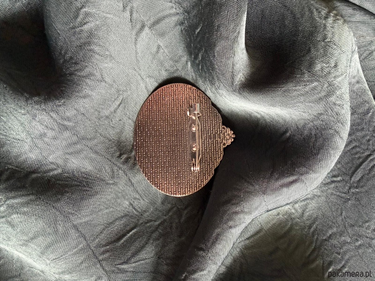 Wymiary broszki: 5 cm*4 cm, wymiary tarczy z haftem wysokość 4 cm, szerokość 3 cm.