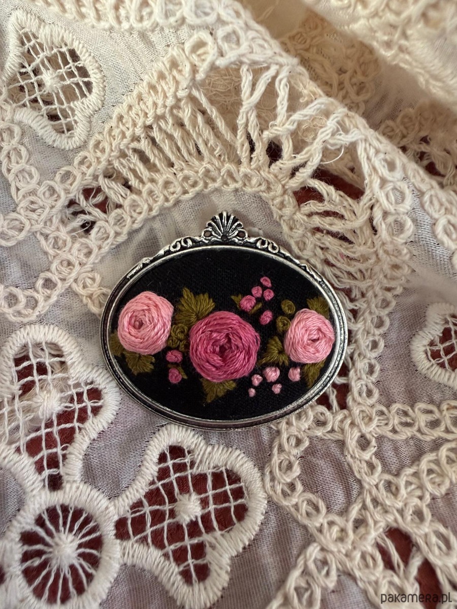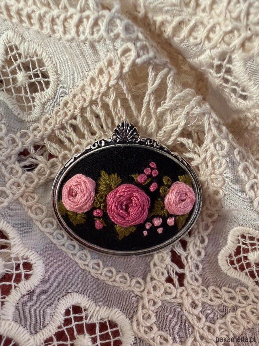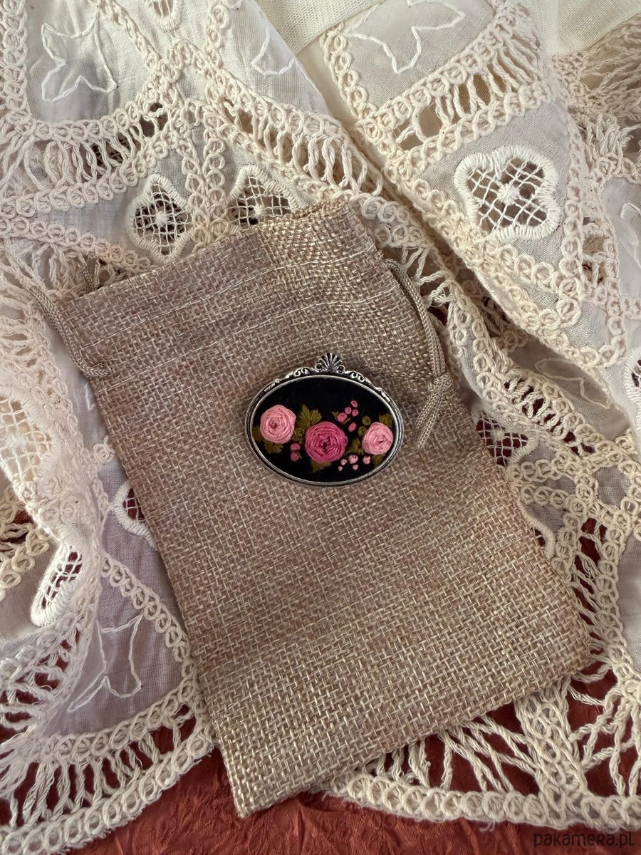 Poszukujesz nietuzinkowej biżuterii lub wyjątkowego prezentu dla żony, mamy, córki, babci, przyjaciółki ? Ta ręcznie haftowana broszka będzie idealnym wyborem ! Każda broszka wykonywana jest w pojedynczym egzemplarzu, dzięki czemu masz pewność, że nikt nie będzie posiadał takiej samej ! Haft wykonany na materiale bawełnianym, wyszywany muliną bawełnianą w pięknych kolorach. Rama broszki wykonana ze stopu metali w kolorze srebra. Zapinanie na agrafkę.