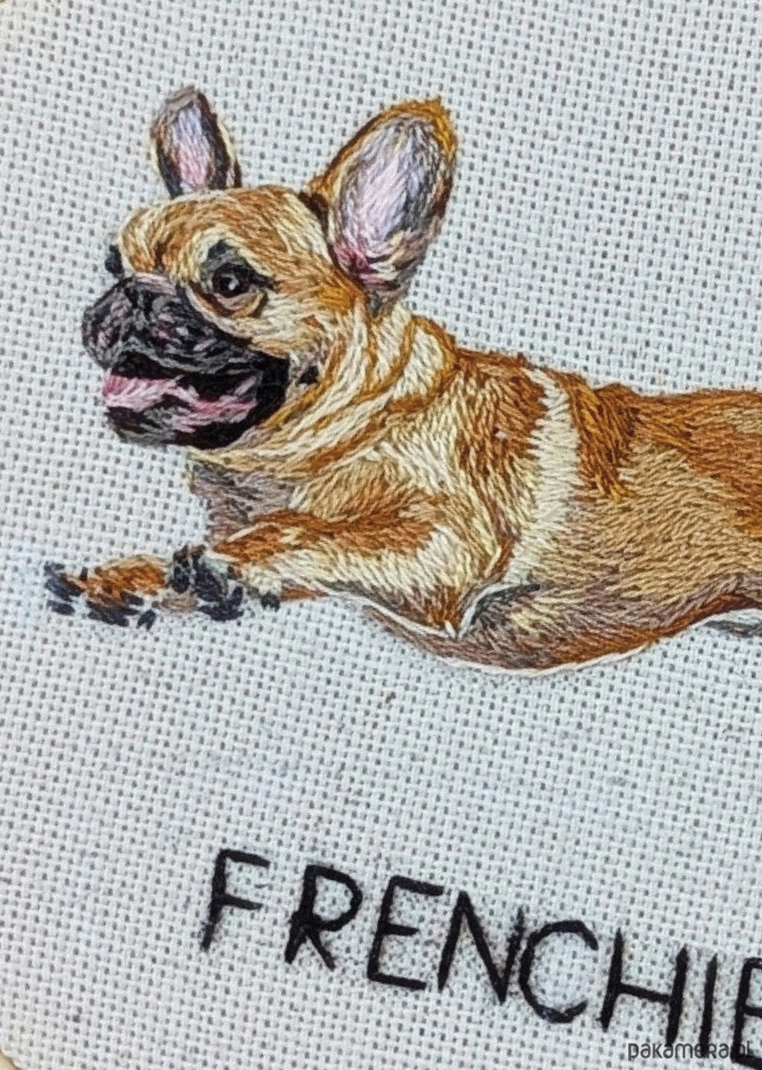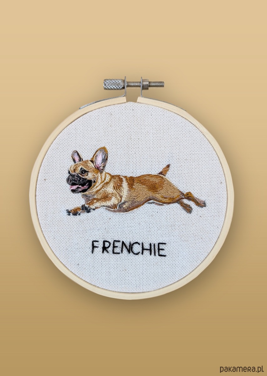 Ręcznie Haftowana Sylwetka Psa Buldog Francuski