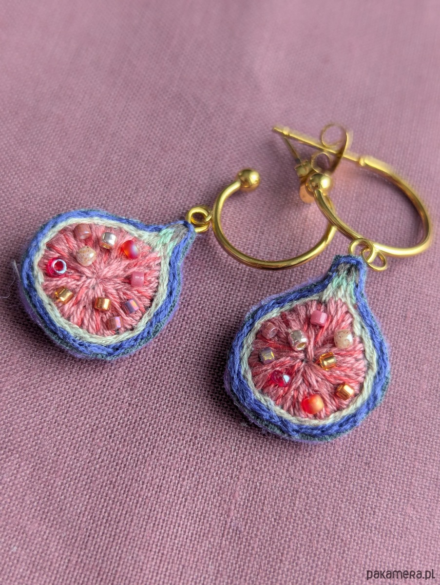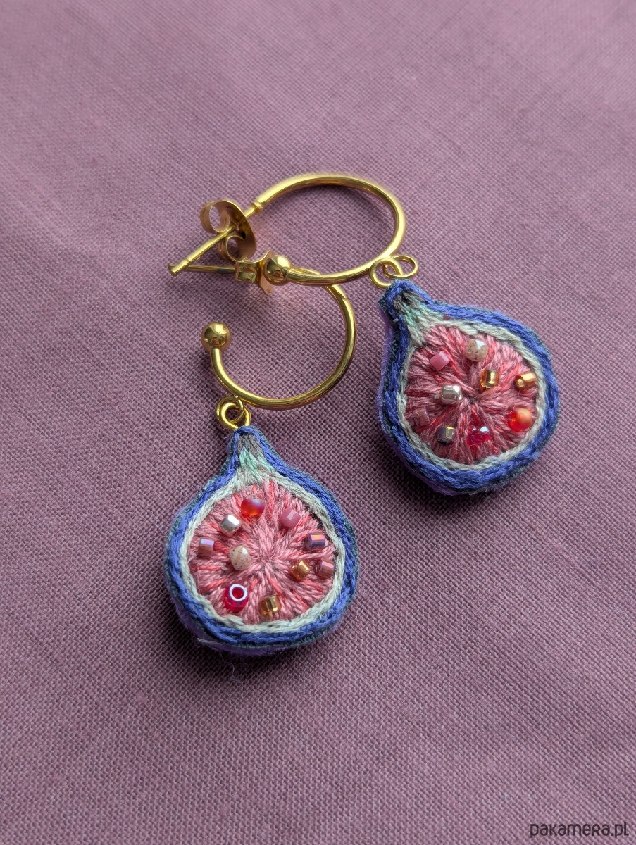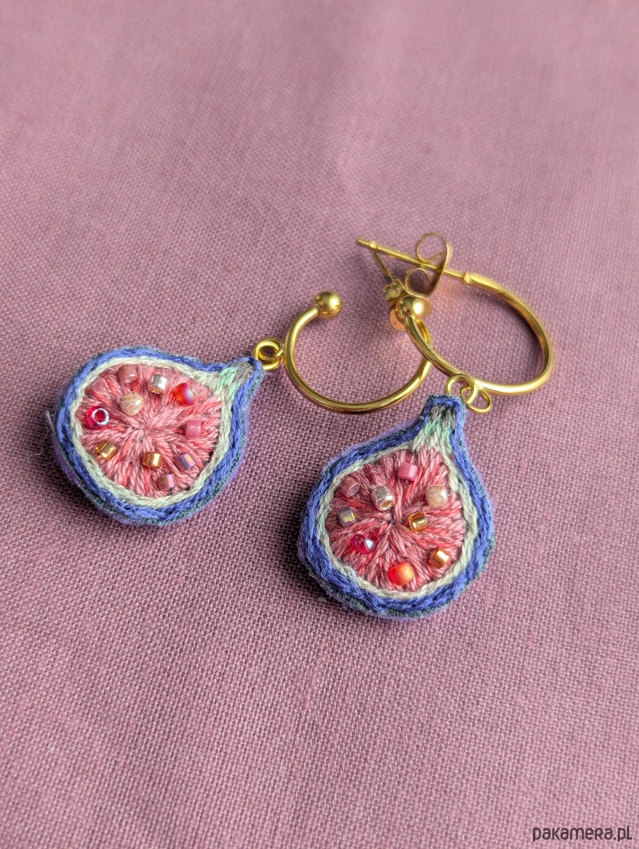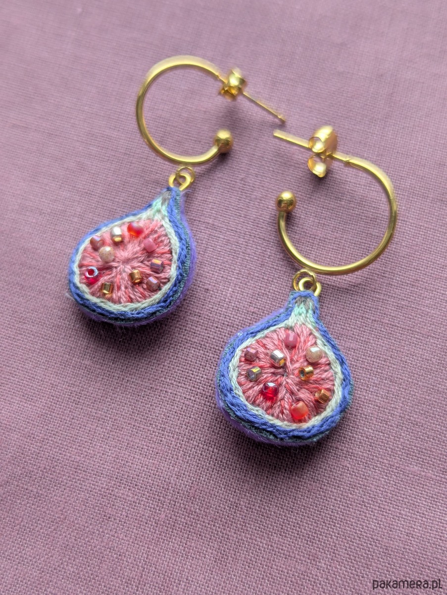 Ręcznie haftowane kolczyki figi