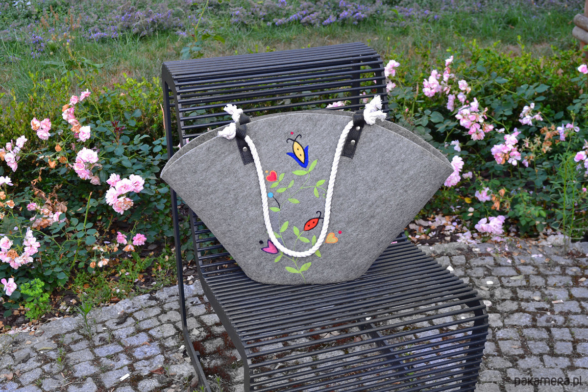 Duży kosz na ramię z szarego filcu impregnowanego (polskiego).