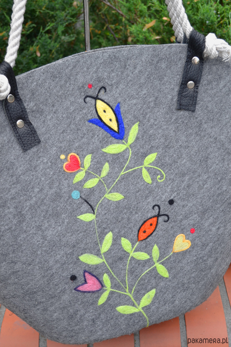 Ręcznie haftowany koszyk z filcu- haft kaszubski