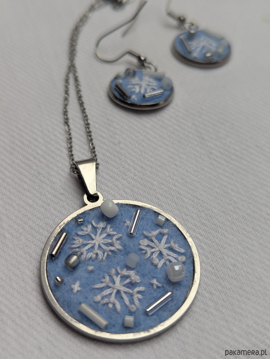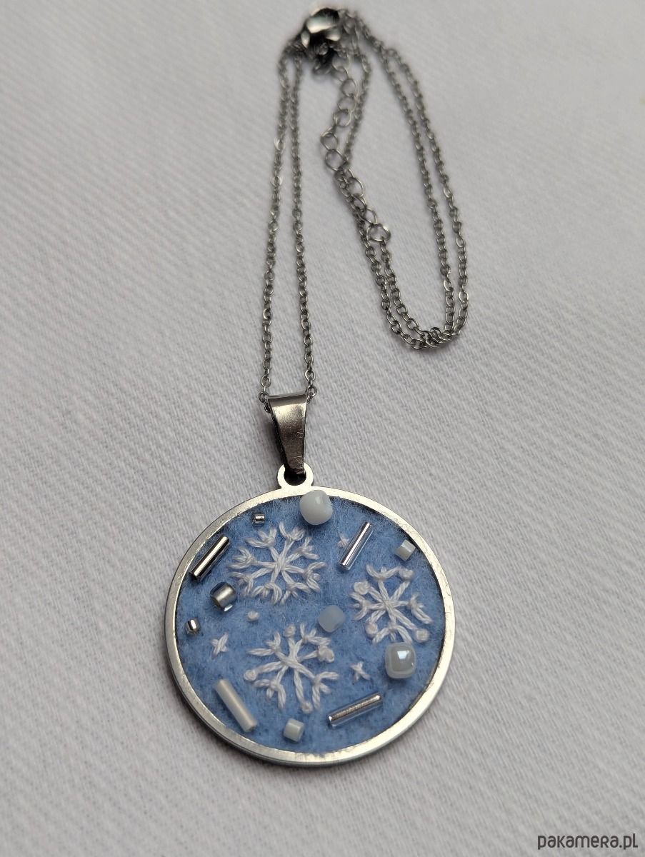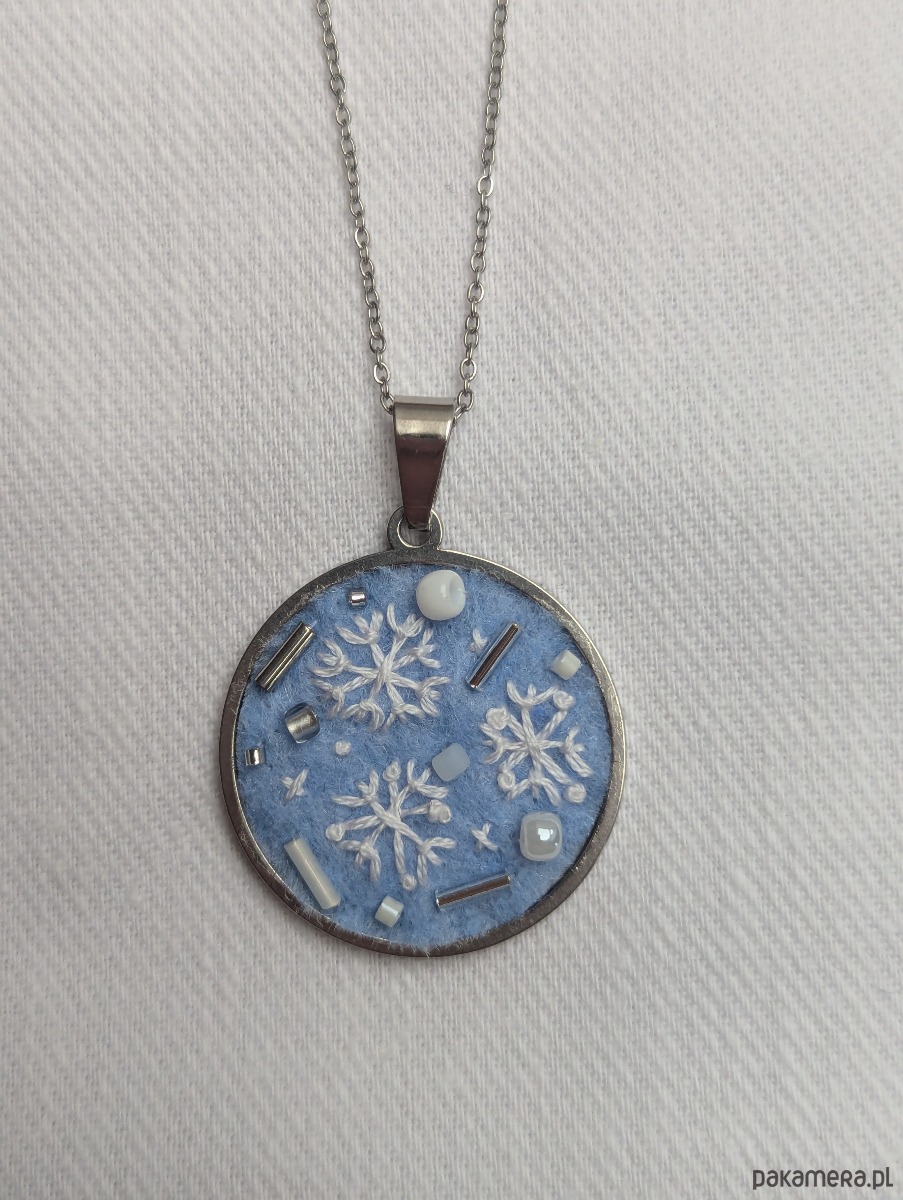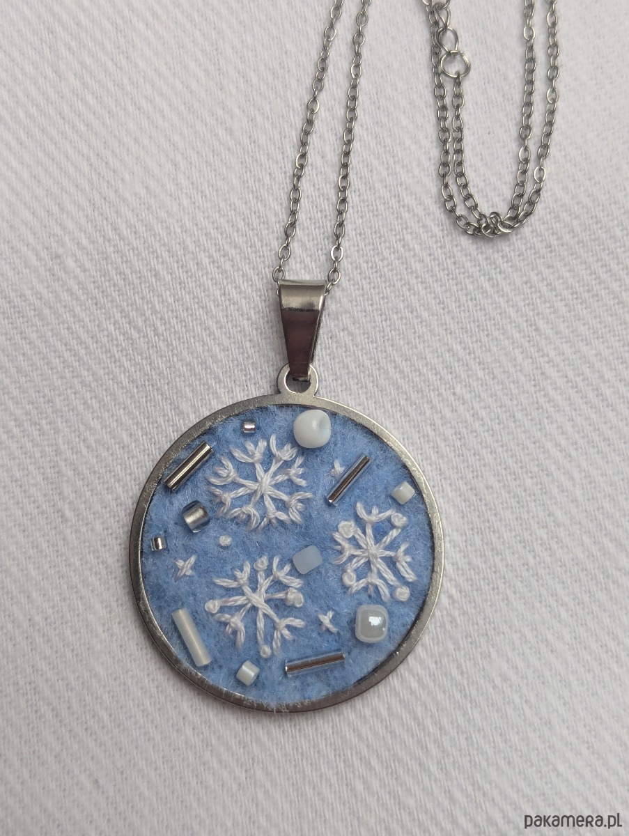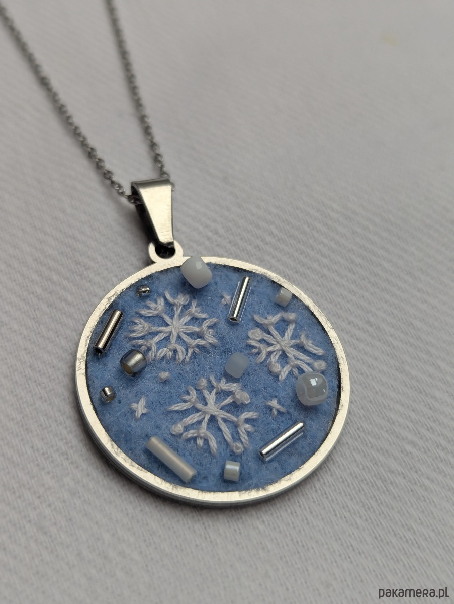 Ręcznie haftowany naszyjnik z płatkami śniegu