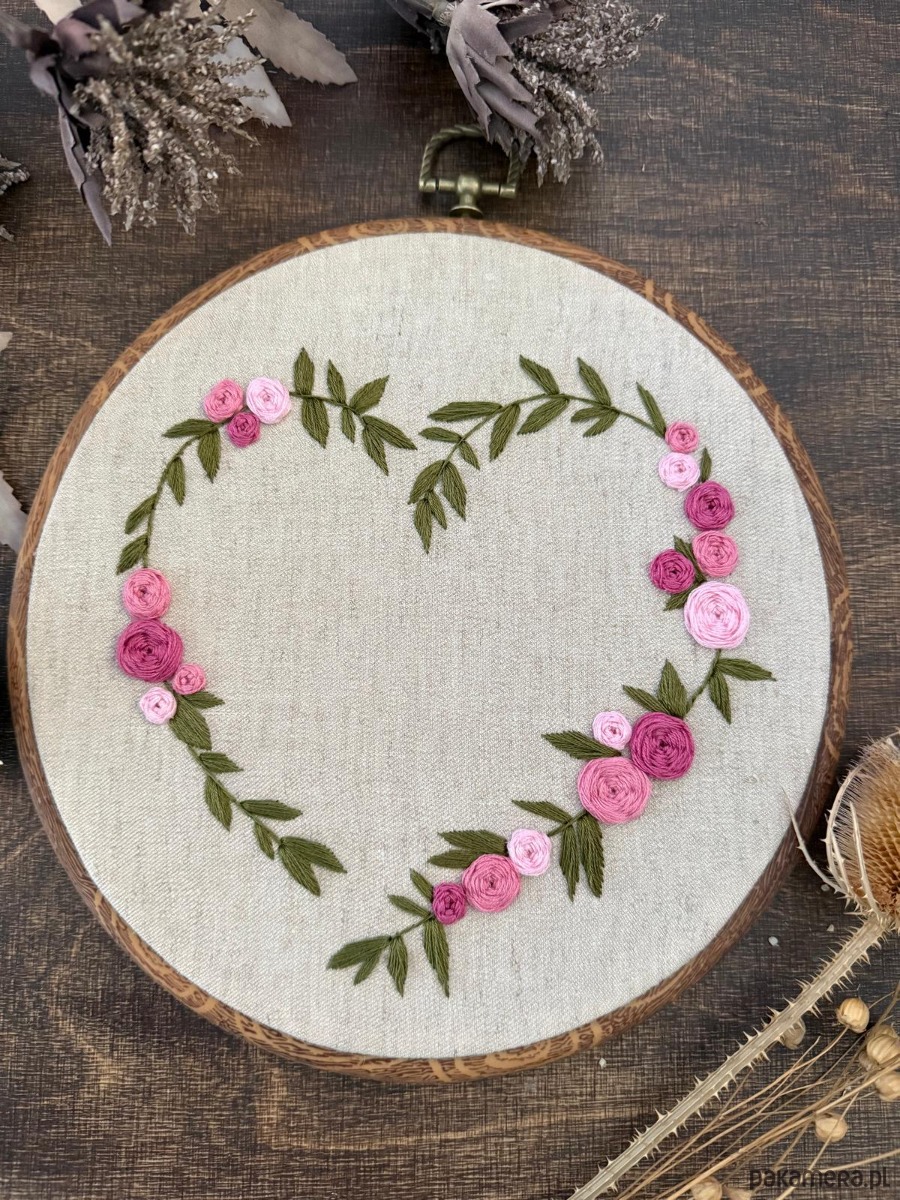 Ręcznie haftowany obrazek "Serce z kwiatów"