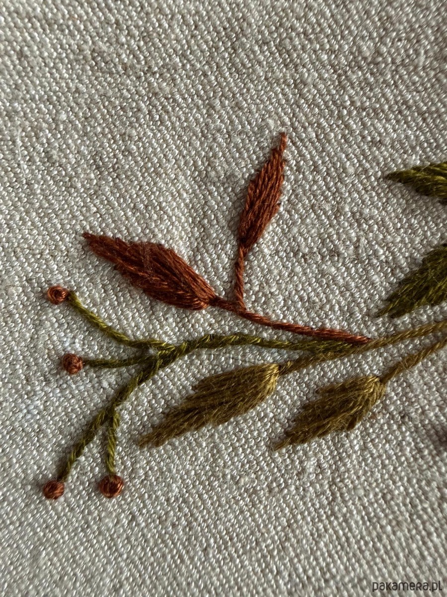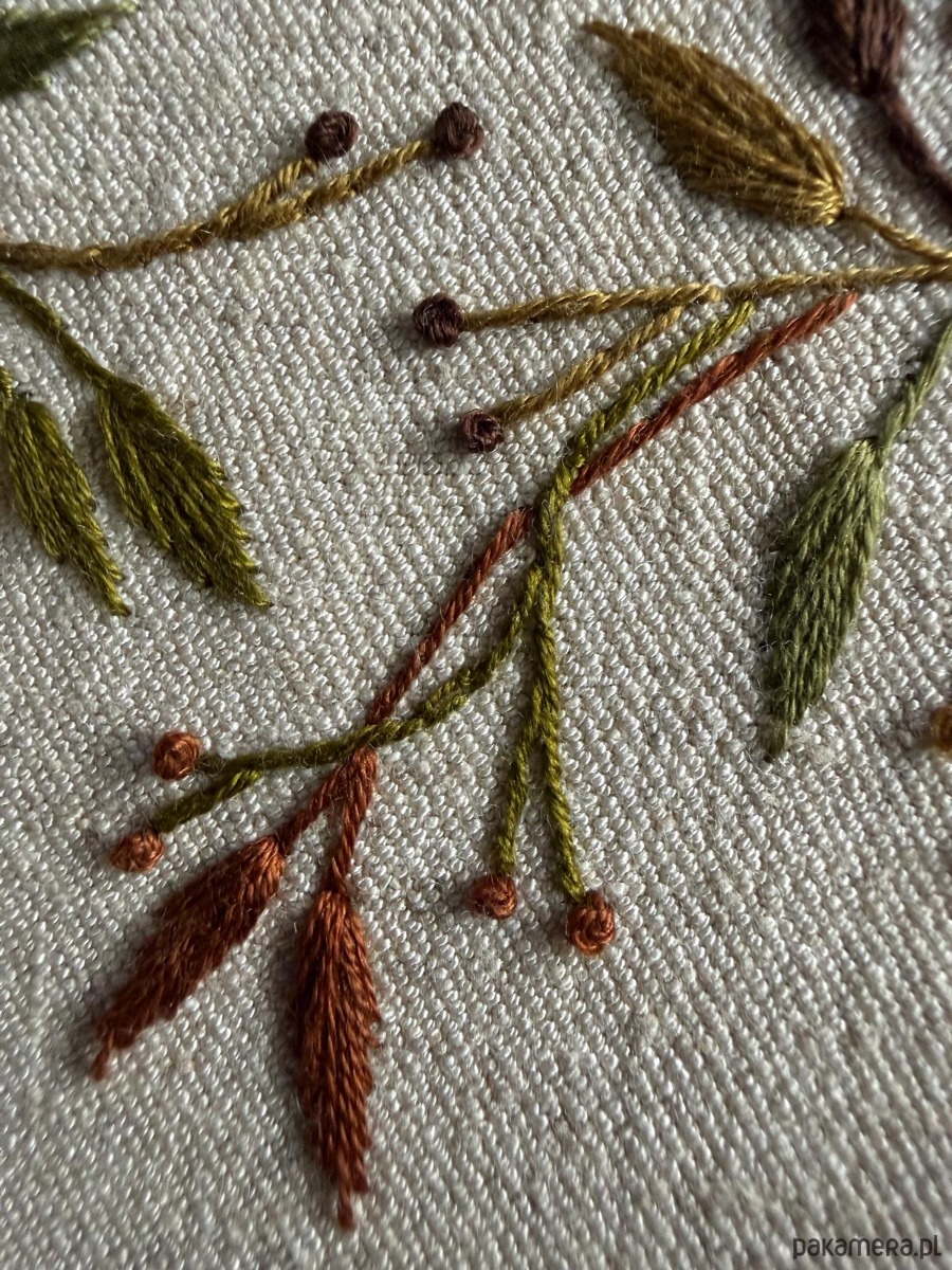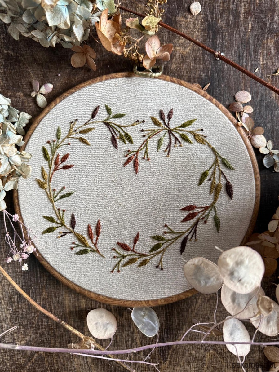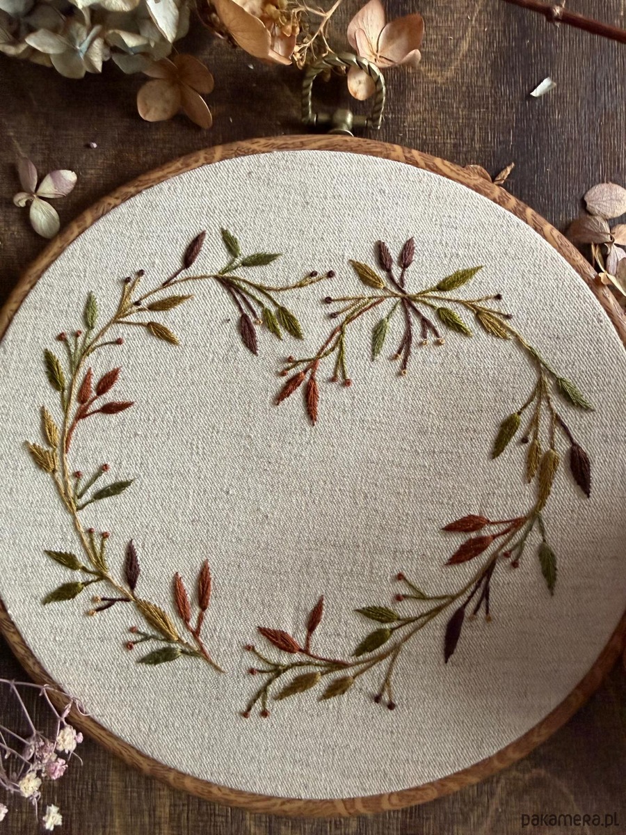 Ręcznie haftowany obrazek "Serce z liści"