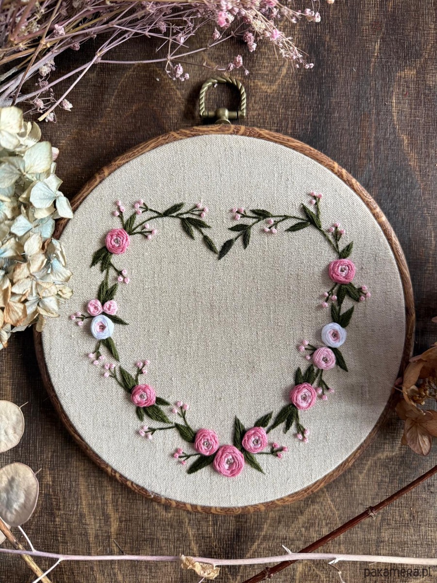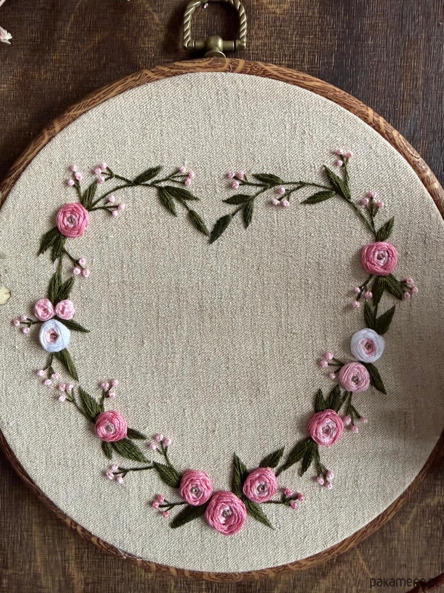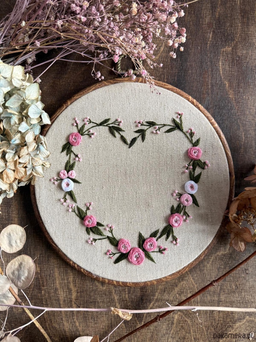 Ręcznie haftowany obrazek "Serce z róż"