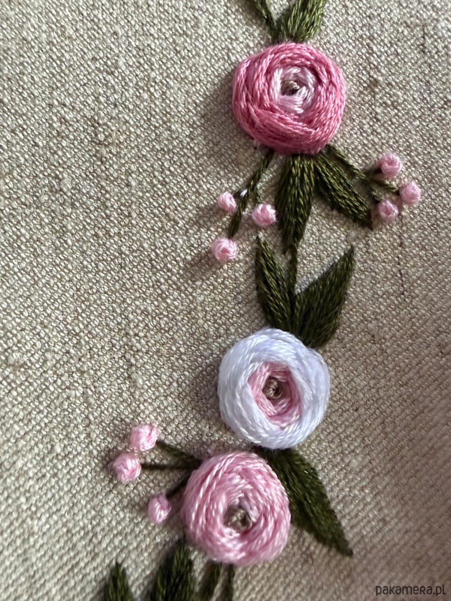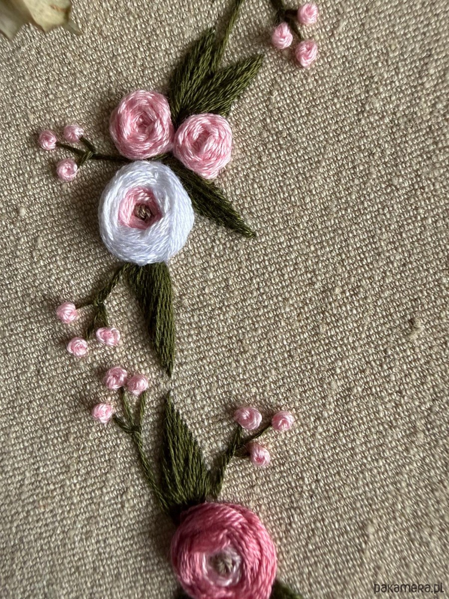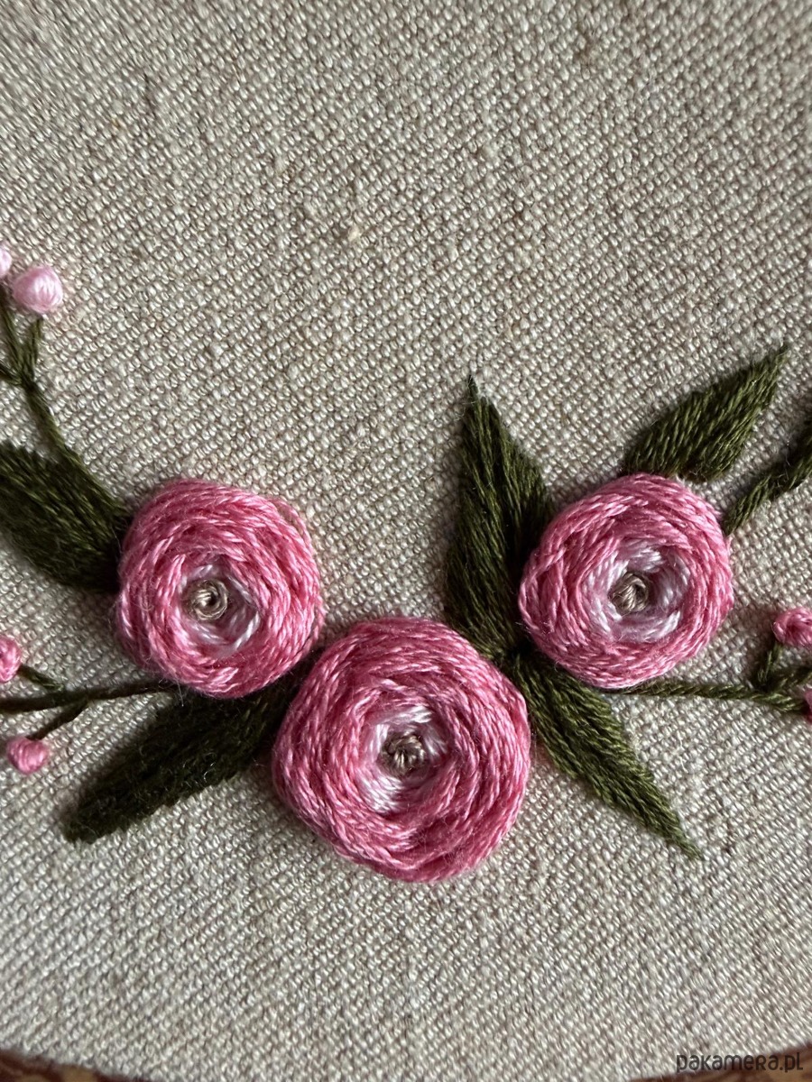 Ręcznie haftowany obrazek "Serce z róż"