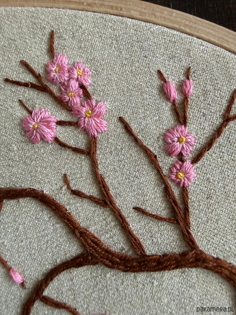 Ręcznie haftowany obrazek "Wiśnia japońska"