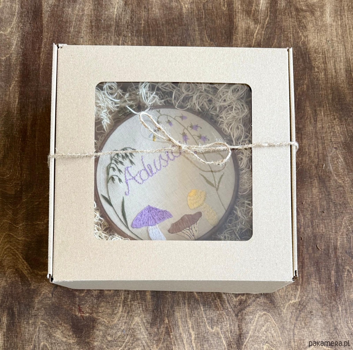 Ręcznie haftowany personalizowany obrazek z imieniem - motyw leśny