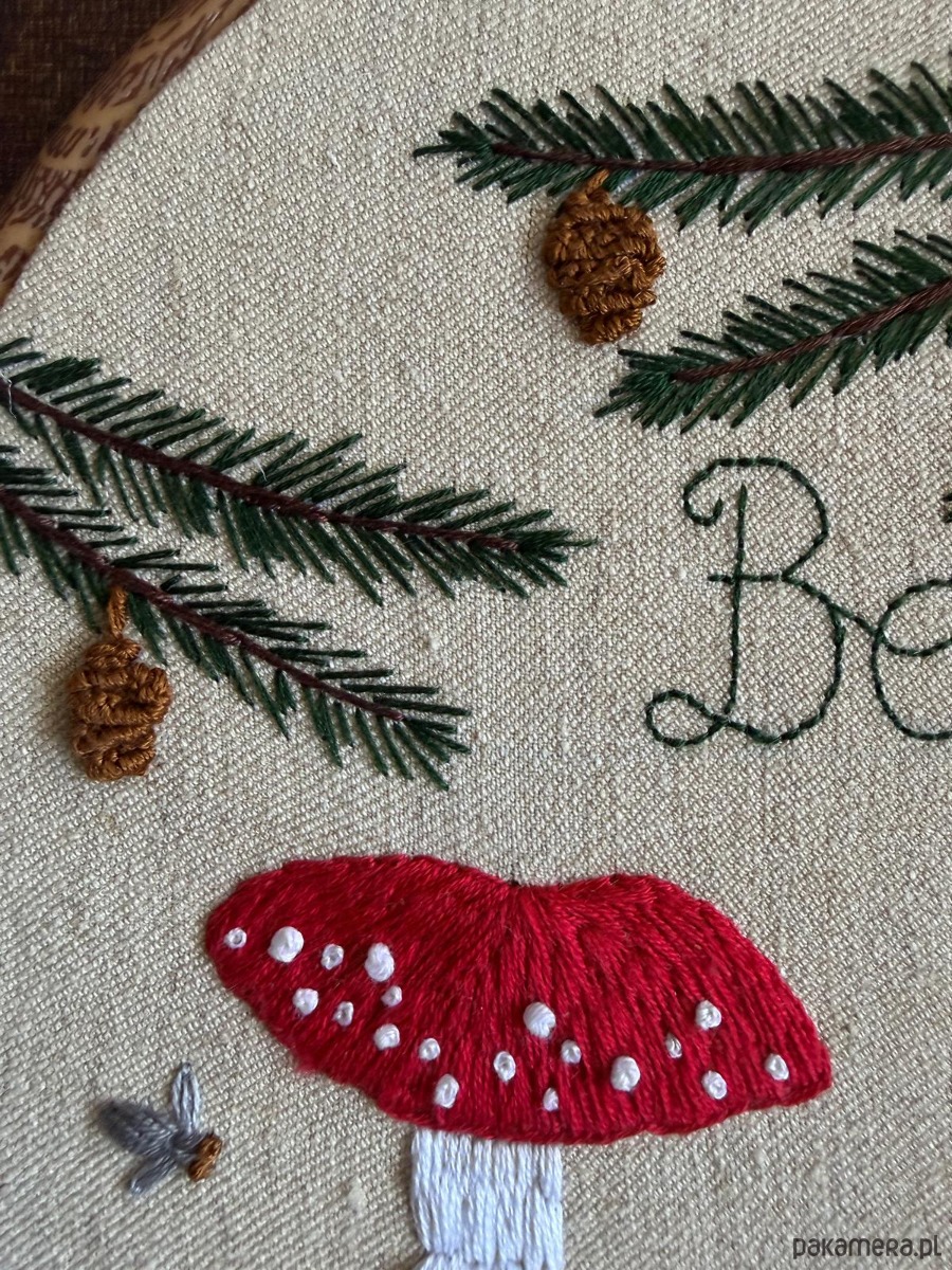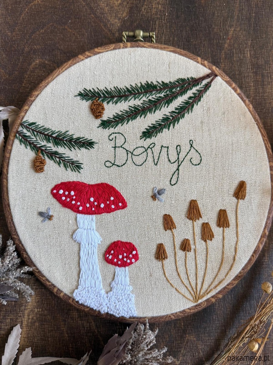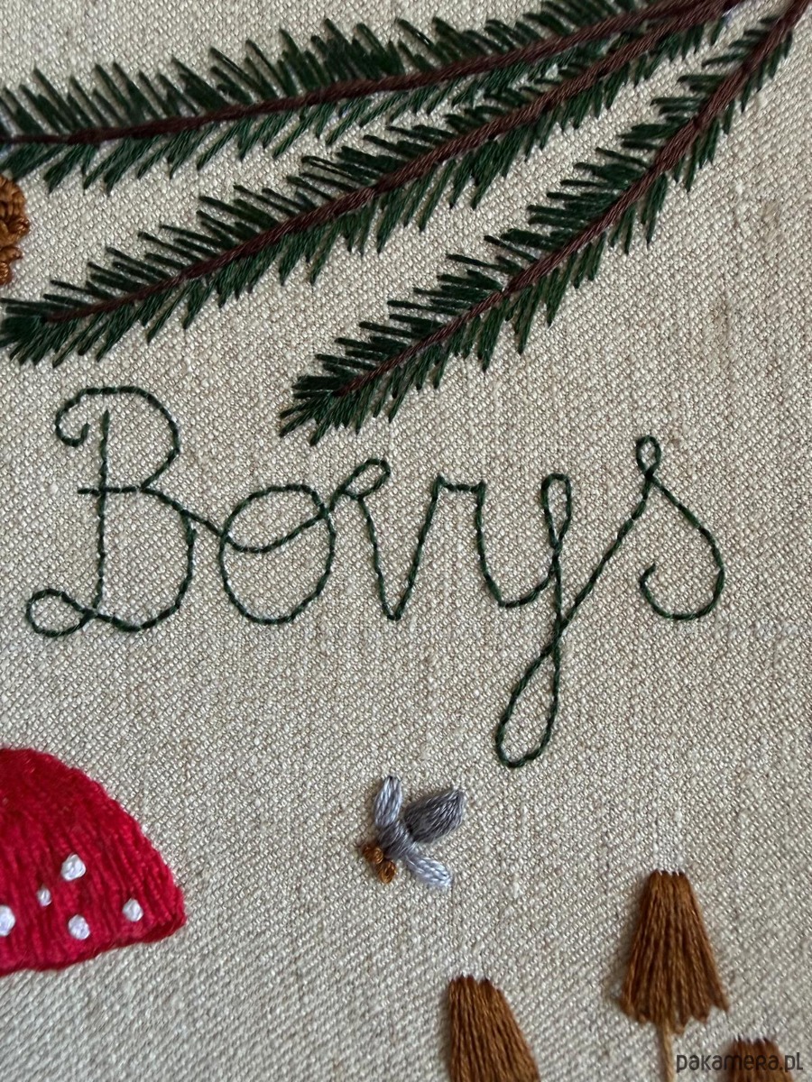 Ręcznie haftowany personalizowany obrazek z imieniem - motyw leśny