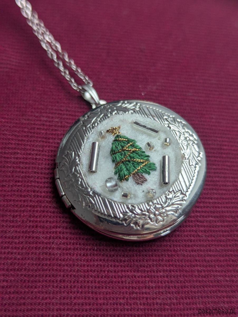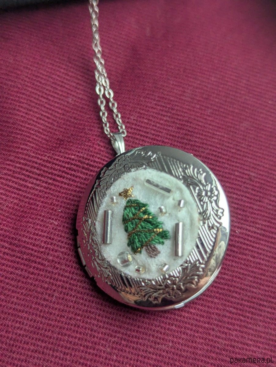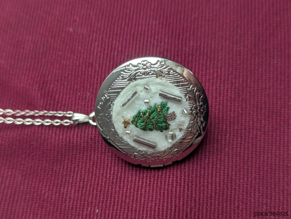 Ręcznie haftowany, otwierany naszyjnik choinka