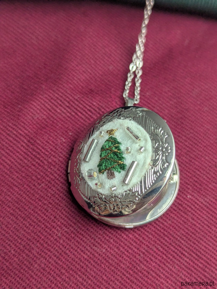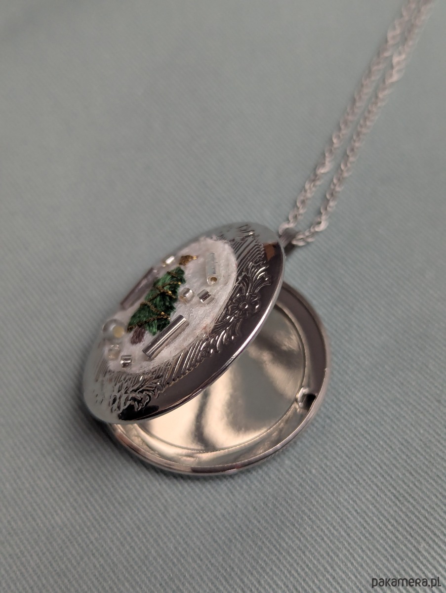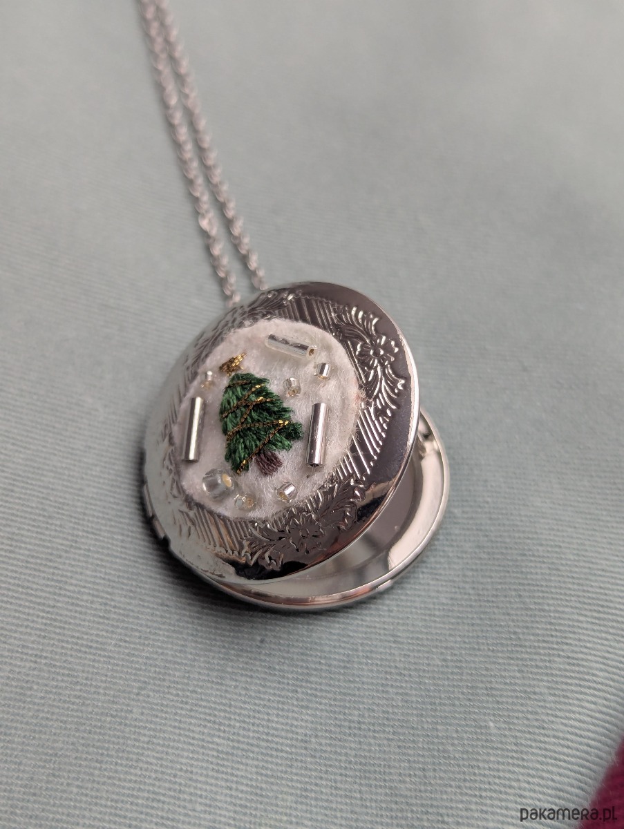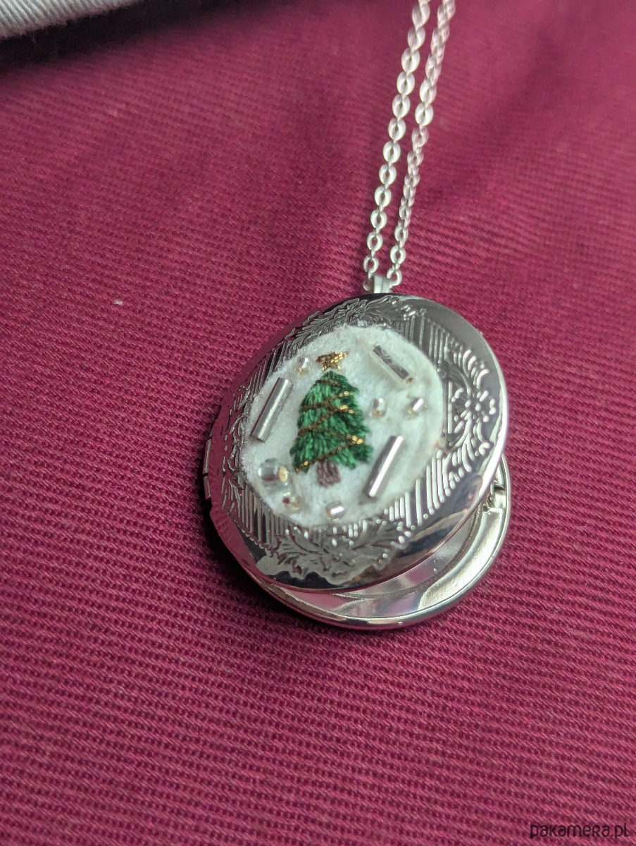 Ręcznie haftowany, otwierany naszyjnik choinka
