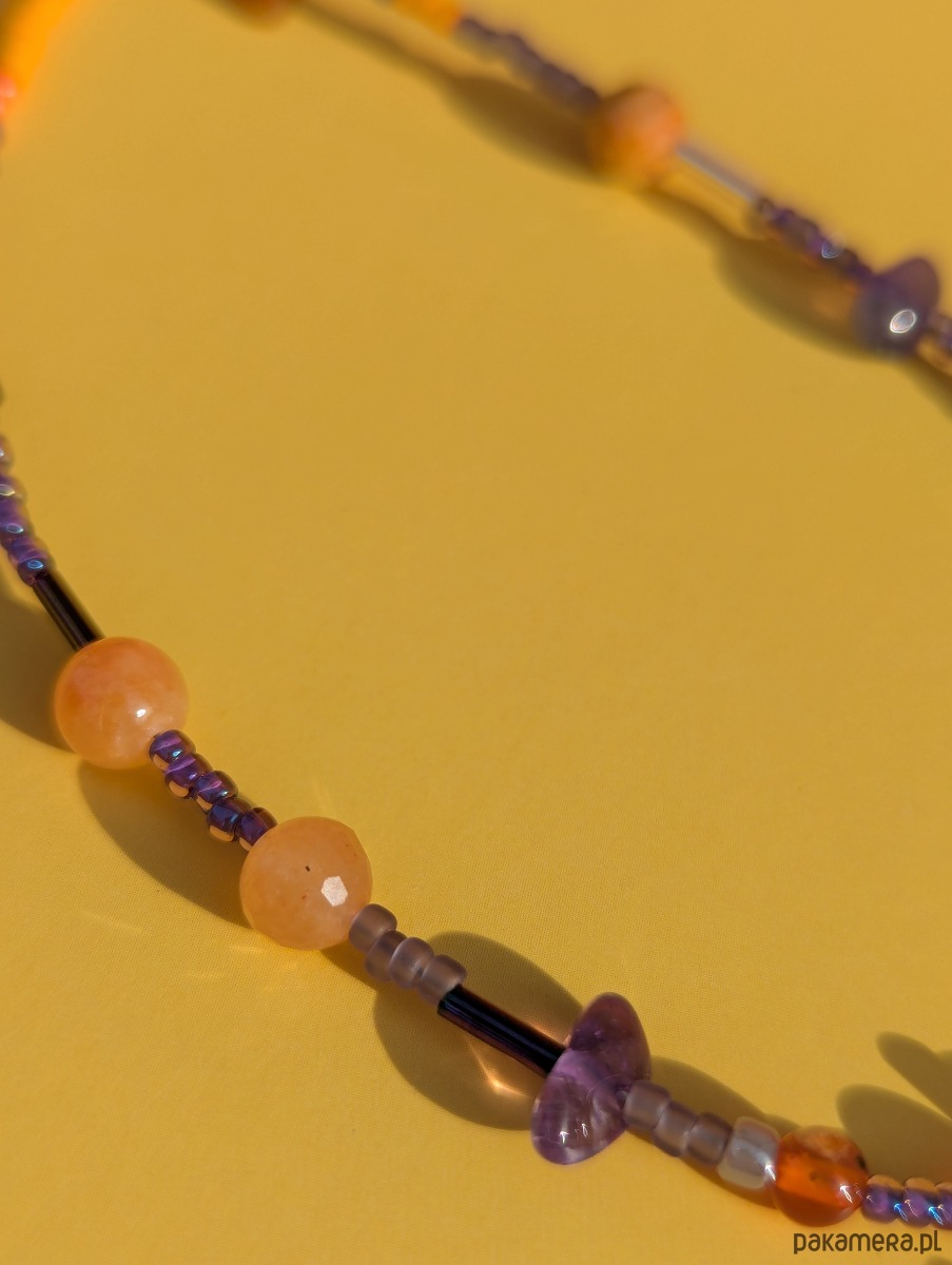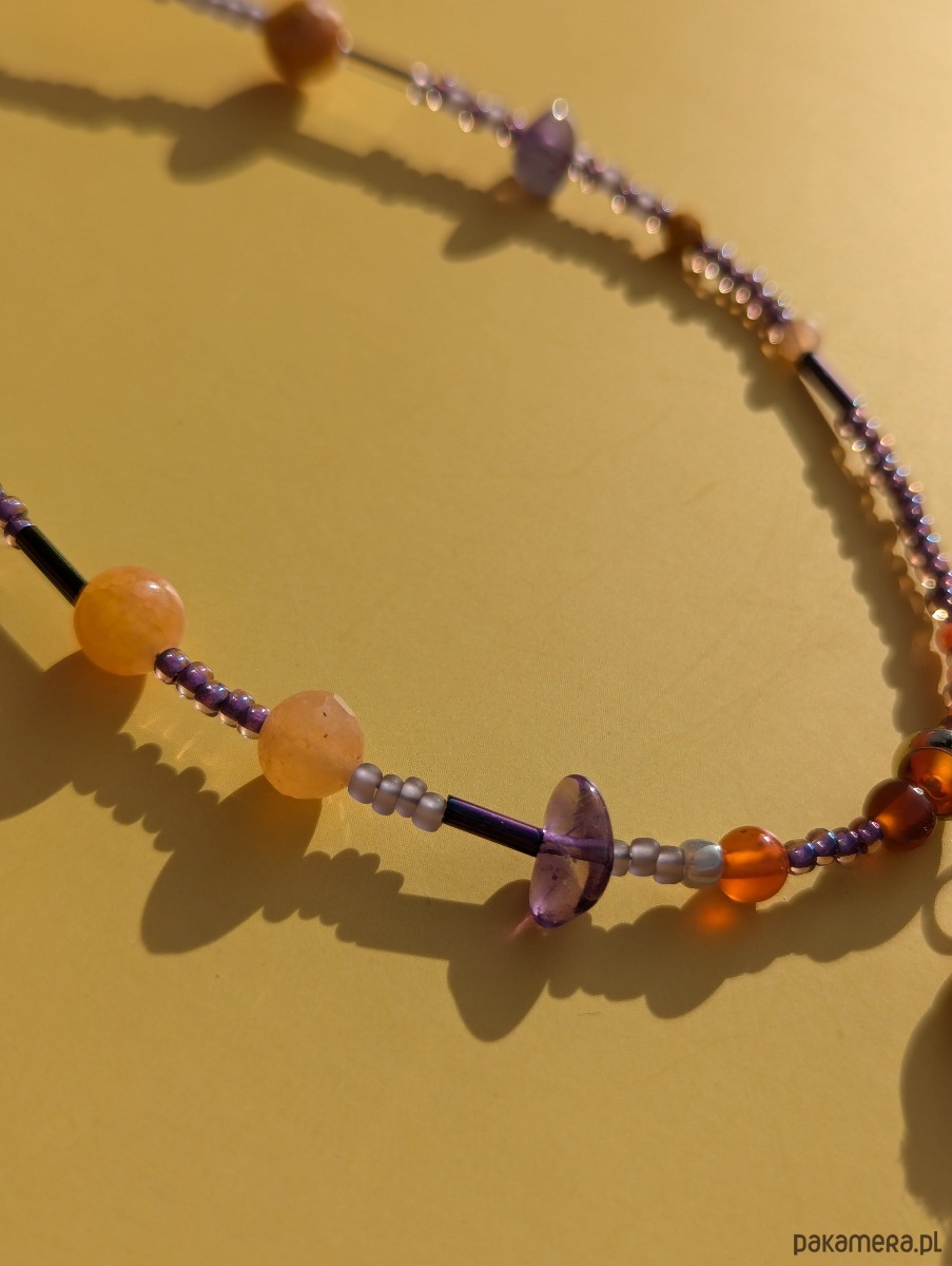 Naszyjnik został wykonany z kamieni naturalnych oraz szklanych koralików, które nawlekam intuicyjnie, kierując się kolorem, energią i wewnętrznym wyczuciem kompozycji. Dzięki temu każda sztuka ma swój własny charakter i historię.