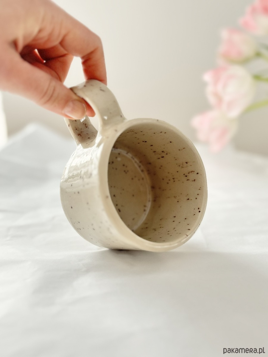 Ręcznie lepiona filiżanka ceramiczna - piaskowy beż