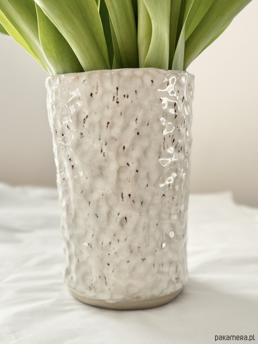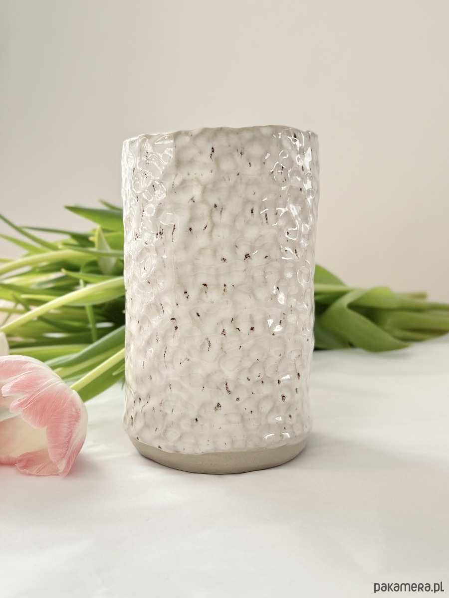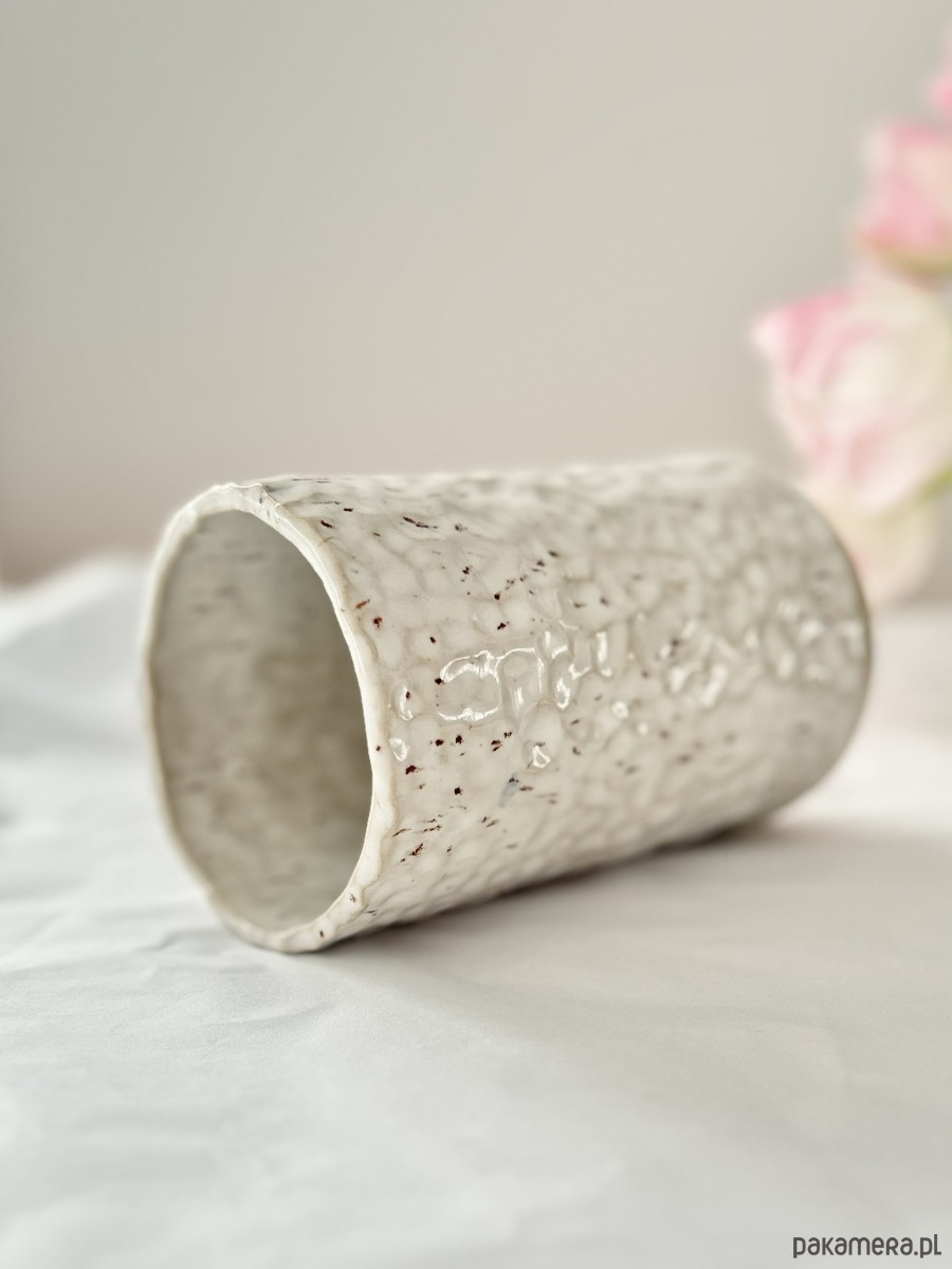 Ręcznie lepiony wazon ceramiczny - przepiórcza biel