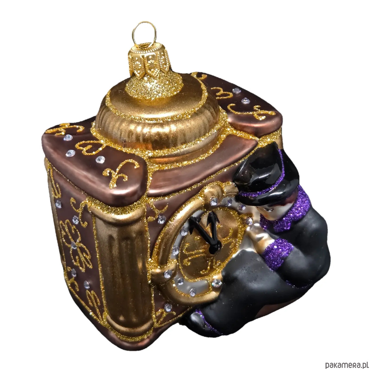 KOLORYSTYKA: Złoty zegar z chłopcem w czarnym stroju