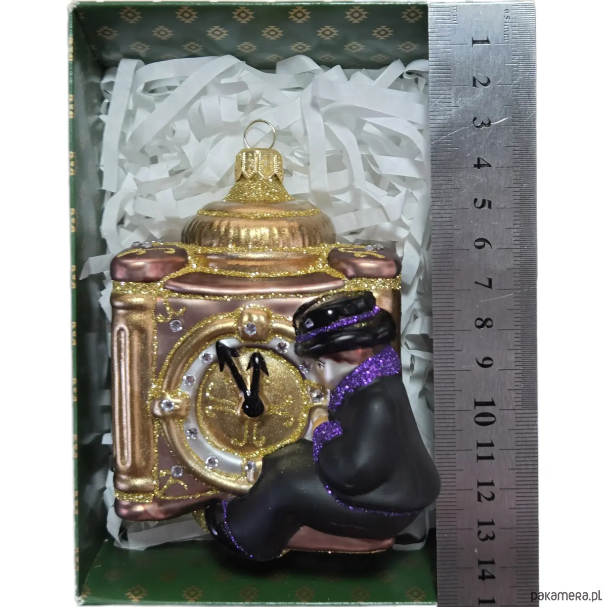Ręcznie malowana bombka szklana chłopiec przy zegarze