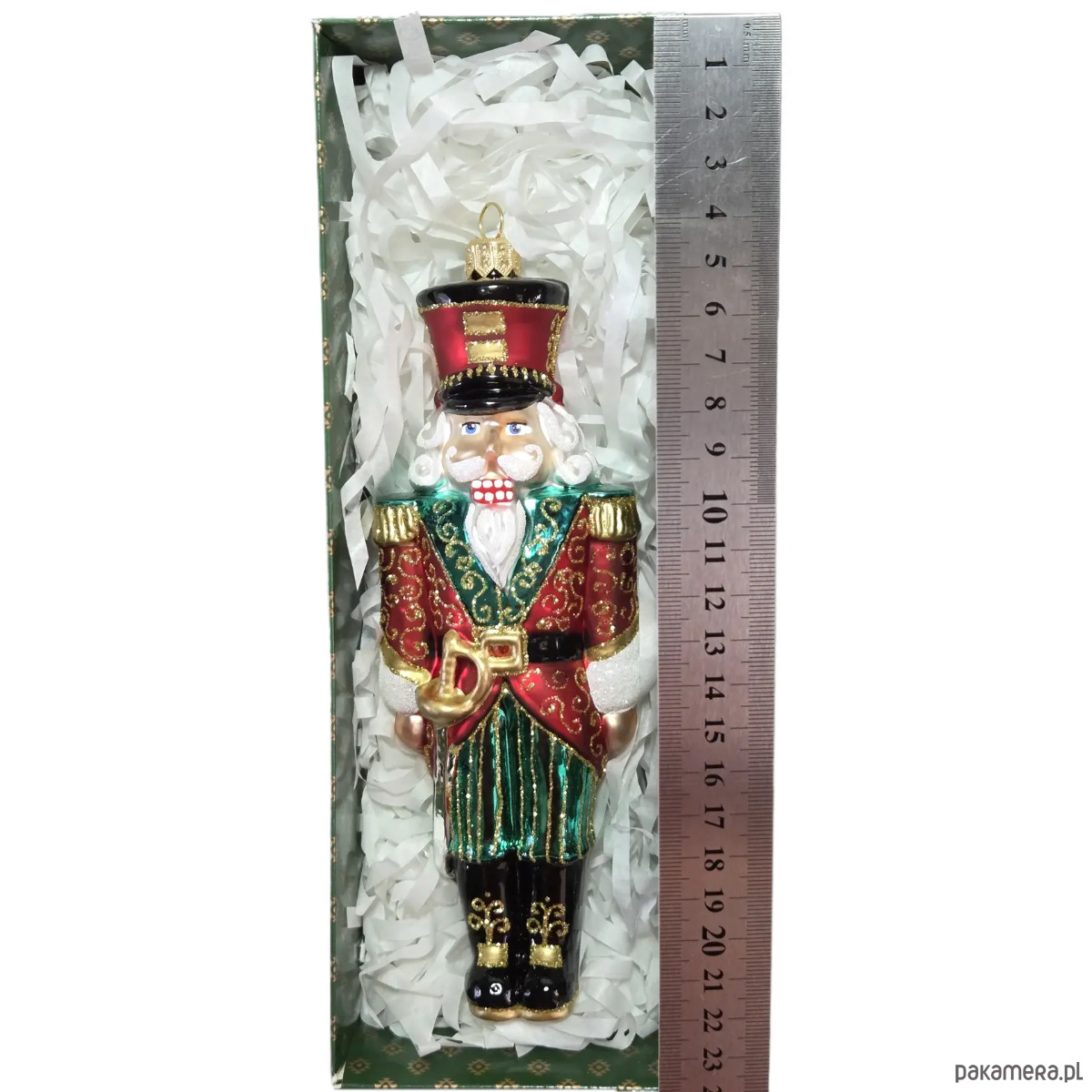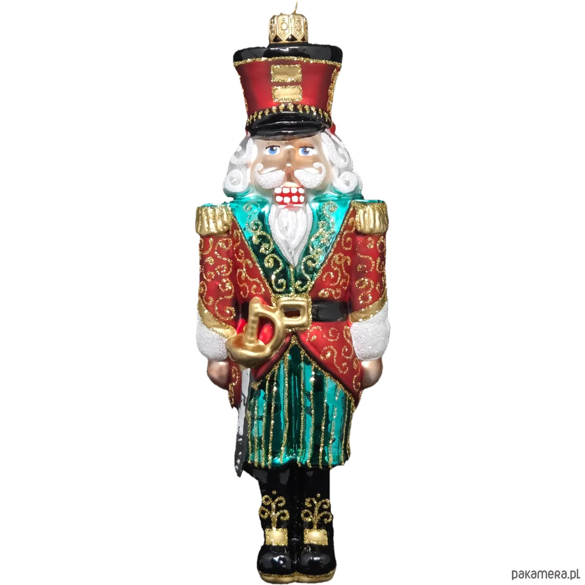 Ręcznie malowana bombka szklana czerwono-zielony dziadek do orzechów