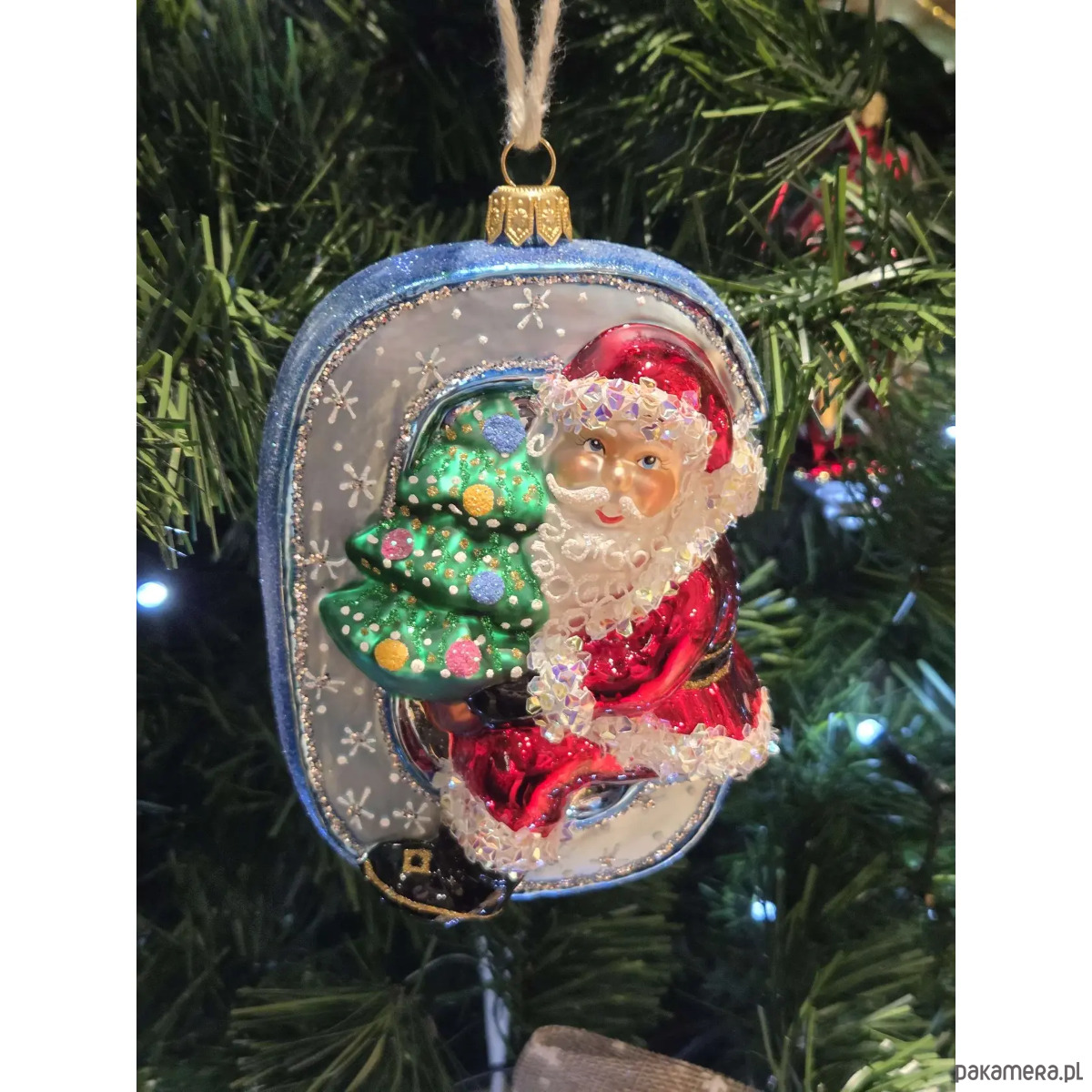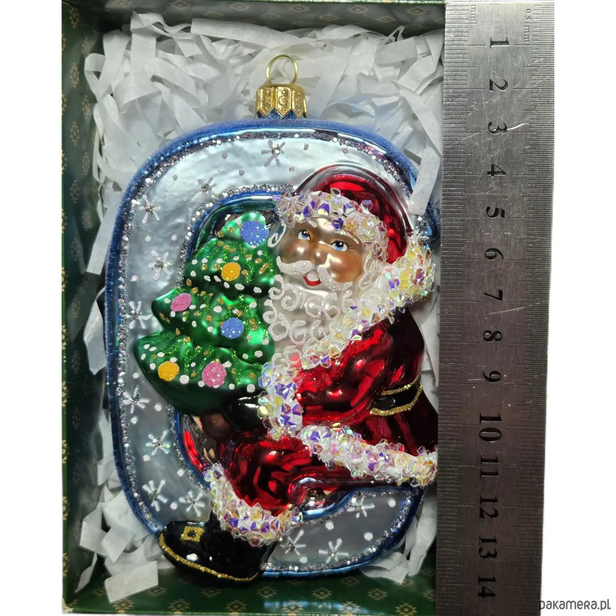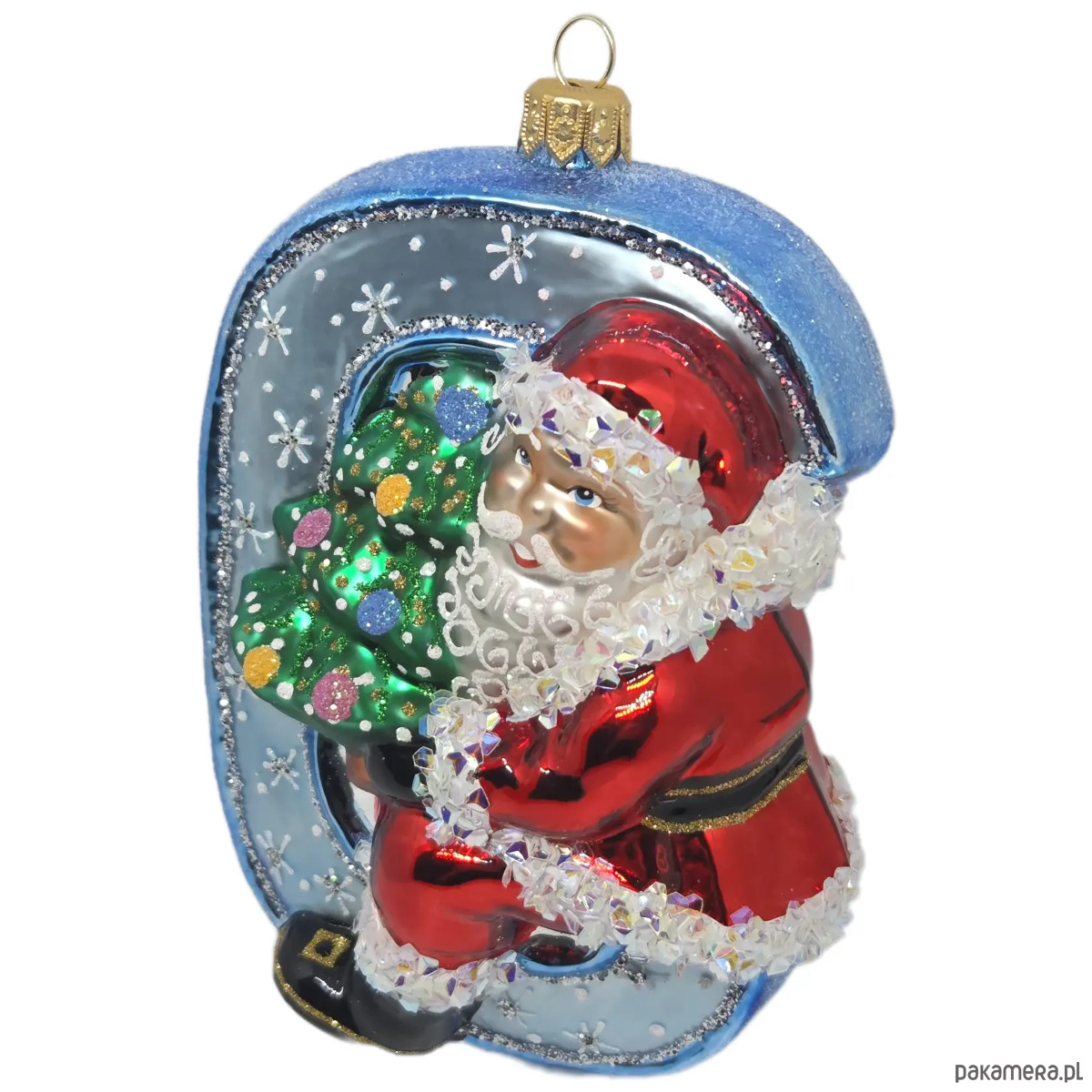Ręcznie malowana bombka szklana Mikołaj na niebieskiej literze C