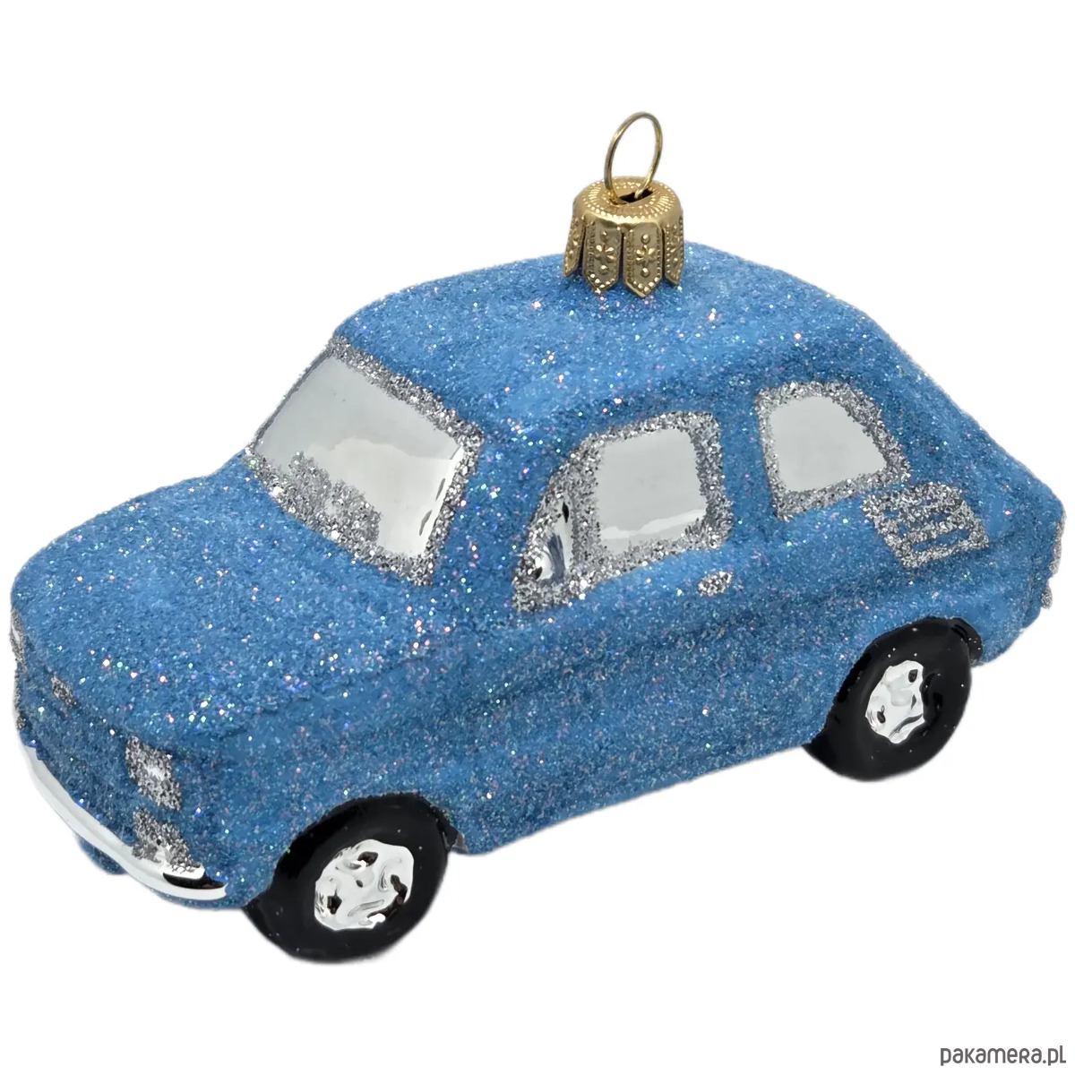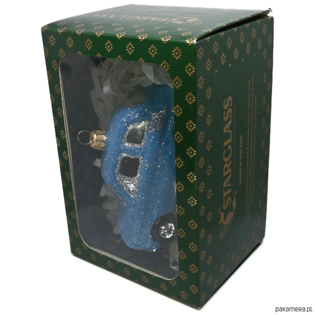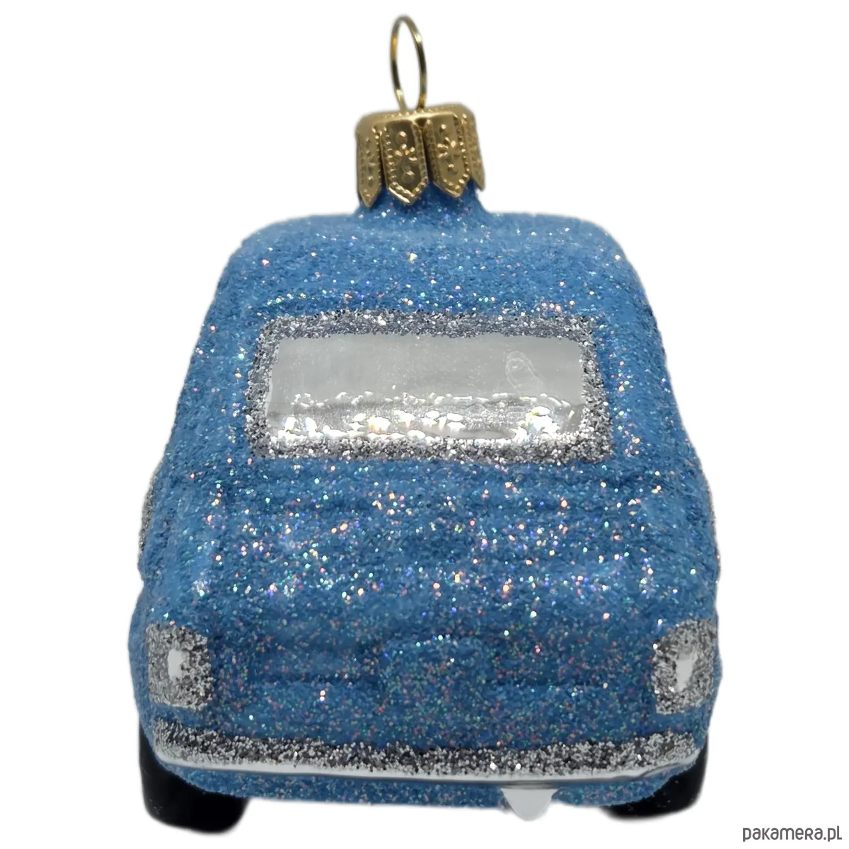 Ręcznie malowana bombka szklana niebieski brokatowy Maluch