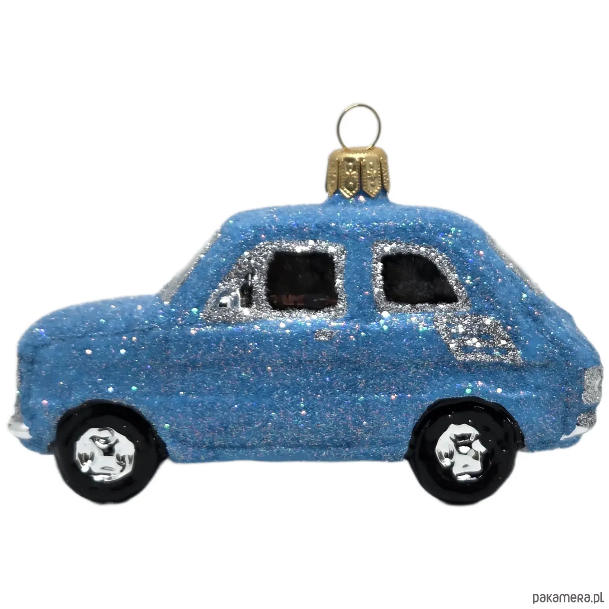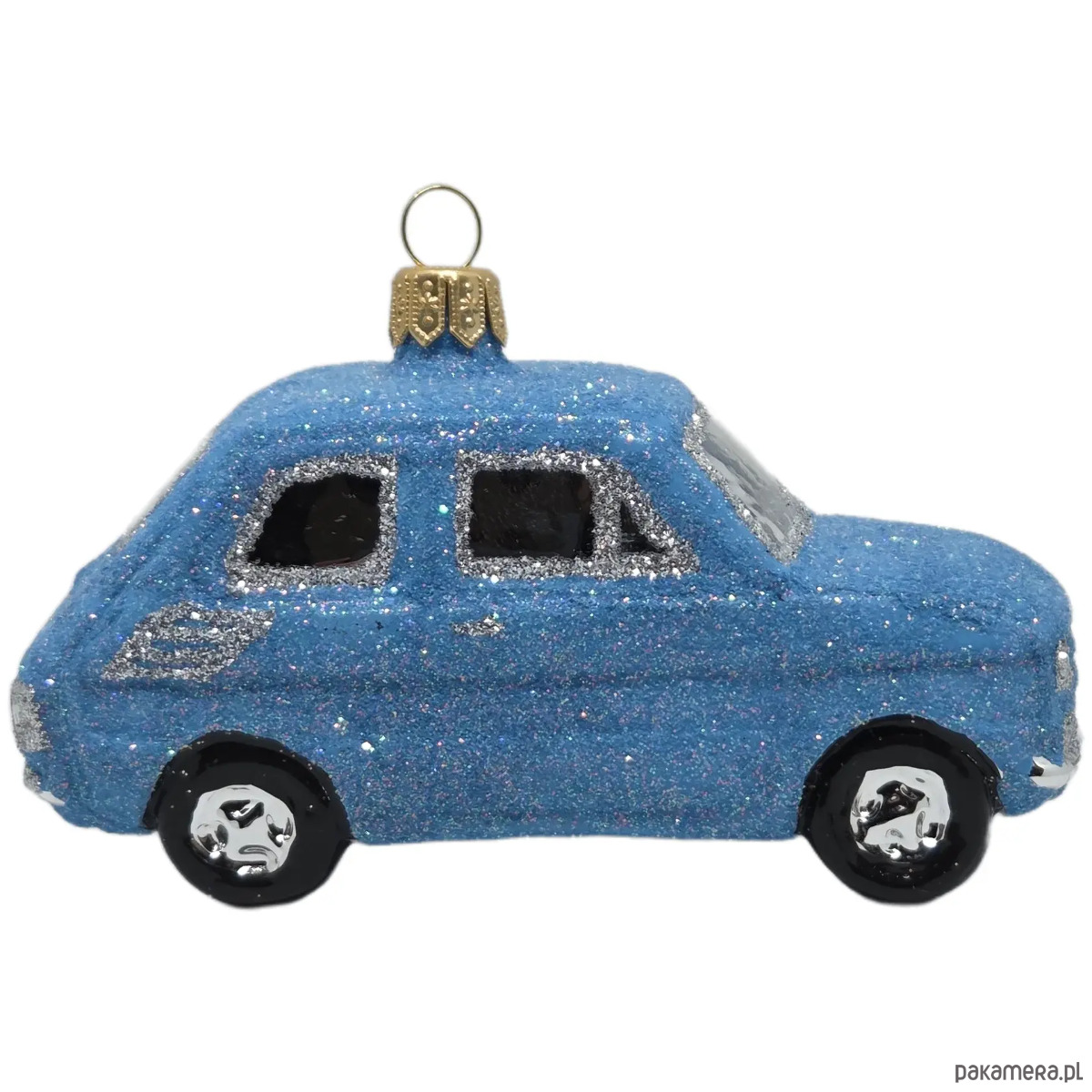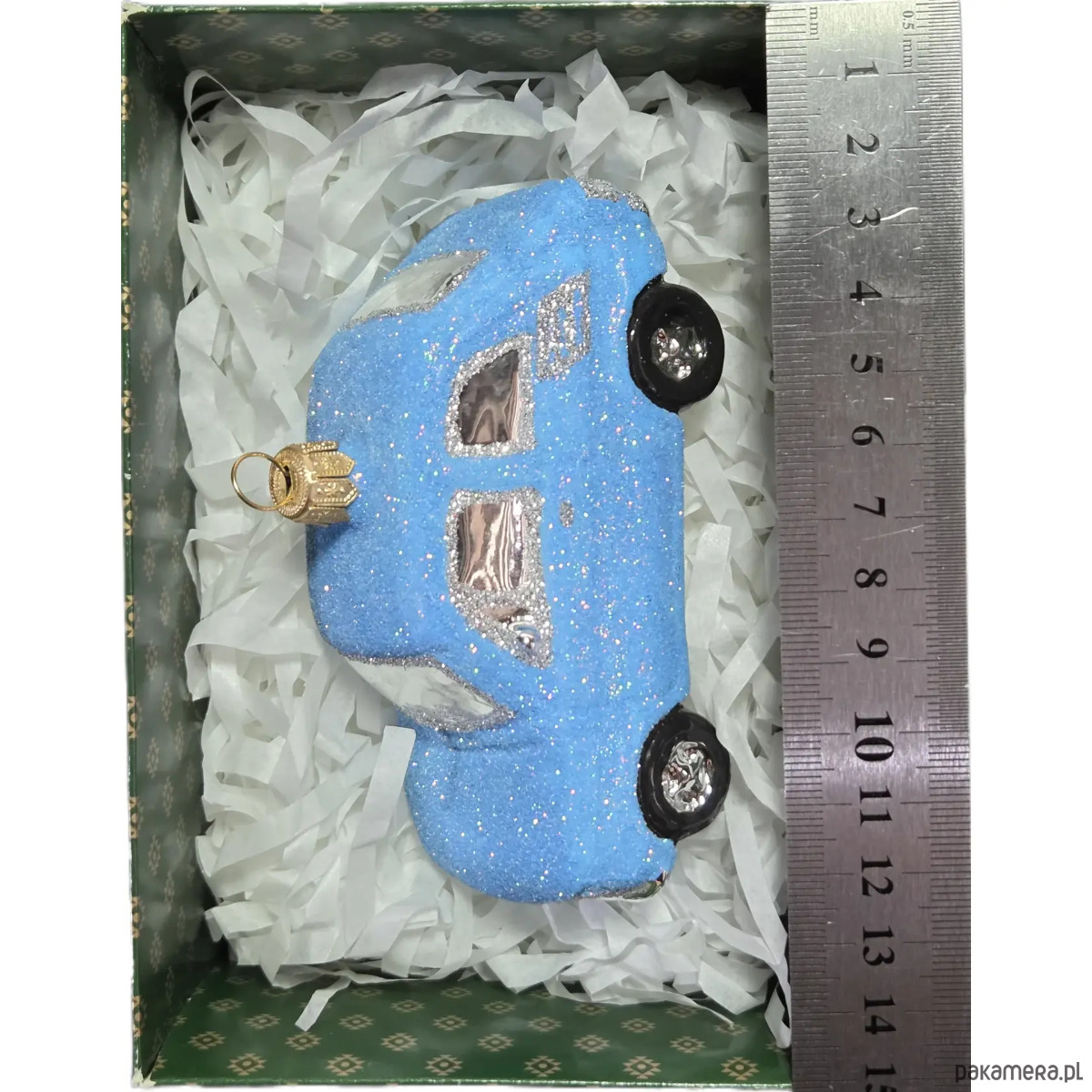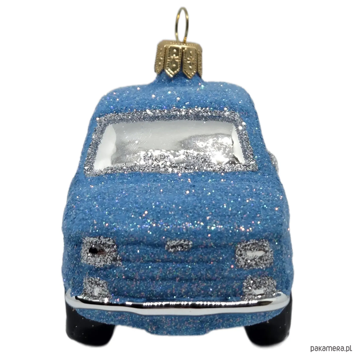 Ręcznie malowana bombka szklana niebieski brokatowy Maluch