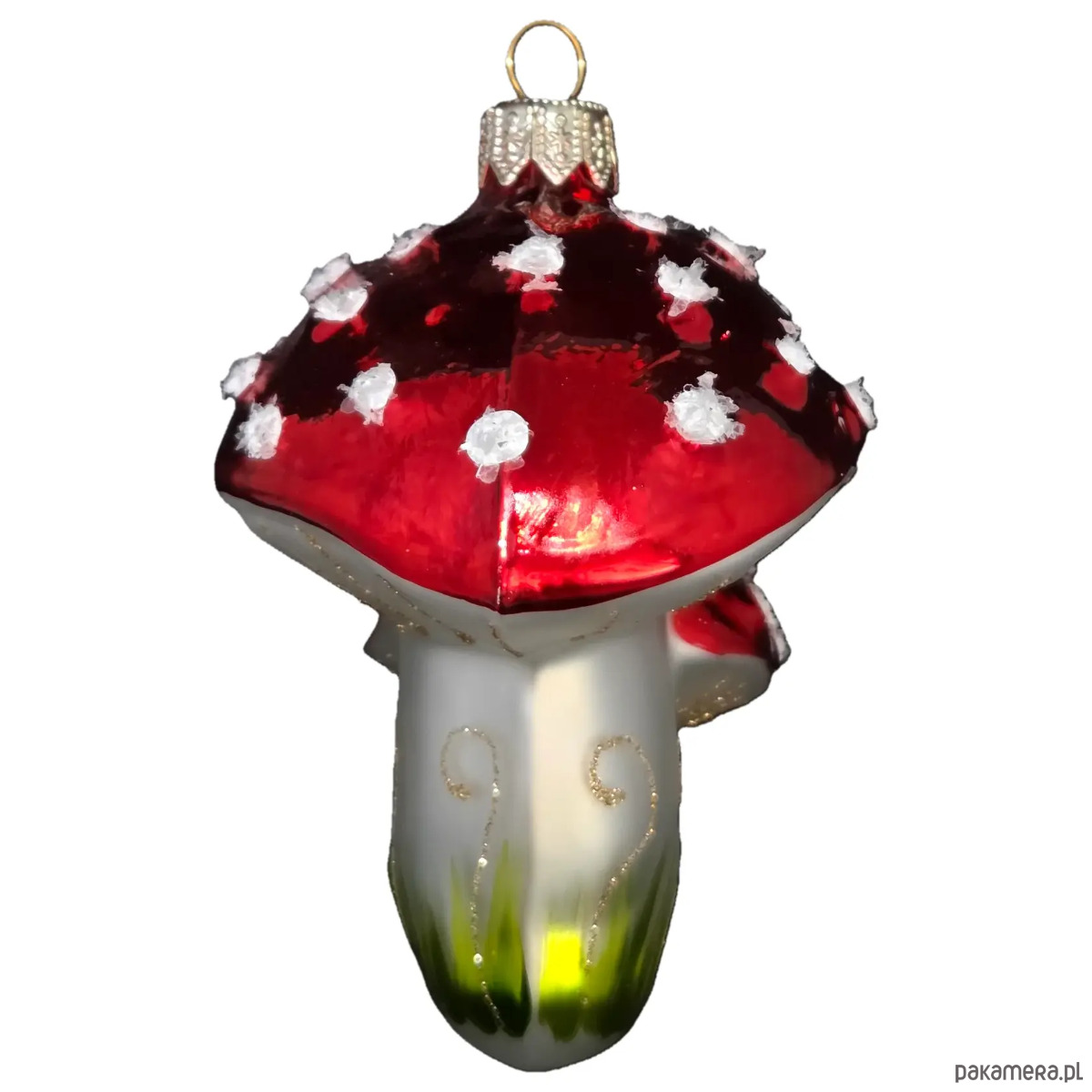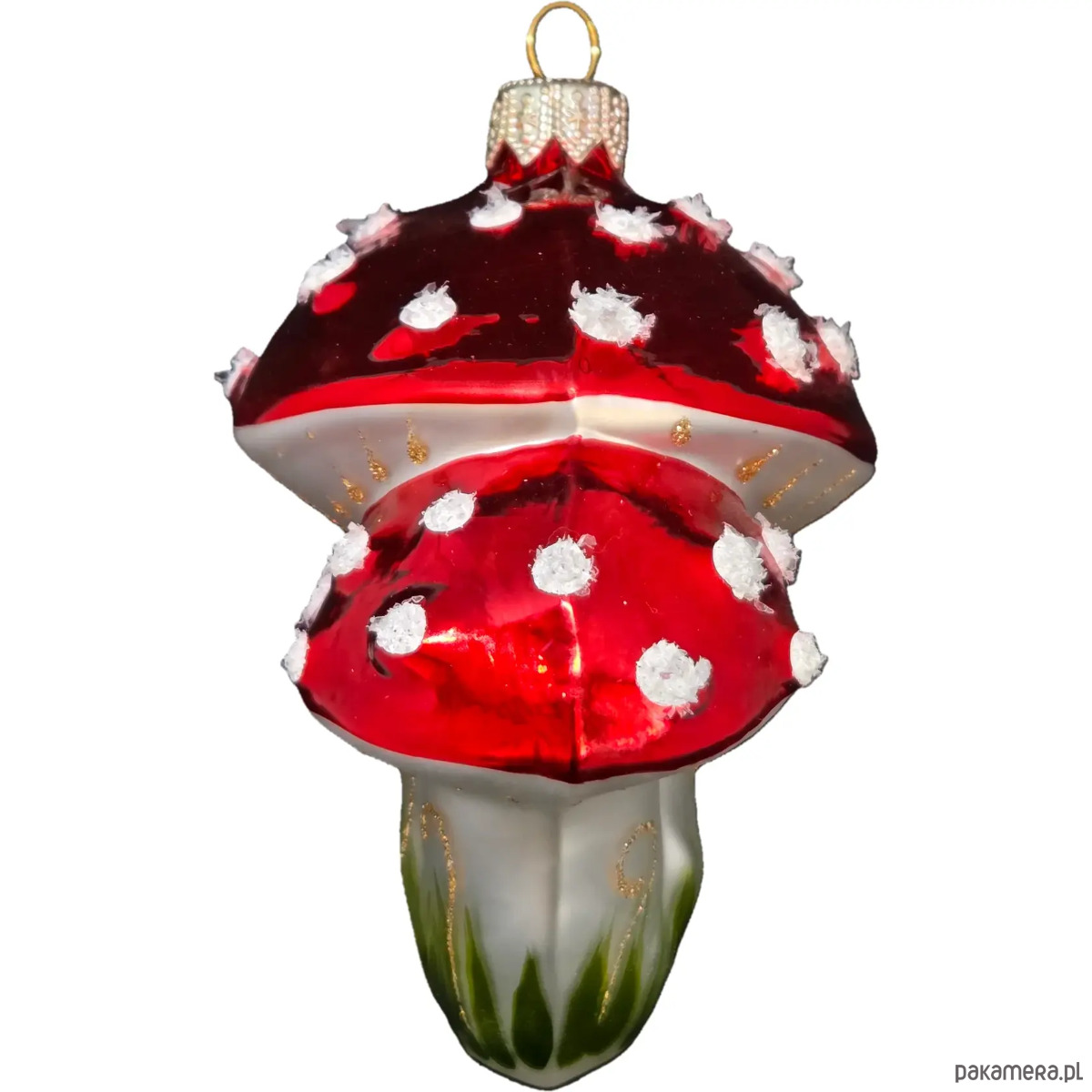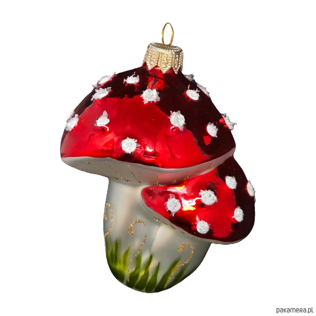 Ręcznie malowana bombka szklana błyszczące czerwone muchomory