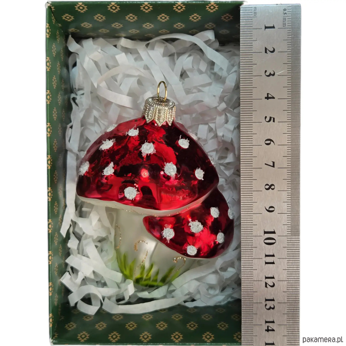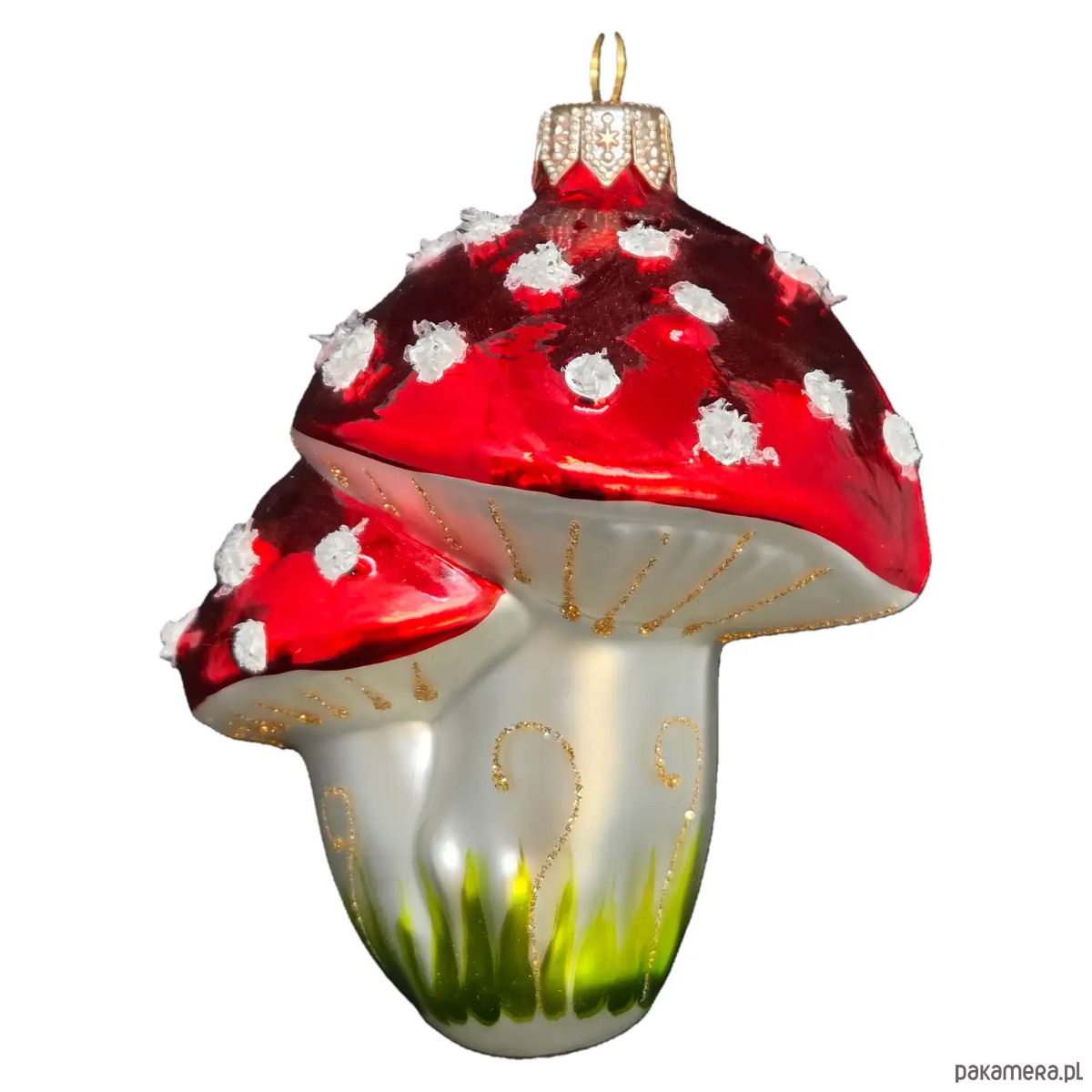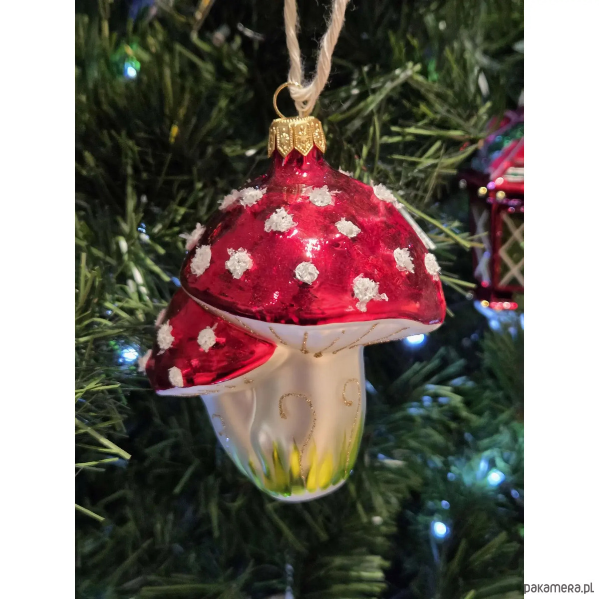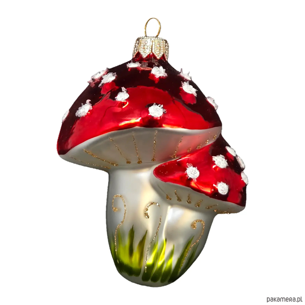 Ręcznie malowana bombka szklana błyszczące czerwone muchomory