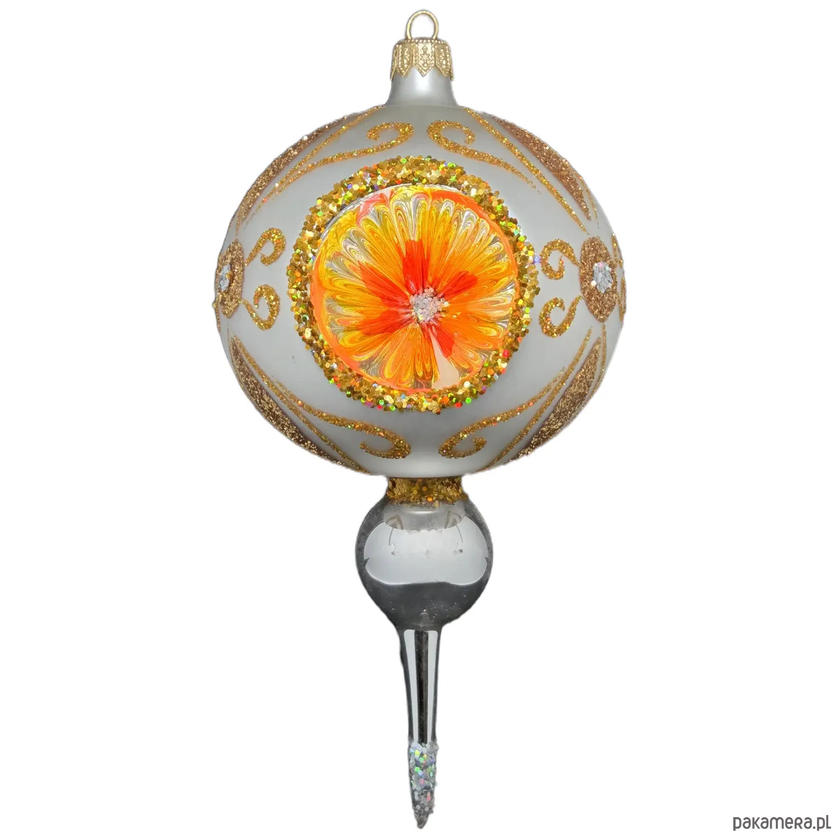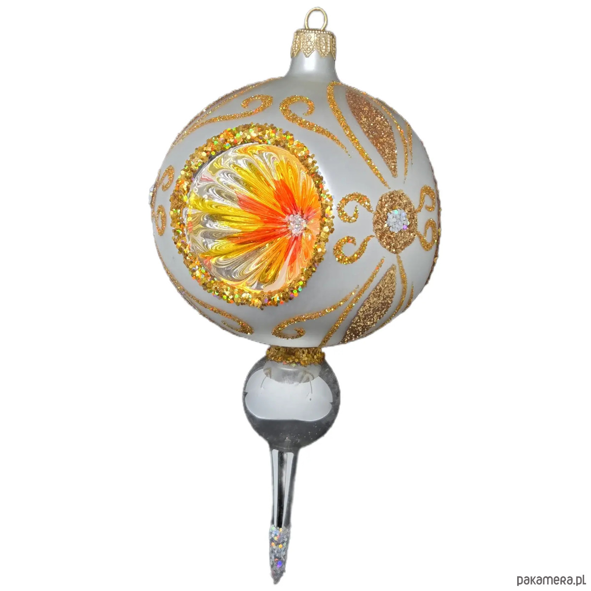 Ręcznie malowana bombka szklana z reflektorem w złoto-pomarańczowych barwach