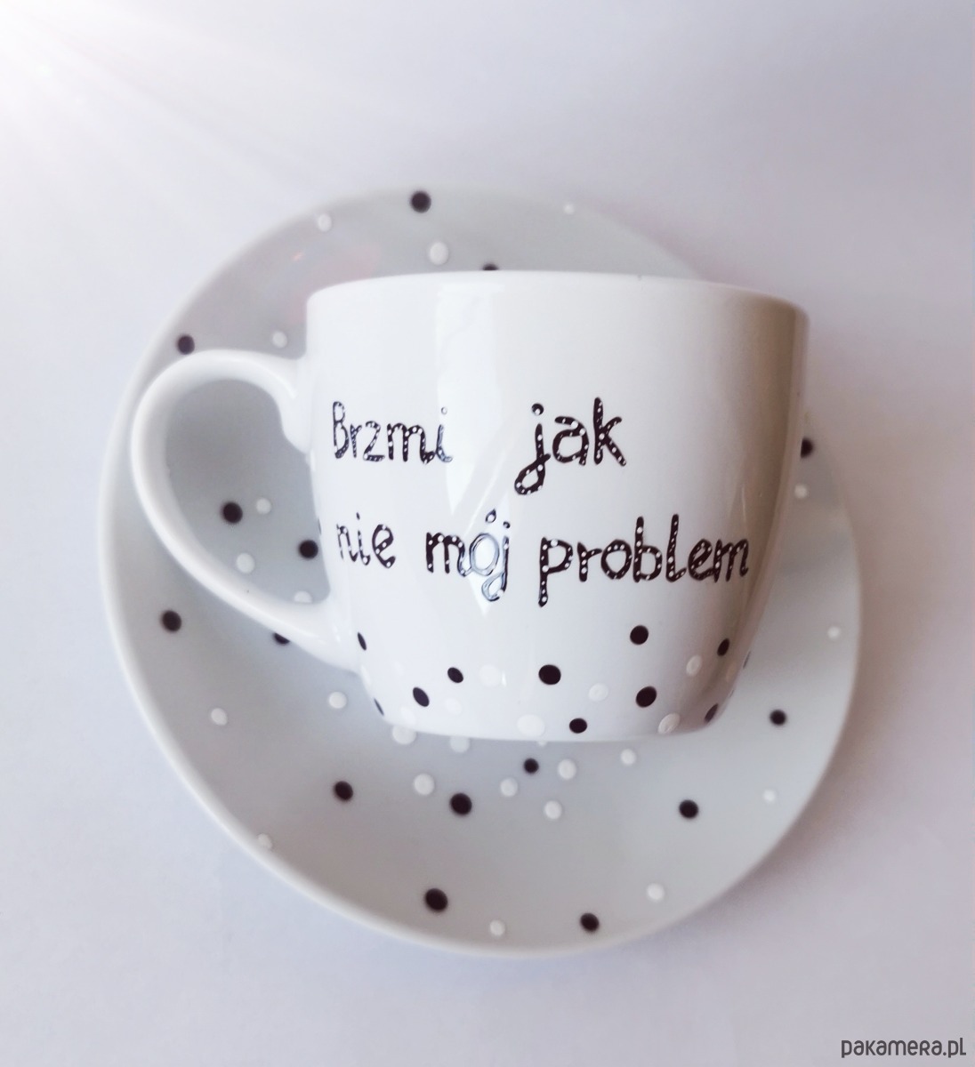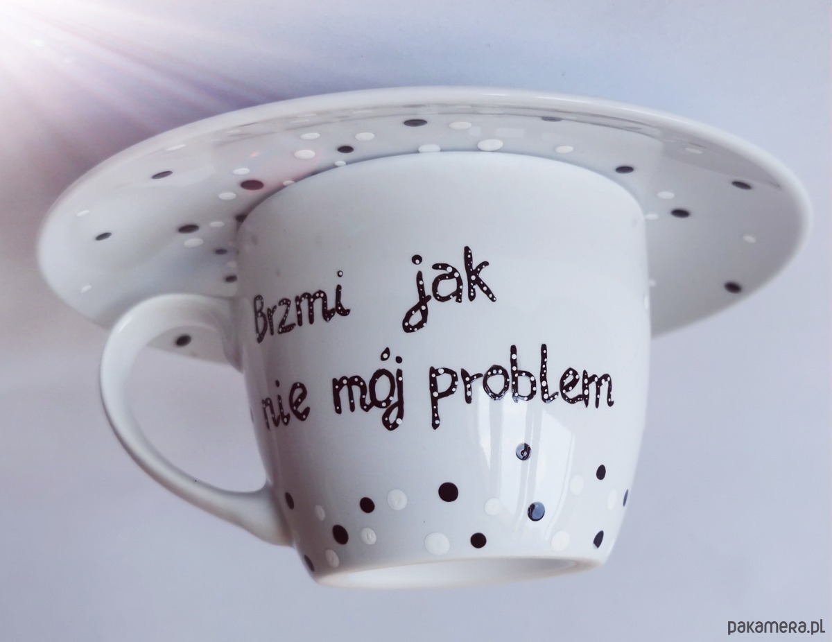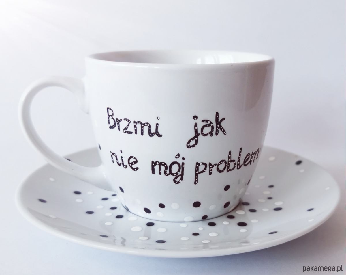 Urocza filiżanka w groszki z napisem