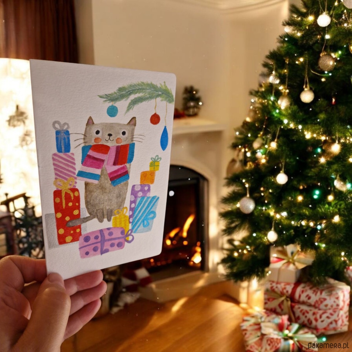 Świąteczna kartka malowana akwarelami. Oryginał w zestawie z kopertą B6.