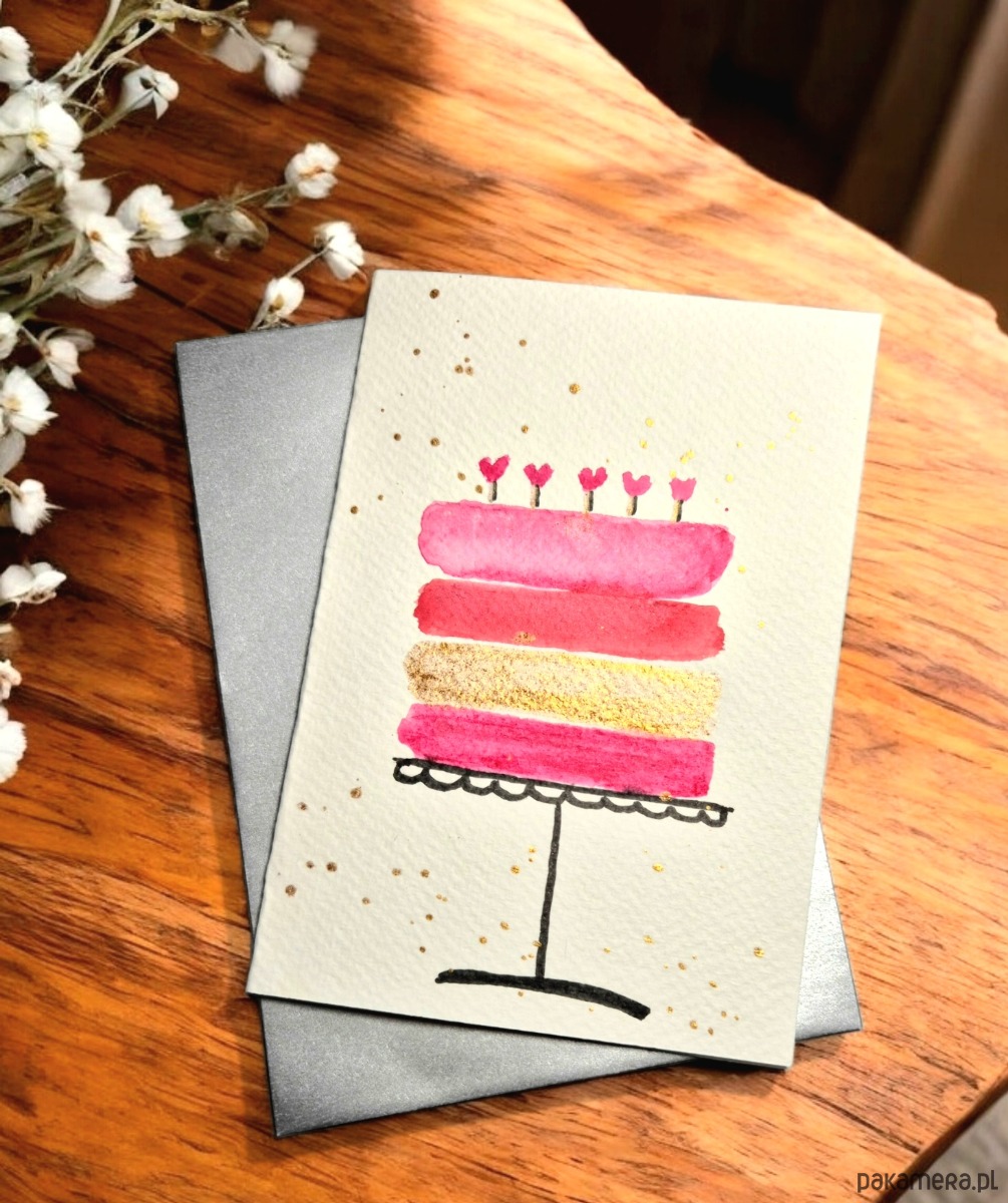 Ręcznie malowana kartka na urodziny lub imieniny.