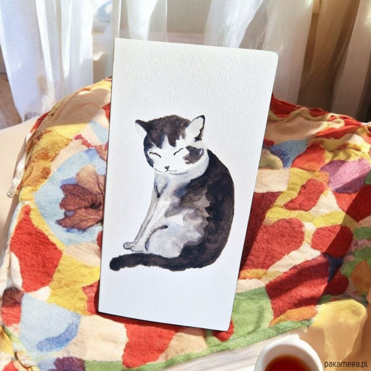 Ręcznie malowana kartka okolicznościowa akwarelami kot