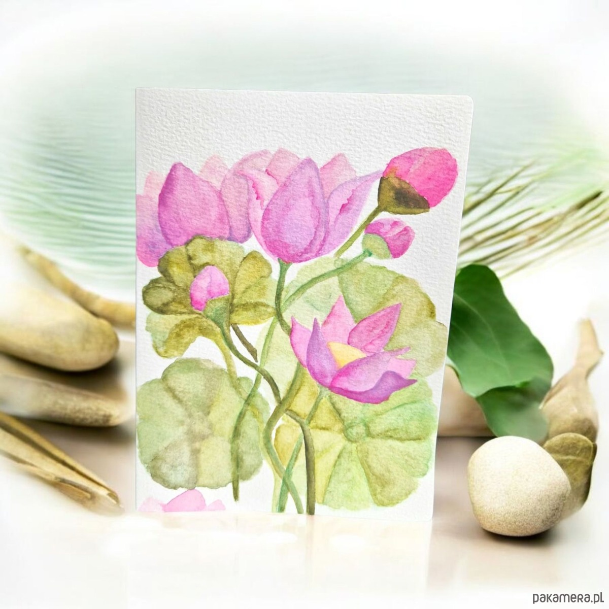 Ręcznie malowana kartka okolicznościowa akwarelami kwiaty