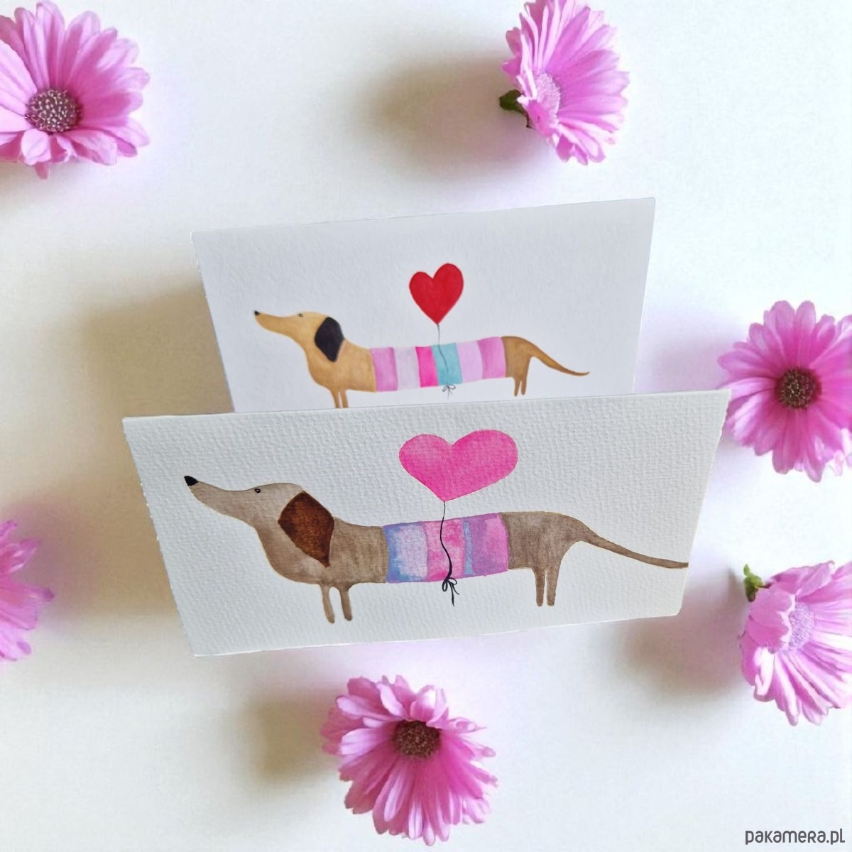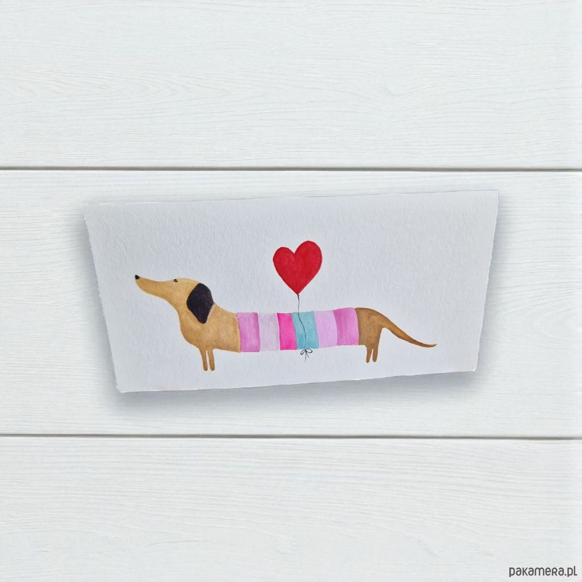 Ręcznie malowana kartka okolicznościowa akwarelami piesek jamnik