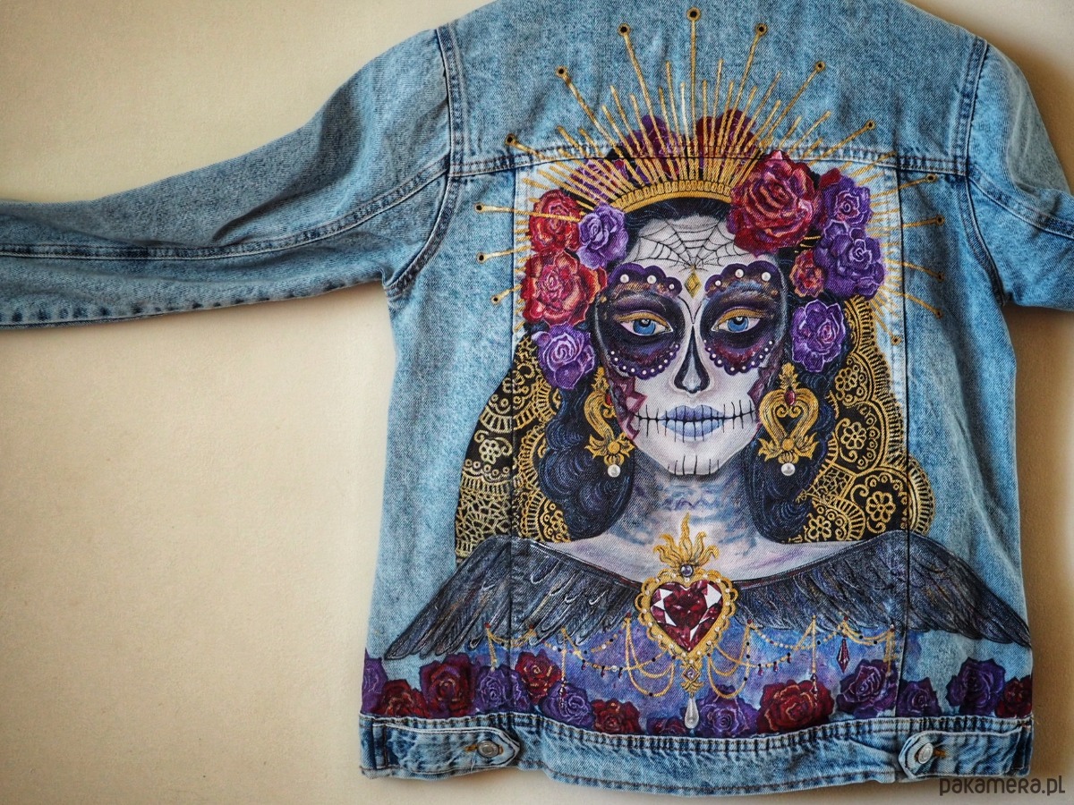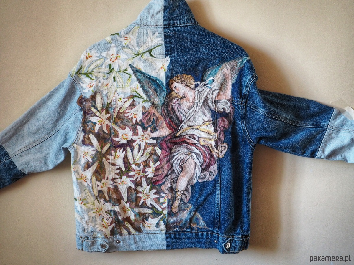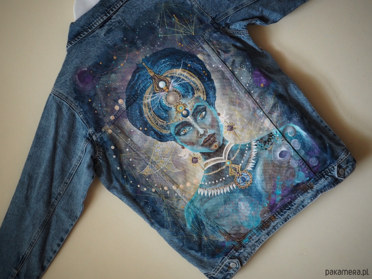 Możesz samodzielnie zakupić kurtkę (konieczne, by była to 100% bawełna w przypadku kurtki jeansowej, może być też skóra lub ekoskóra) i przysłać ją do mnie, mogę też zamówić ją za Ciebie, wówczas wystarczy, że podasz mi rozmiar i preferowany kolor. Jeżeli posiadasz używaną kurtkę, również doskonale nada się do malowania. KOSZT KURTKI NIE JEST ZAWARTY W CENIE.