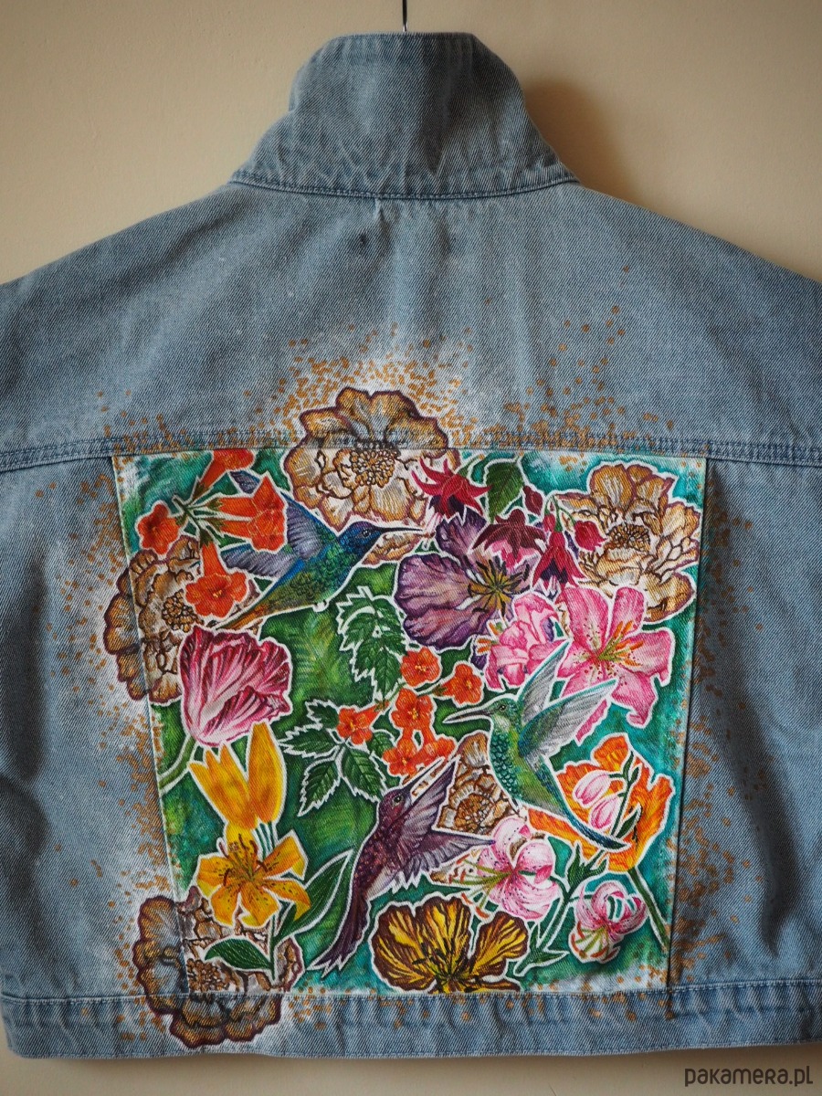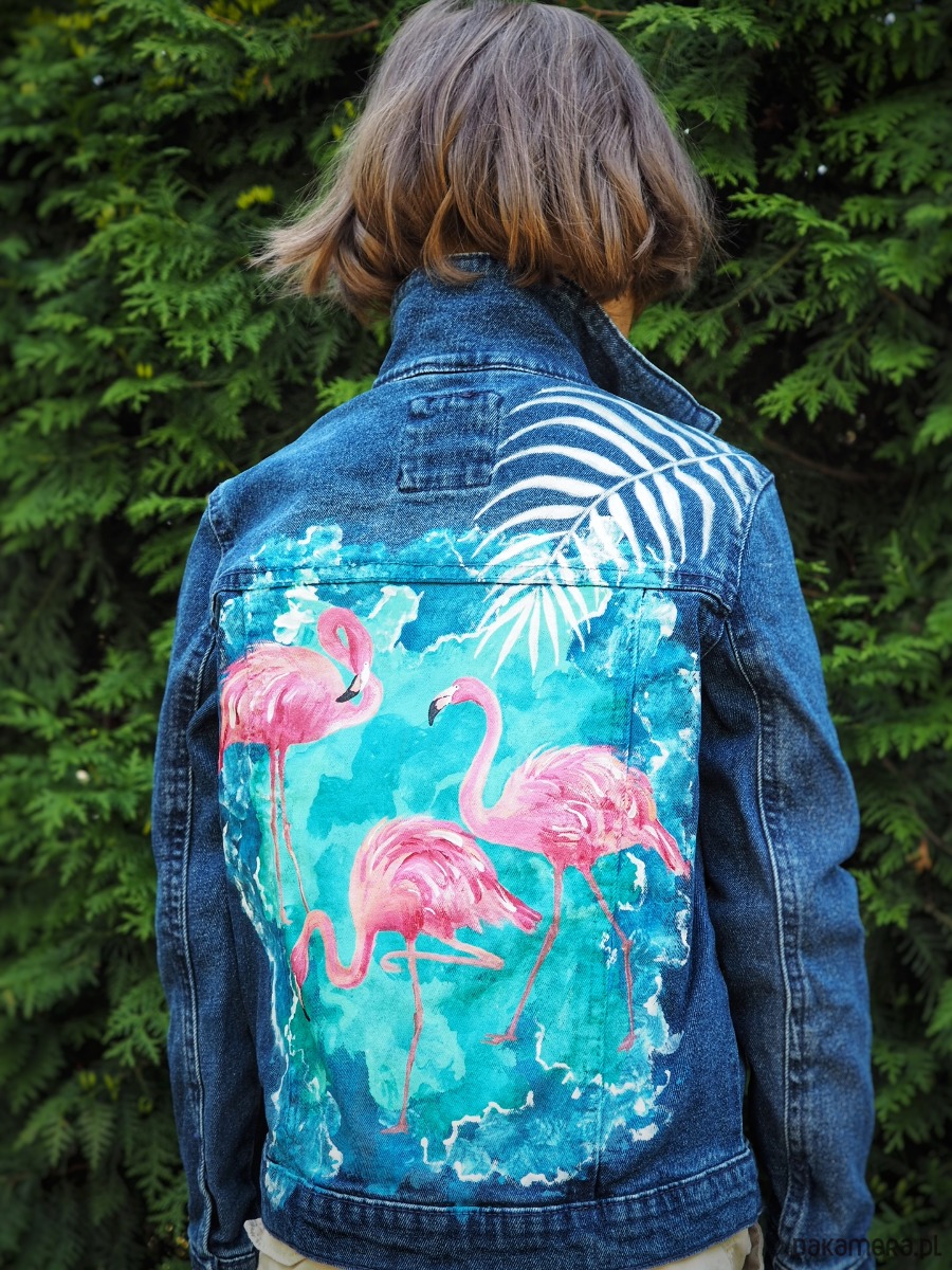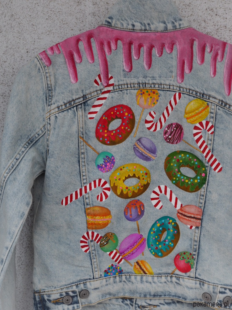 Możesz samodzielnie zakupić kurtkę (konieczne, by była to 100% bawełna w przypadku kurtki jeansowej, może być też skóra lub ekoskóra) i przysłać ją do mnie, mogę też zamówić ją za Ciebie, wówczas wystarczy, że podasz mi rozmiar i preferowany kolor. Jeżeli posiadasz używaną kurtkę, również doskonale nada się do malowania. KOSZT KURTKI NIE JEST ZAWARTY W CENIE.