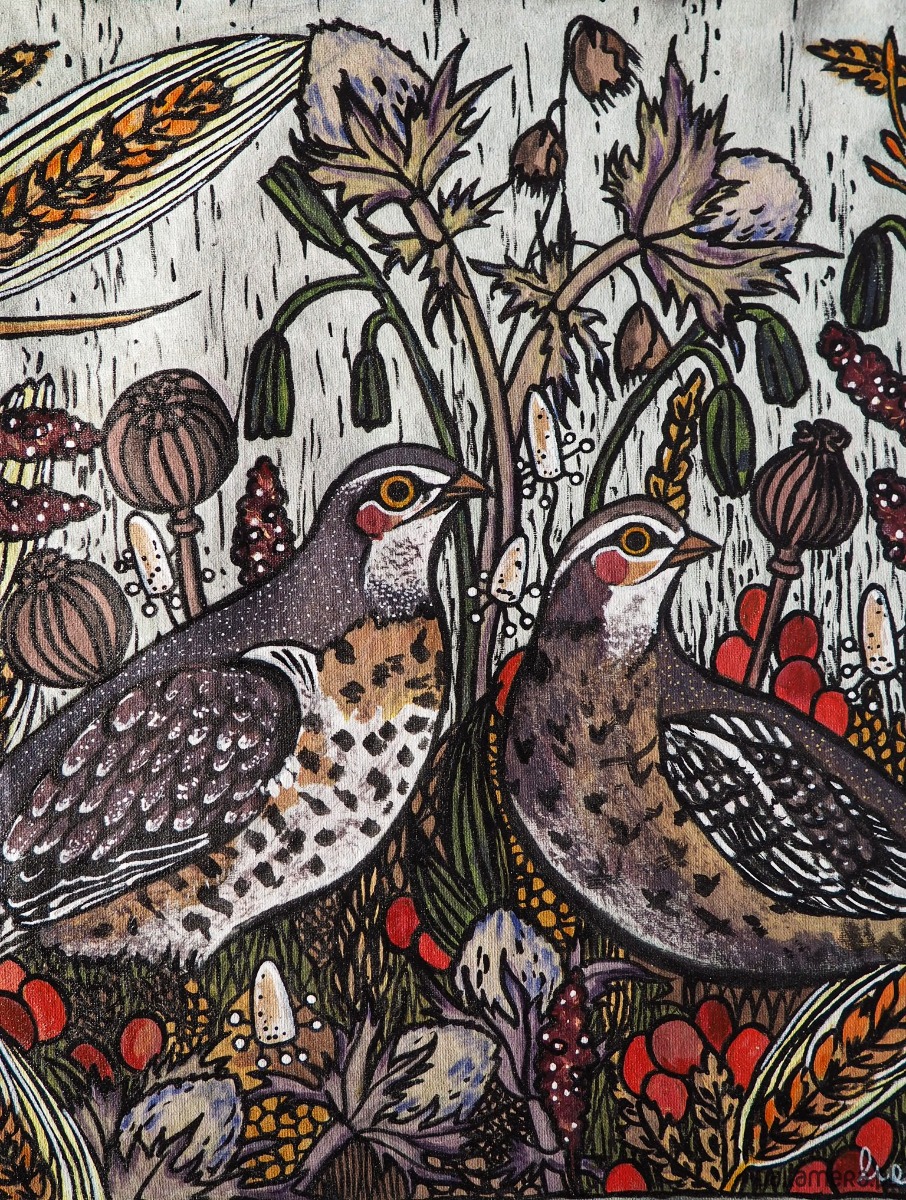 WZÓR: ptaki, kuropatwy, rośliny, zboże, kwiaty
