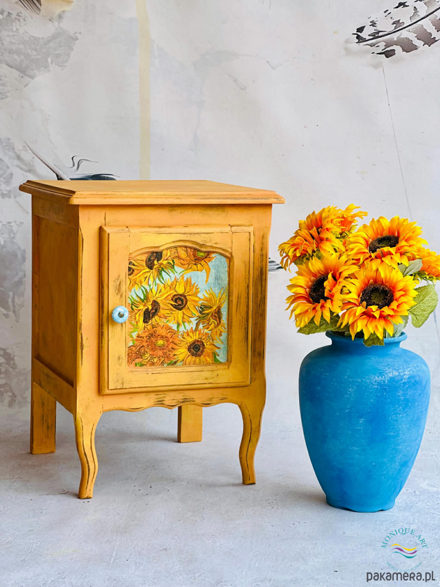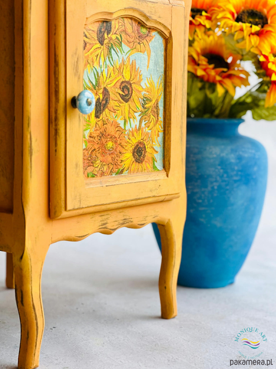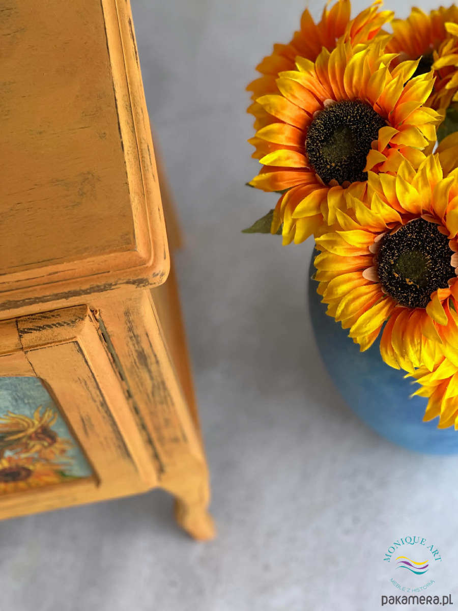 Ręcznie malowana szafka inspirowana malarstwem, słoneczniki, ceramiczna gałka