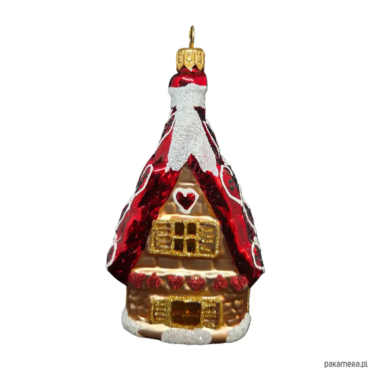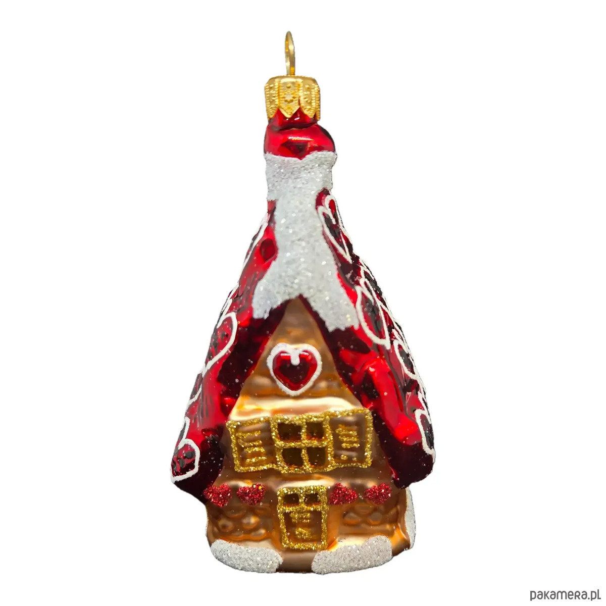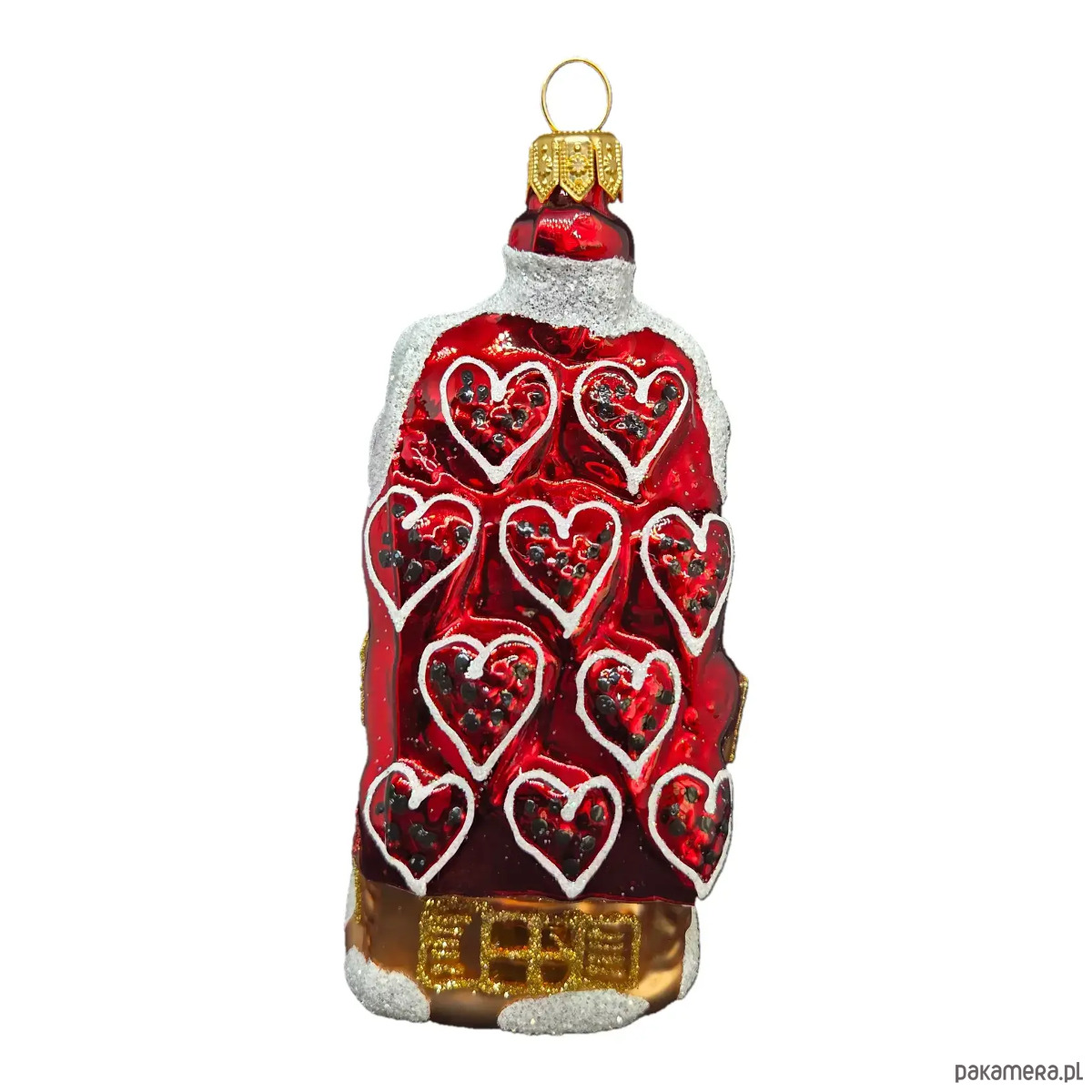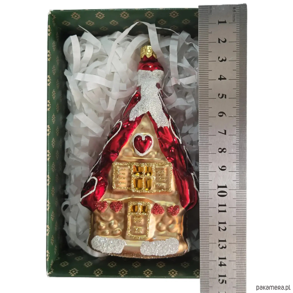 Ręcznie Malowana Szklana Bombka Domek Miłości z Czerwonym Dachem i Sercami