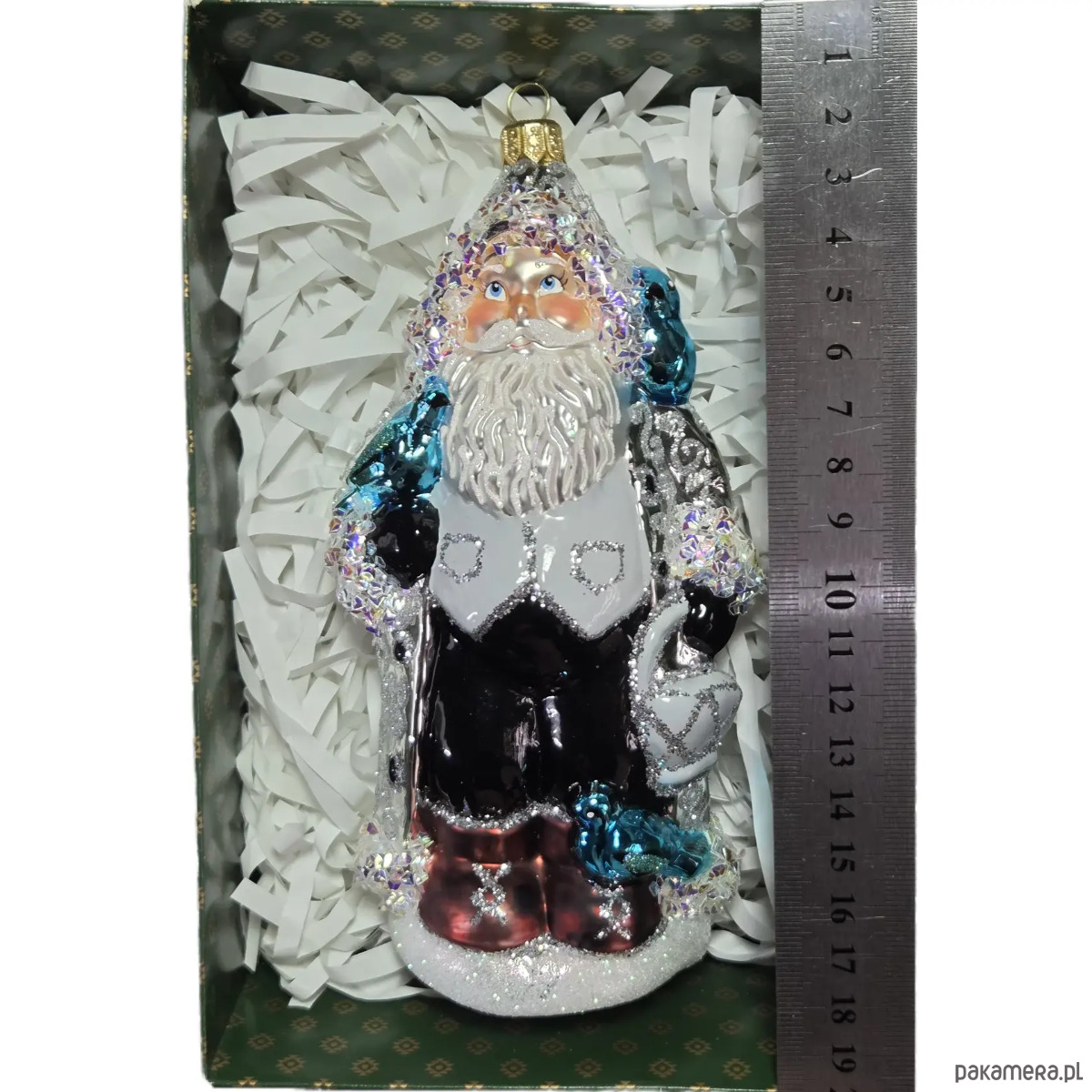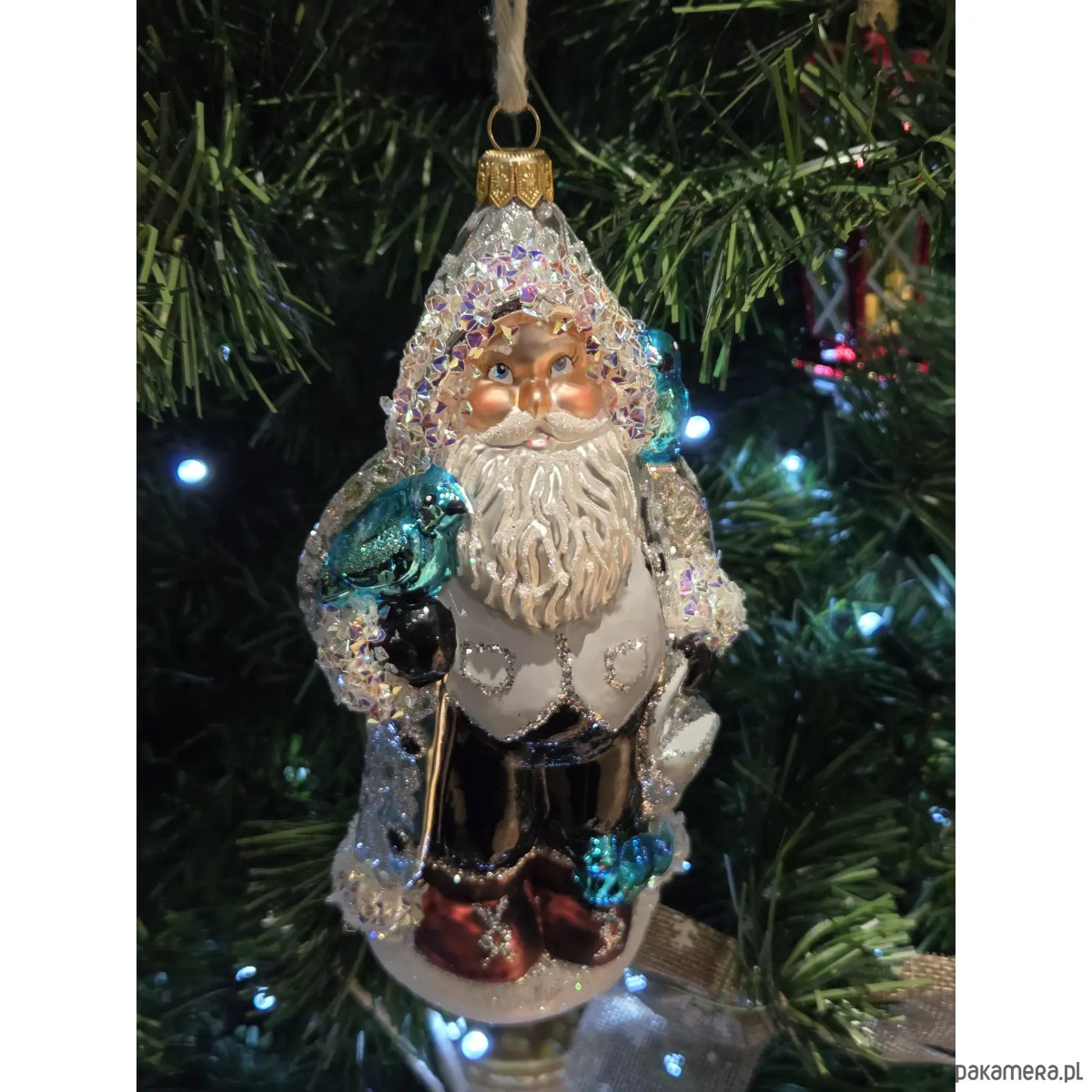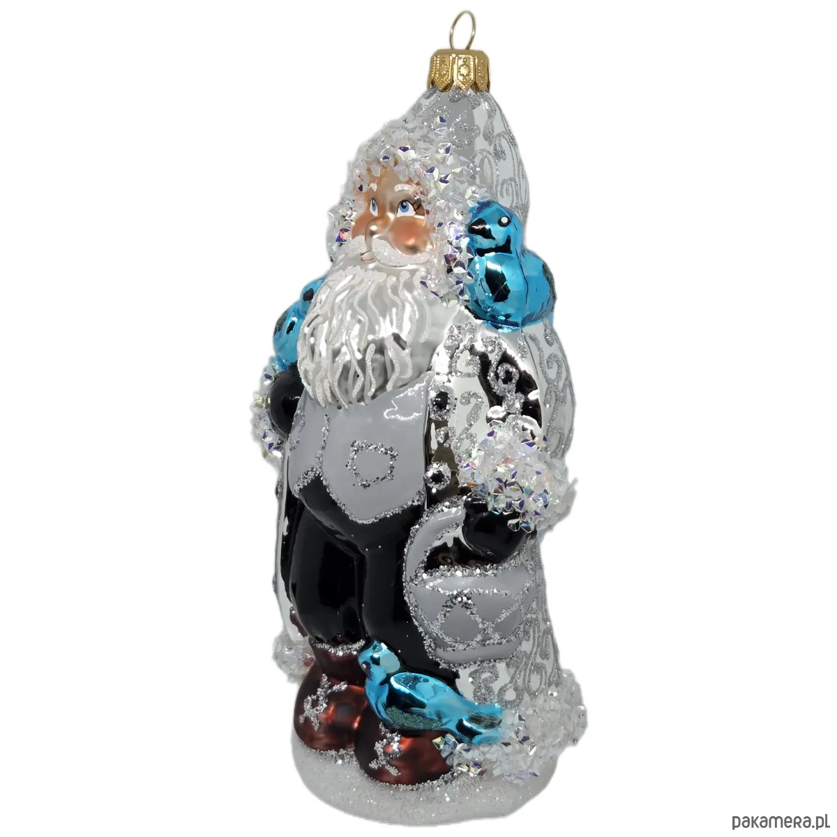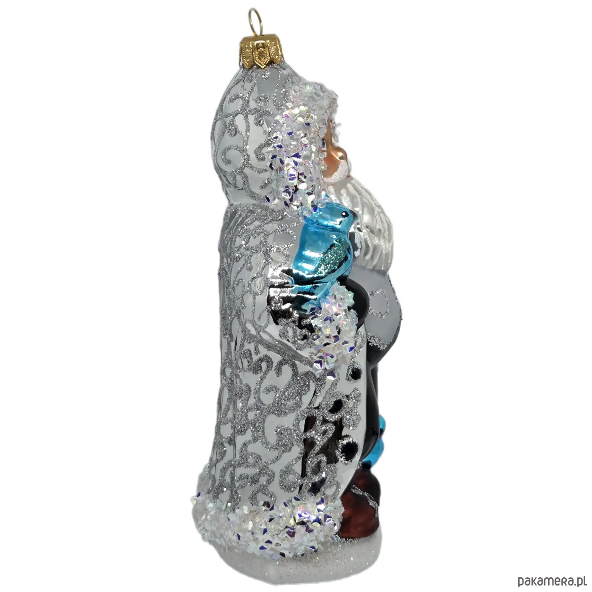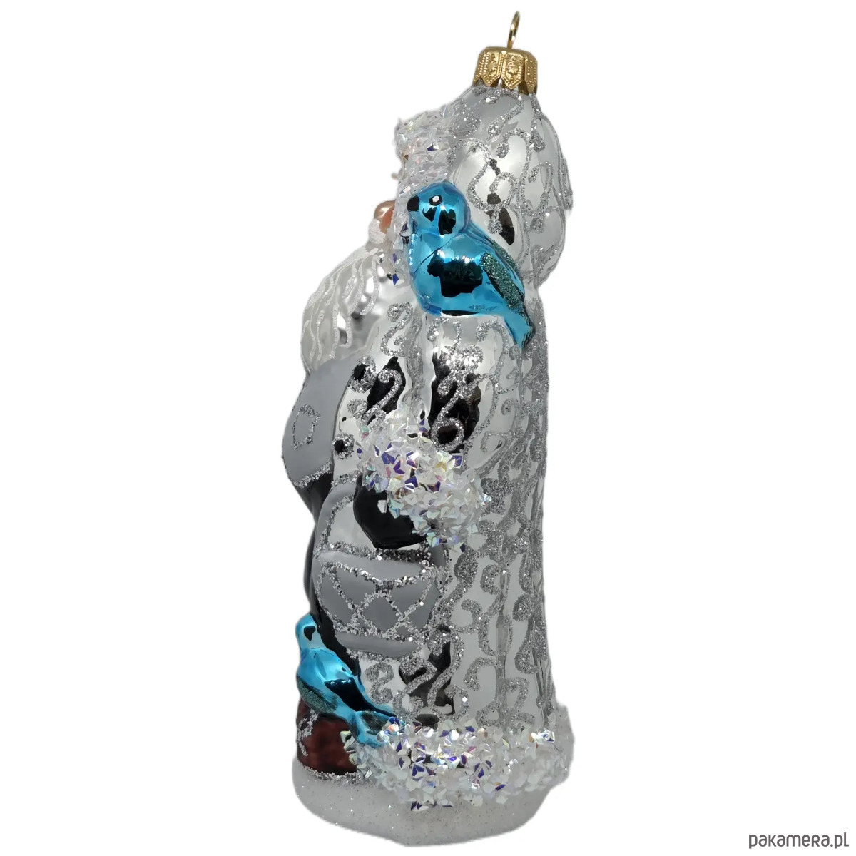Ręcznie malowana szklana bombka zdobiony srebrny Mikołaj z ptakami